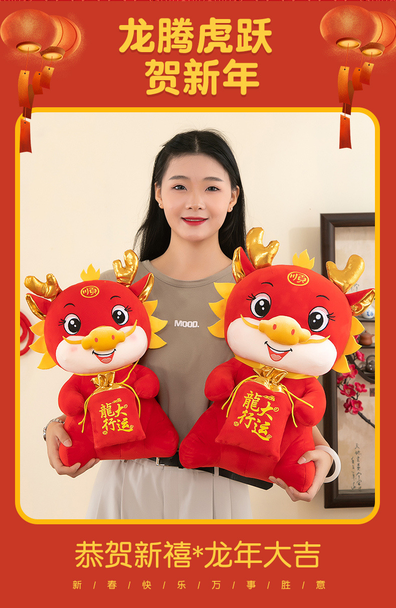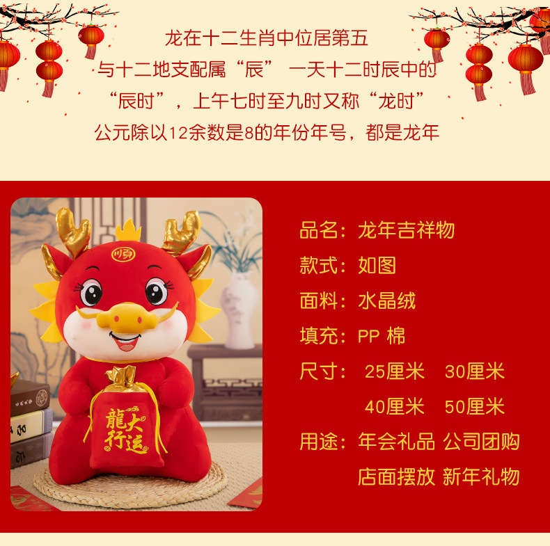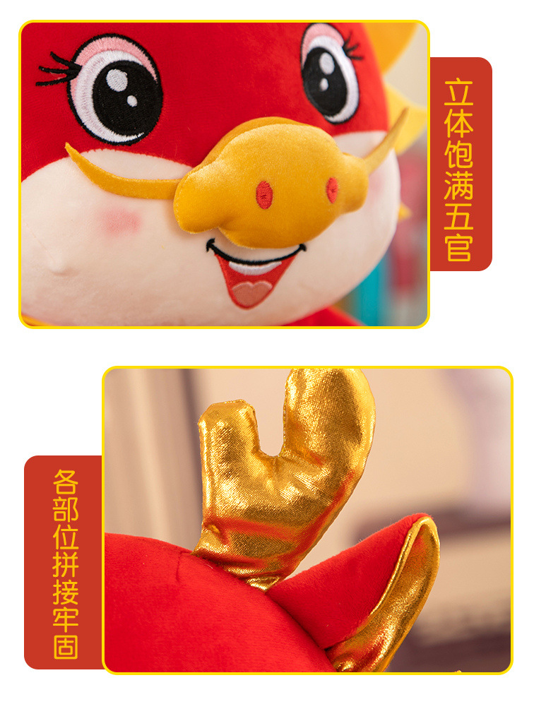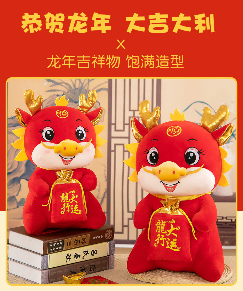 可爱新款龙年吉祥物毛绒玩具生肖布娃娃开门红活动礼品龙年公仔