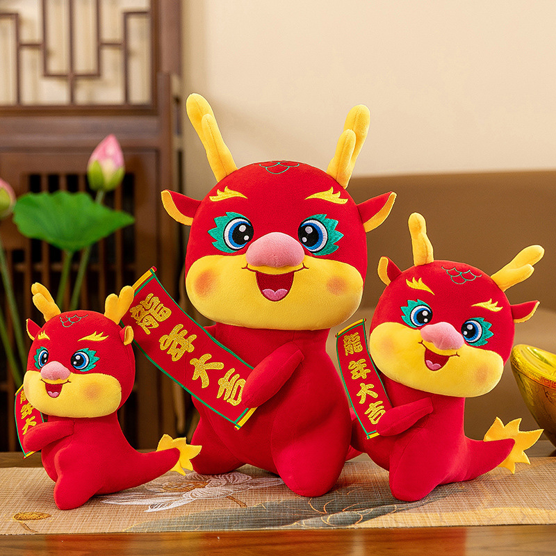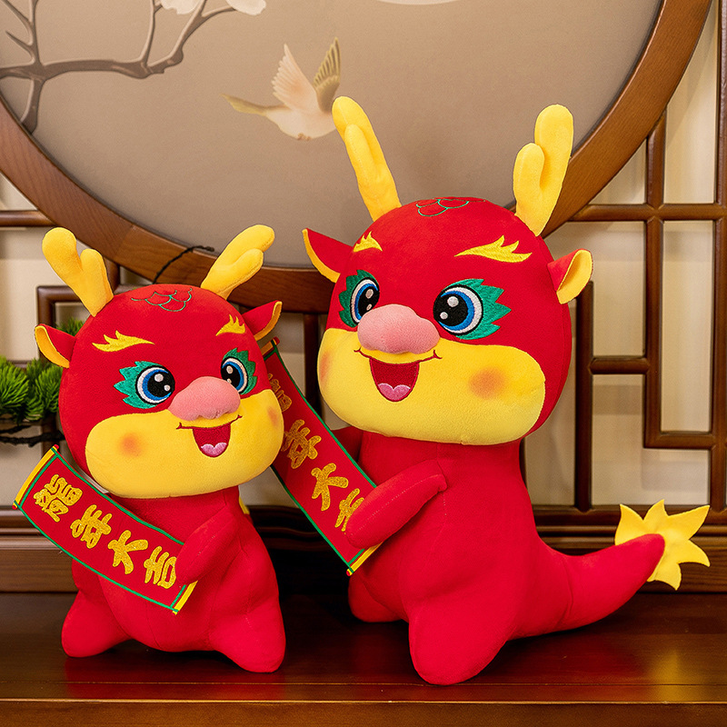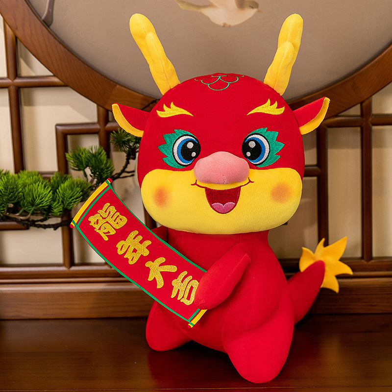 抱牌龙年大吉龙年吉祥物毛绒玩具生肖龙玩偶娃娃新年开门红礼品
