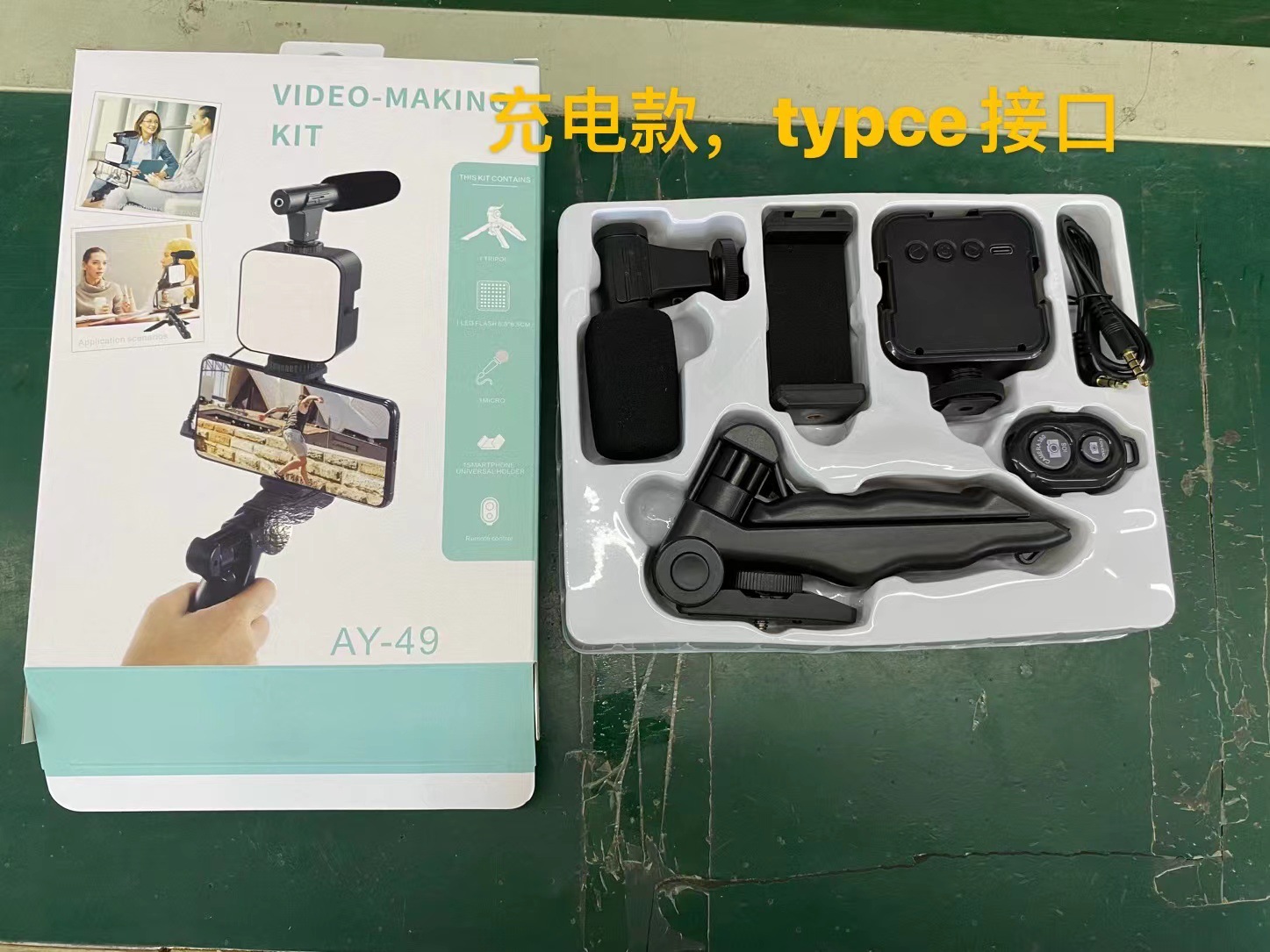 AY49 vlog跨境麦克风网红直播补光灯手持摄影灯桌面无线直播灯