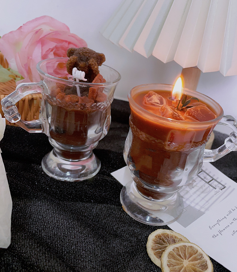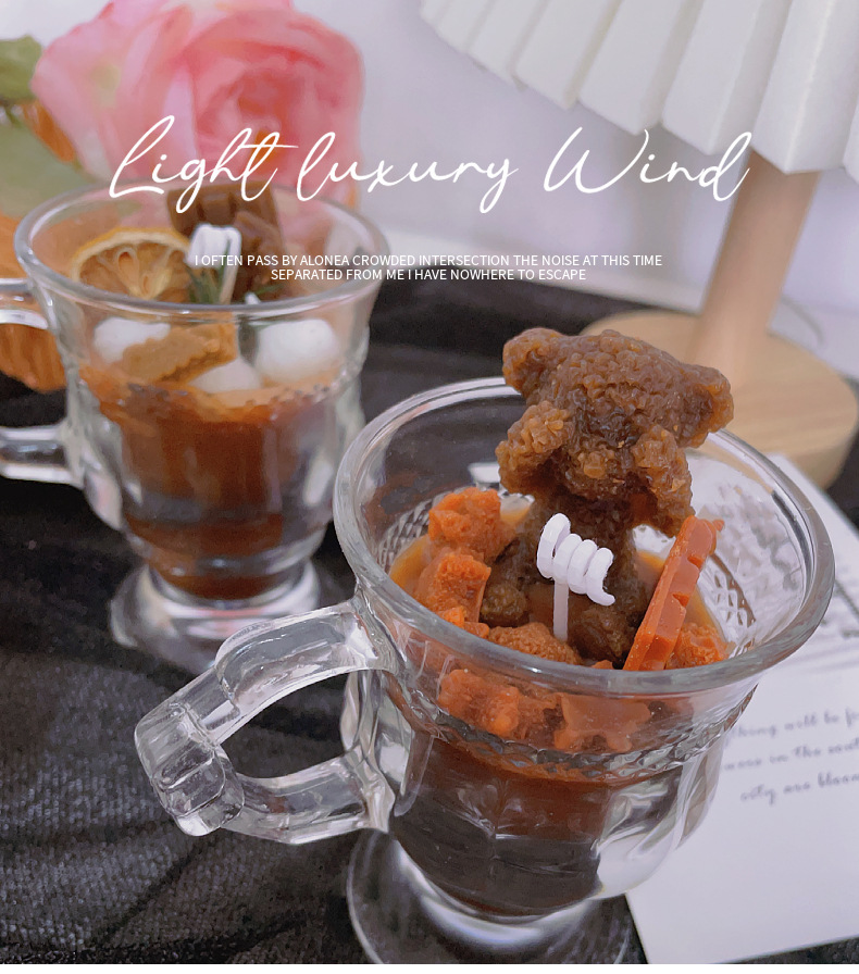小熊咖啡香薰蜡烛 创意送闺蜜生日礼物捂眼小熊冰美式咖啡杯蜡烛