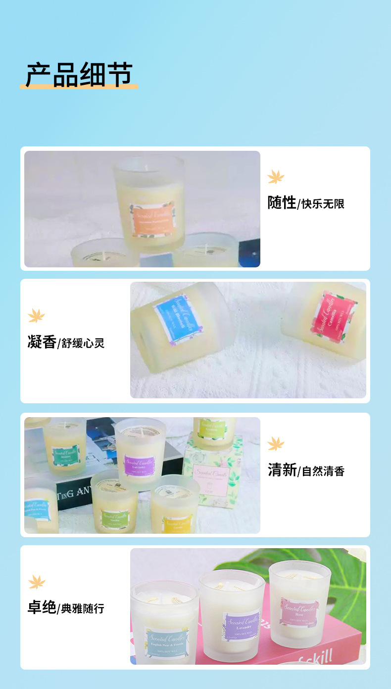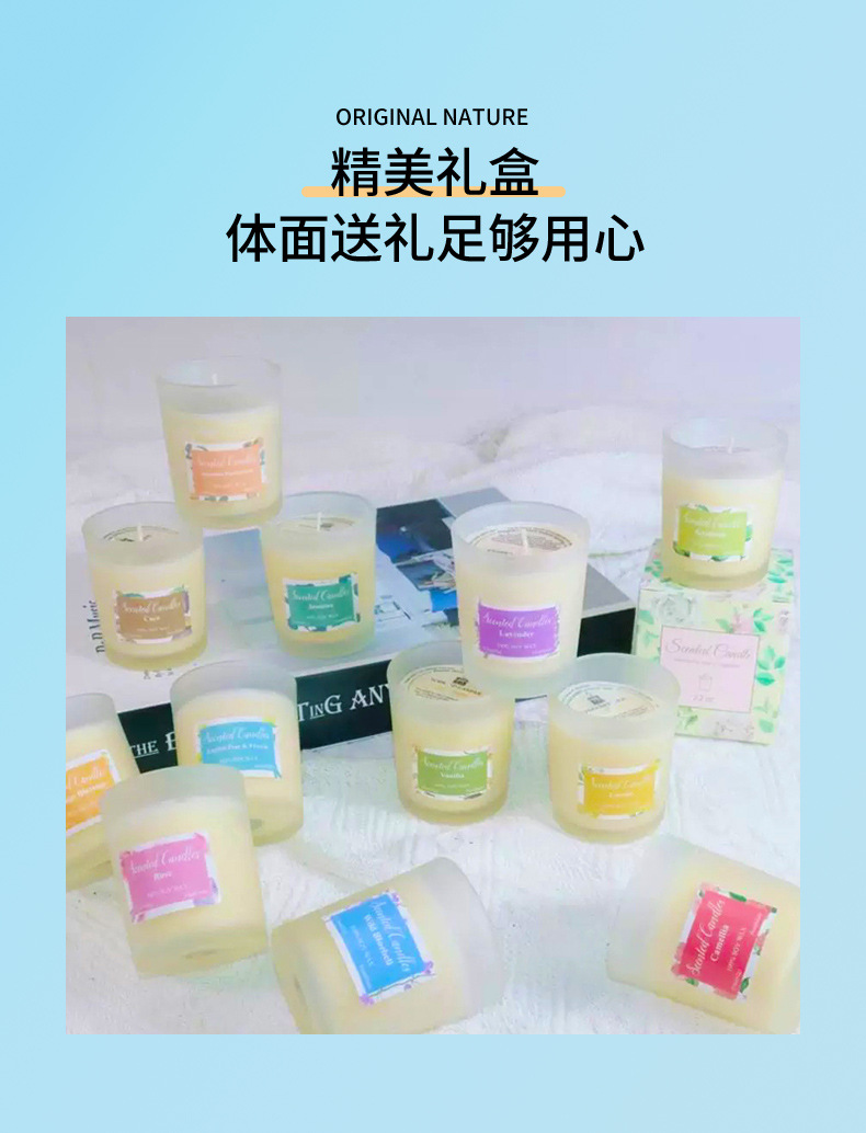 跨境热销简约磨砂质感香薰蜡烛 清新空气淡香结婚伴手礼无烟香薰