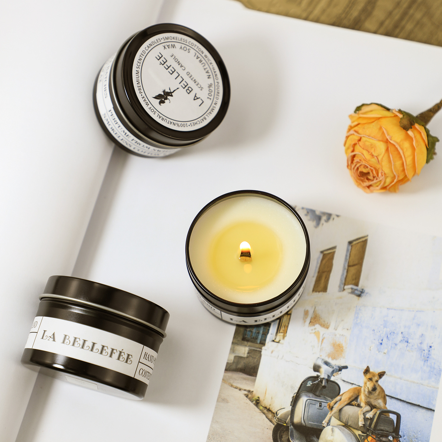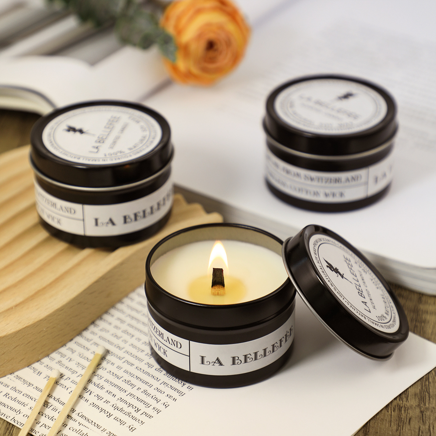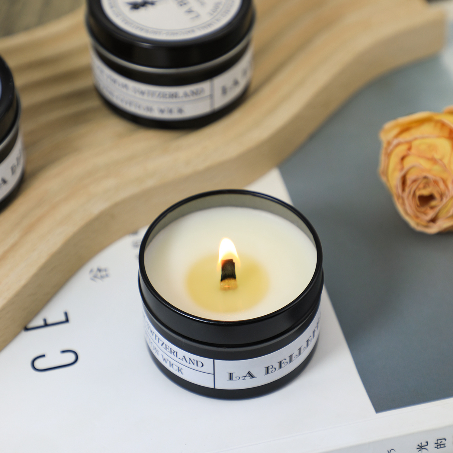 木芯黑罐香薰蜡烛浪漫无烟香氛蜡烛婚礼布置礼品黑色铁罐香薰蜡烛