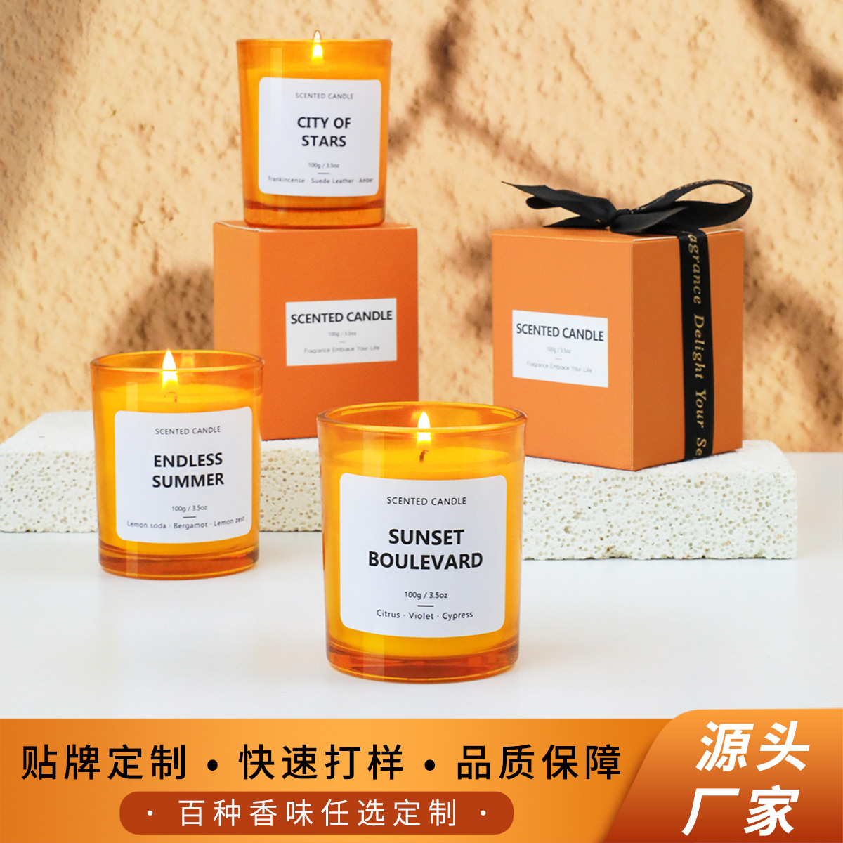 100g橙色玻璃香薰蜡烛毕业季礼物香氛开业伴手礼无烟礼盒香薰蜡烛