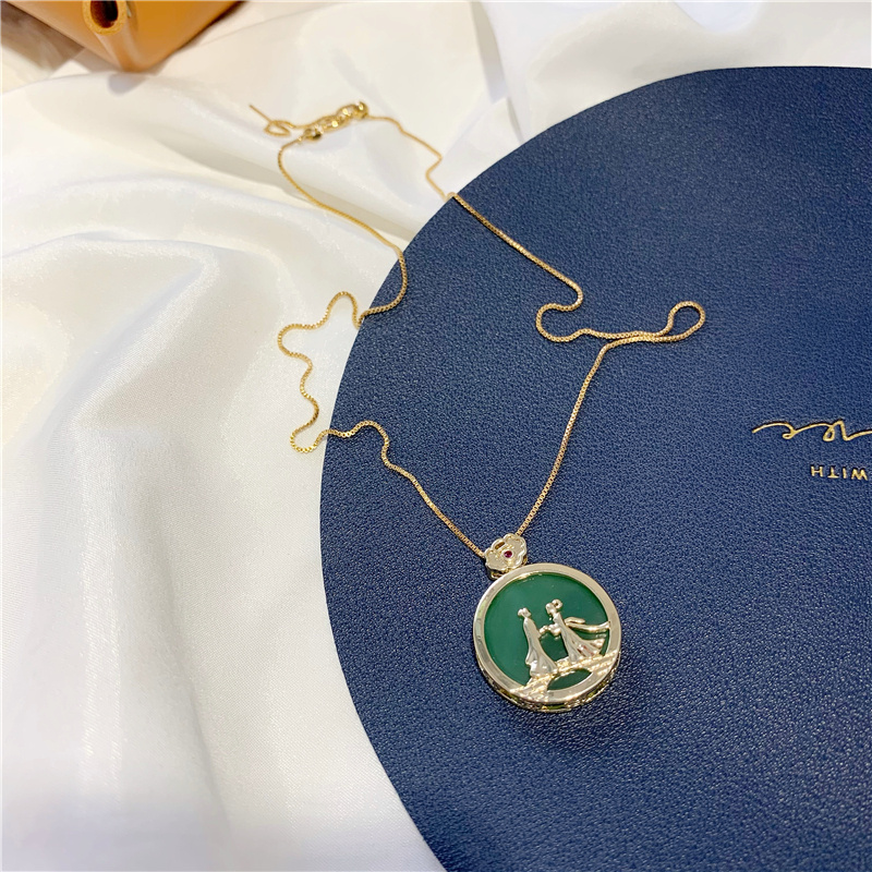 牛郎织女仿黄金镶玉吊坠锁骨颈链 气质沙金项链久不掉色女友礼物