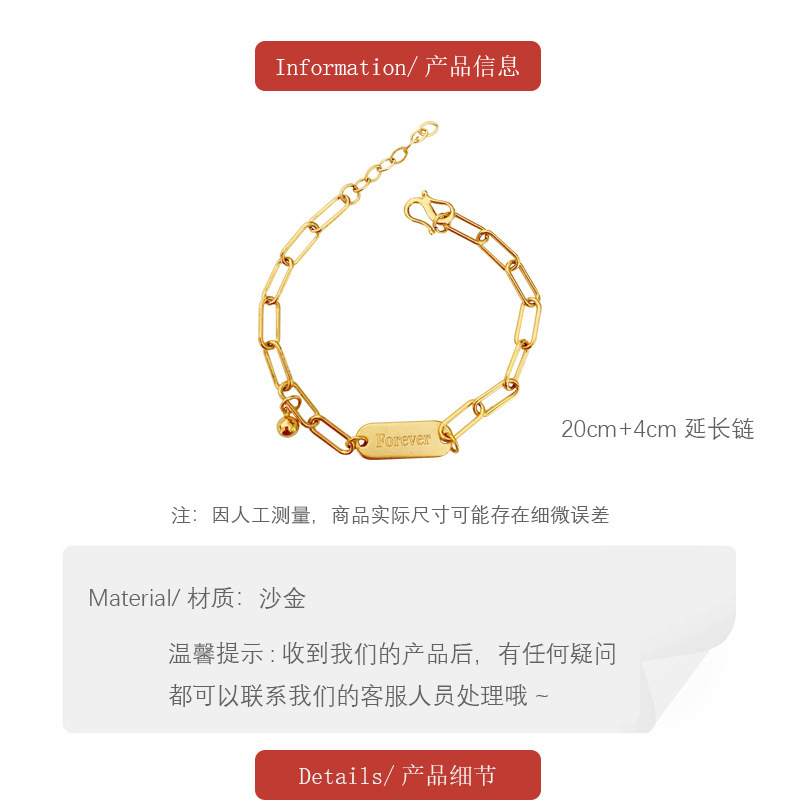越南沙金个性英文字母百搭手饰 2022新款久不掉色铃铛手链女批发
