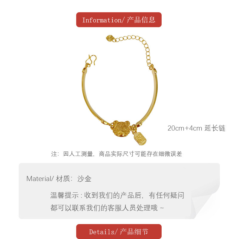 2022虎年新款纳福越南沙金手饰 可调节小老虎手链女久不掉色
