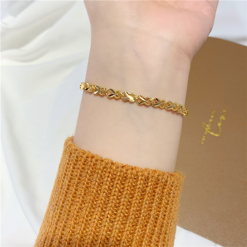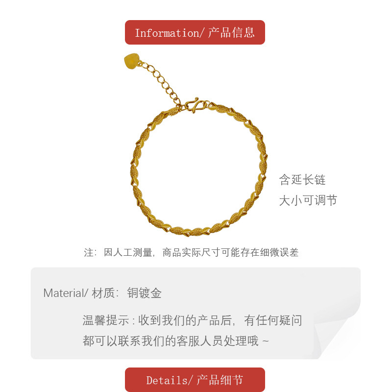 越南沙金小鱼手镯仿18k黄金手环首饰 久不掉色爱心形细手链女批发