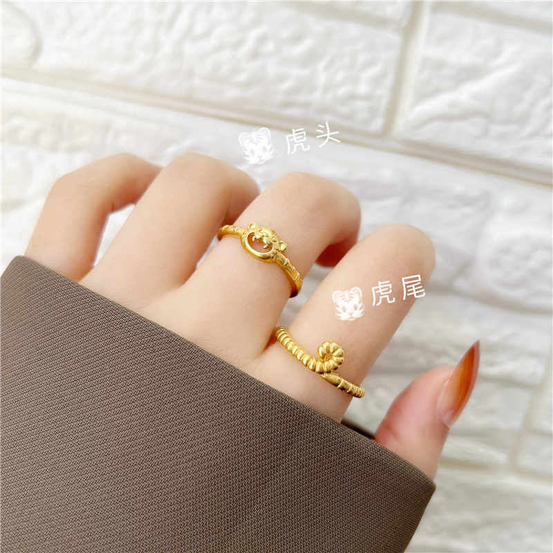 虎头虎尾小老虎戒指女久不掉色越南沙金仿黄金开口食指戒指环批发