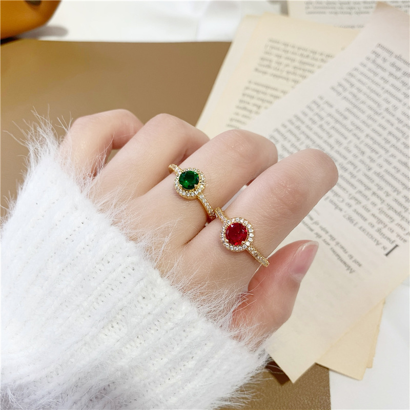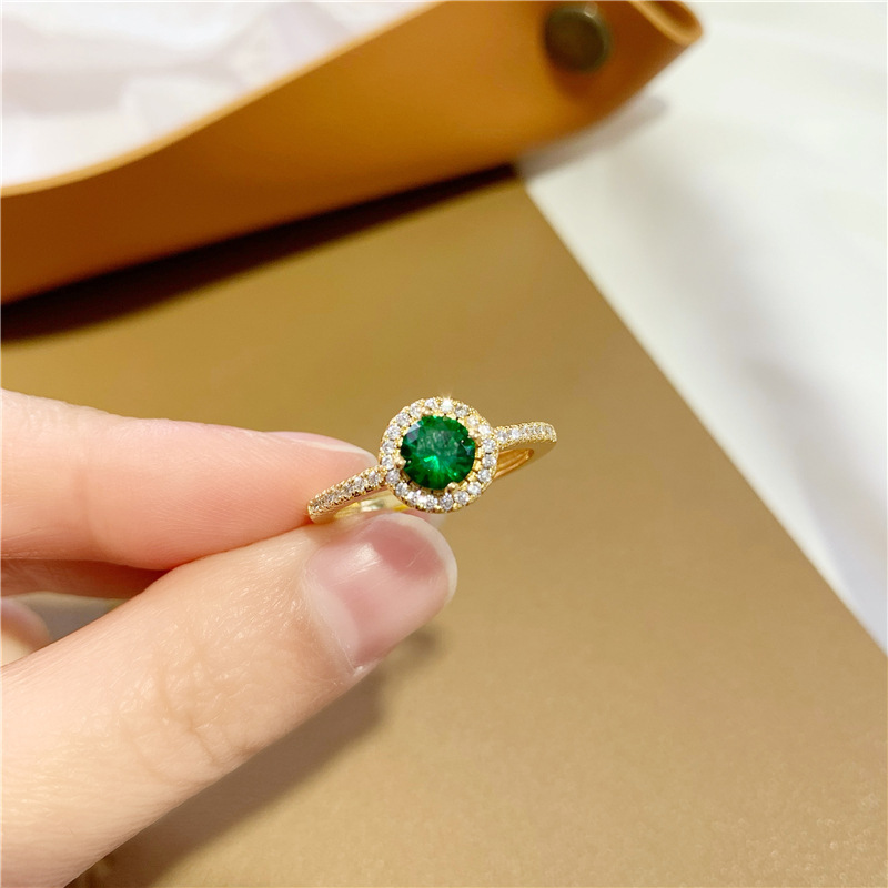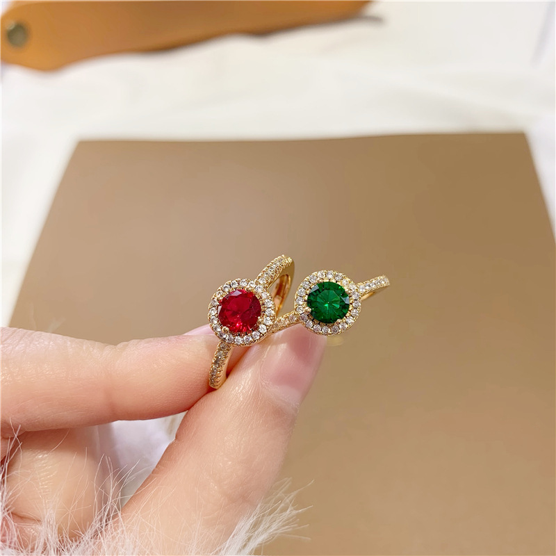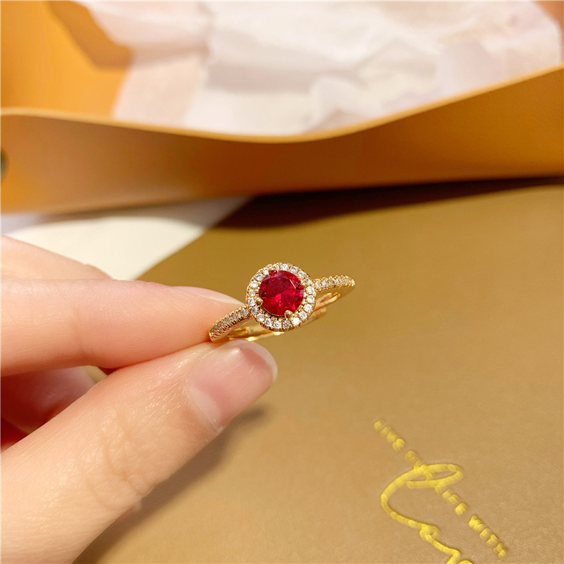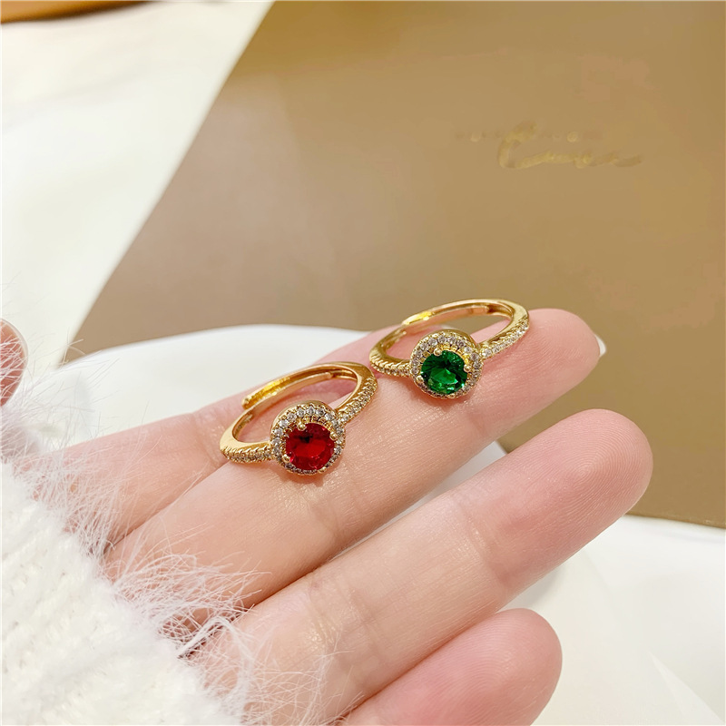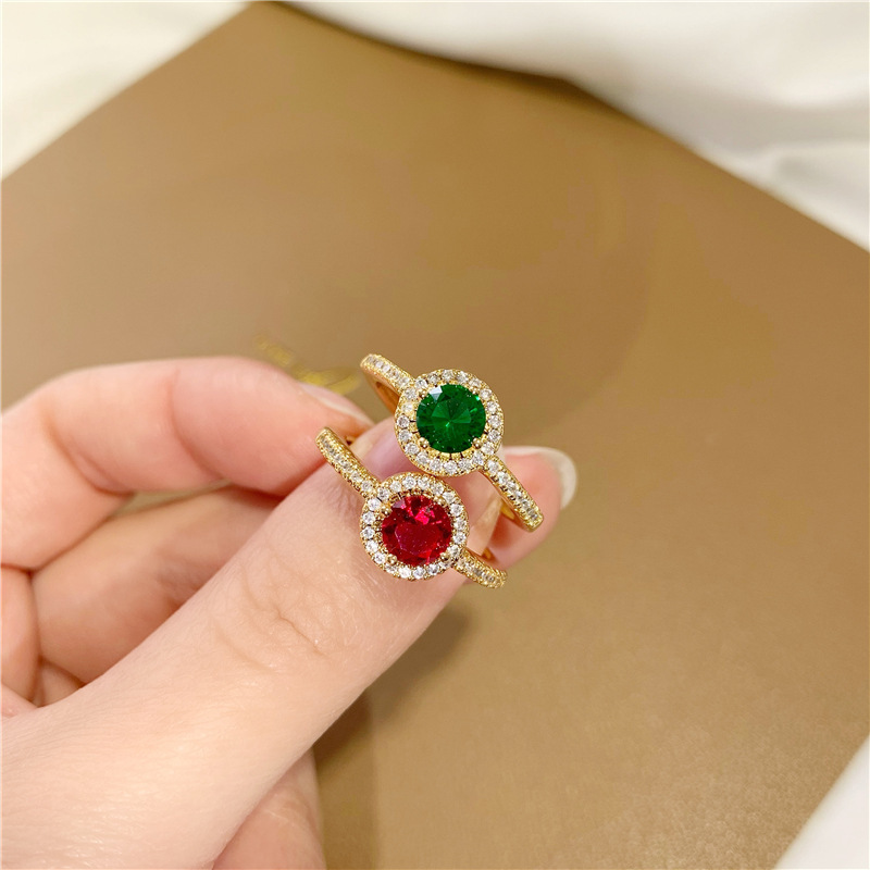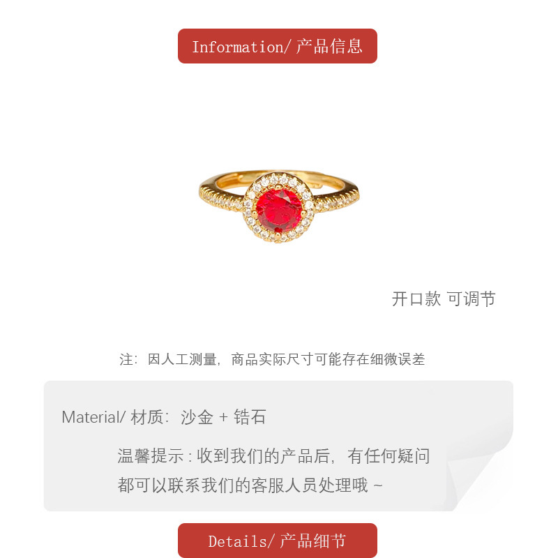 越南沙金宫廷风锆石镶钻指环首饰红绿宝石水晶戒指女久不掉色批发