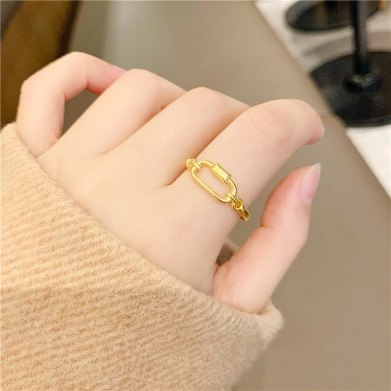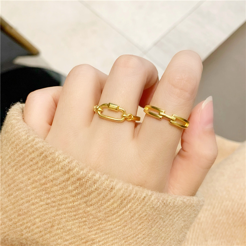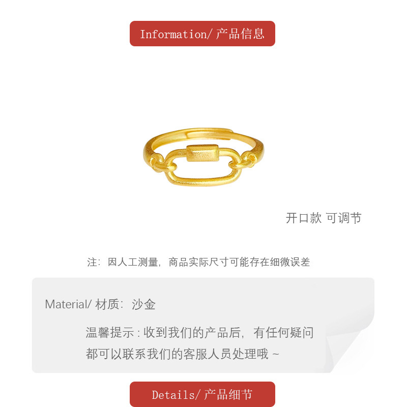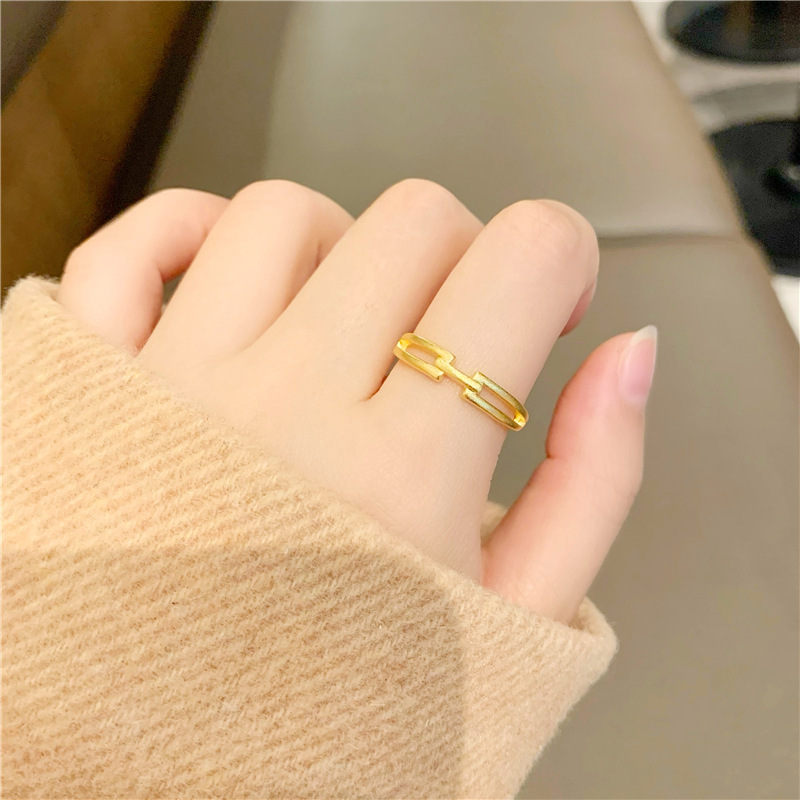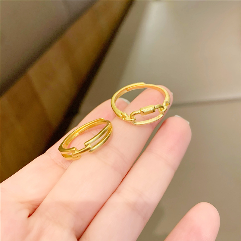 小红书几何食指戒指环久不掉色 越南沙金首饰开口戒指简约女批发