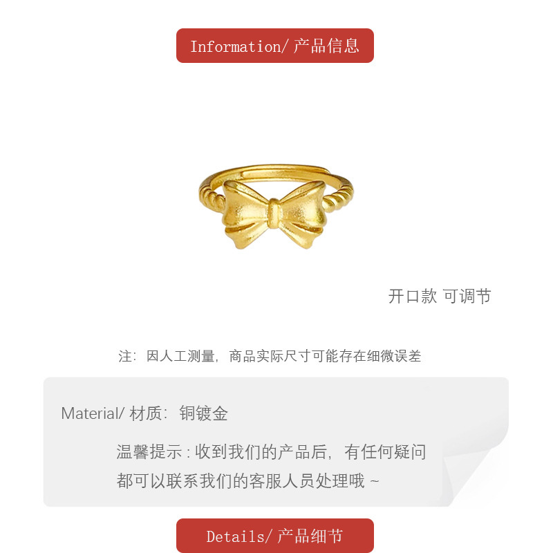 金店同款黄铜镀金指环越南沙金手饰开口蝴蝶结戒指女久不掉色批发