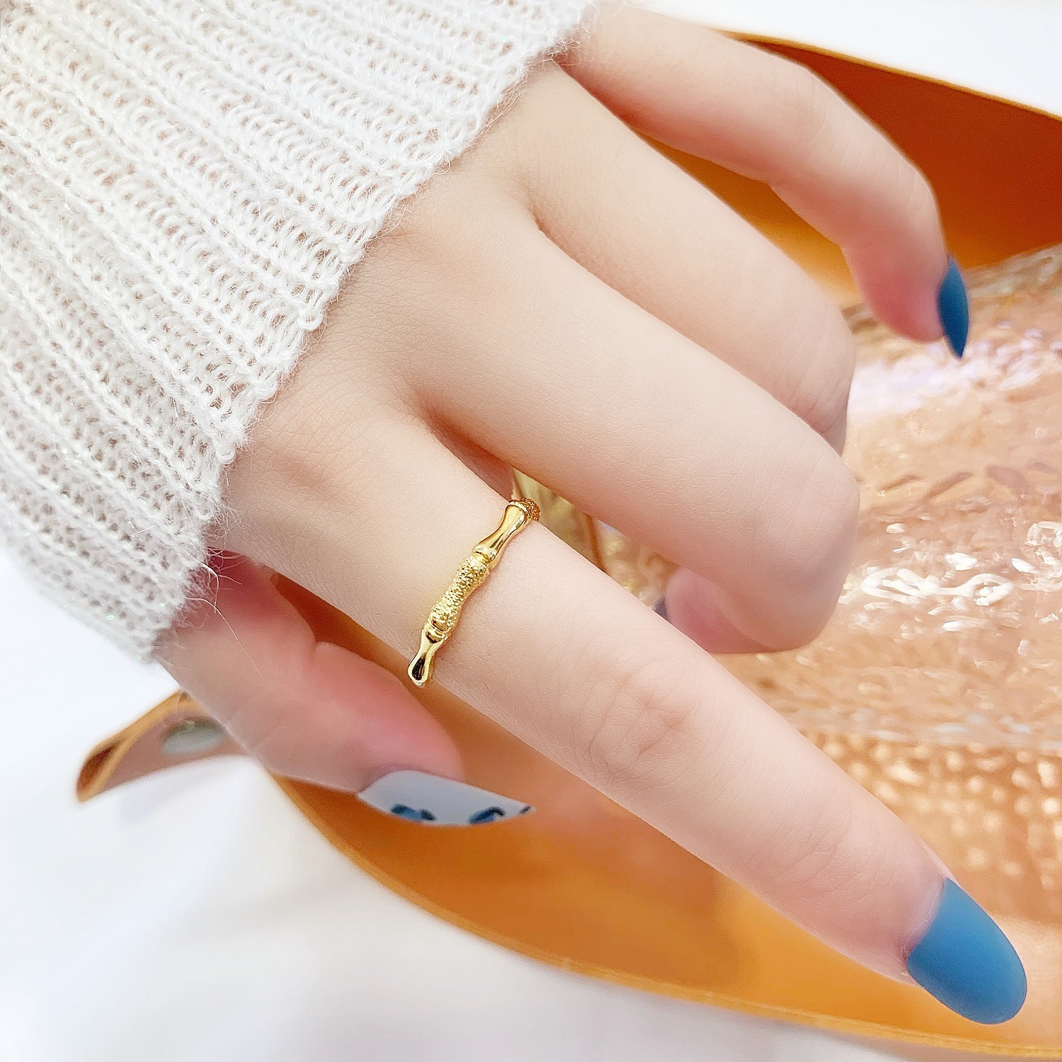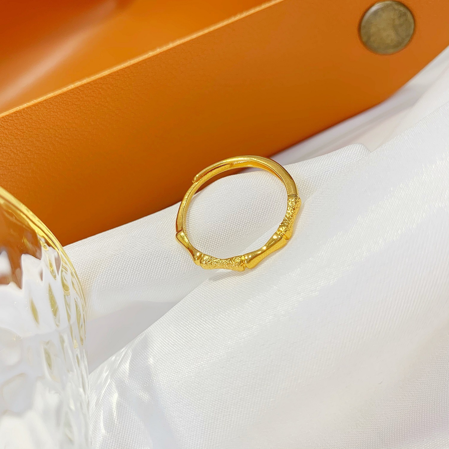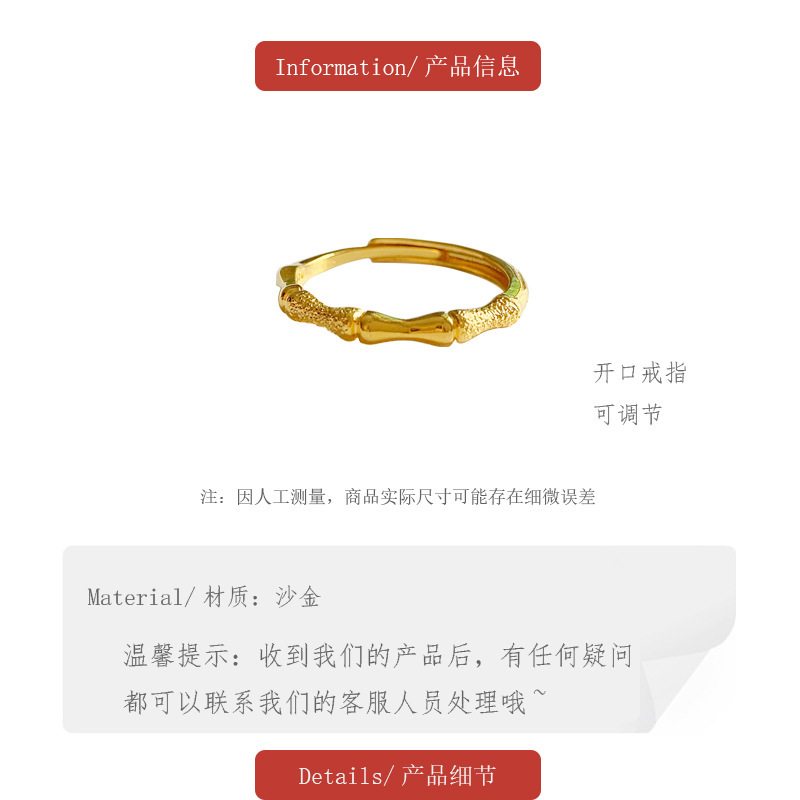气质竹节沙金戒指女久不掉色可调节 镀24k金仿黄金关节食指戒指环