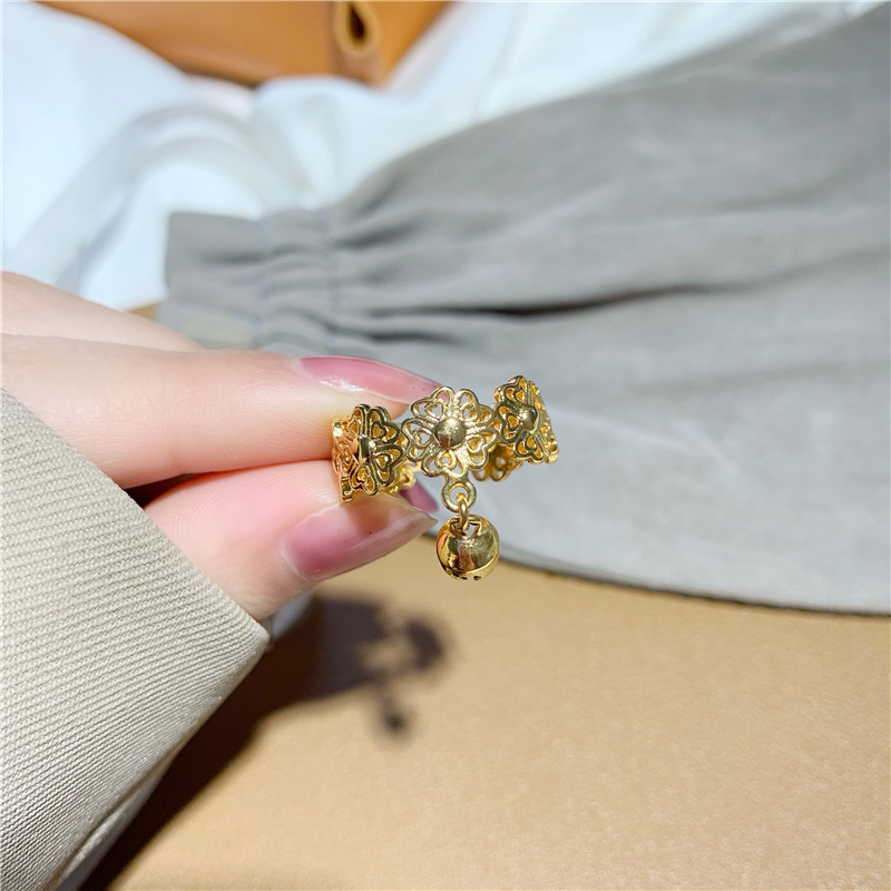 气质镂空花朵花纹沙金开口戒指女 久不掉色铃铛吊坠食指戒子指环