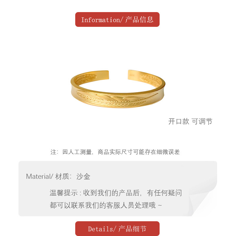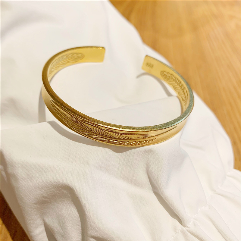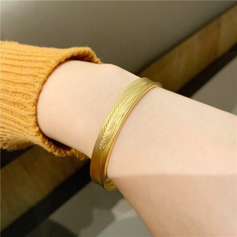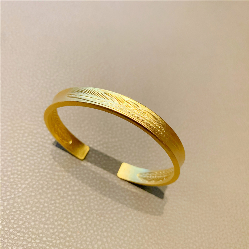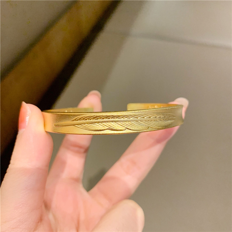 抖音快手直播沙金字母手环首饰金店同款羽毛开口手镯子女久不掉色