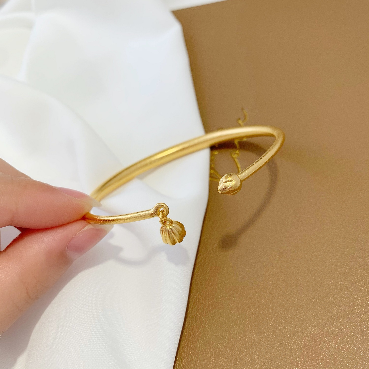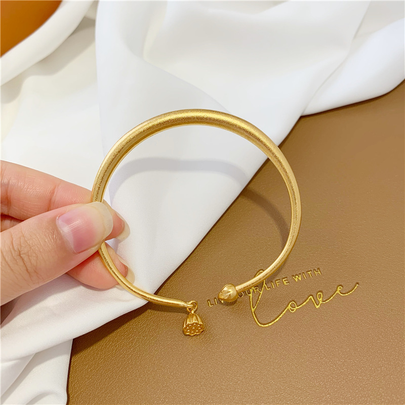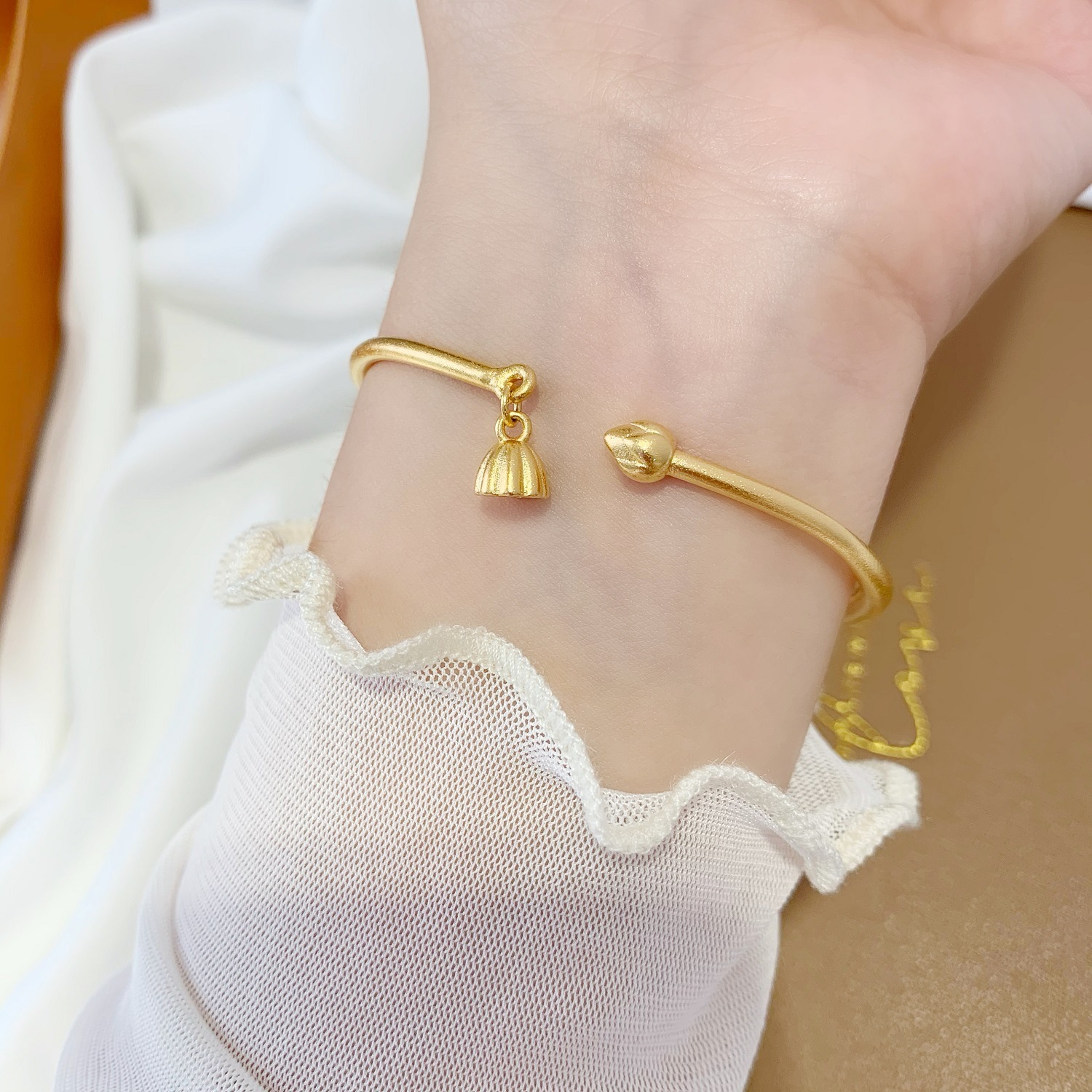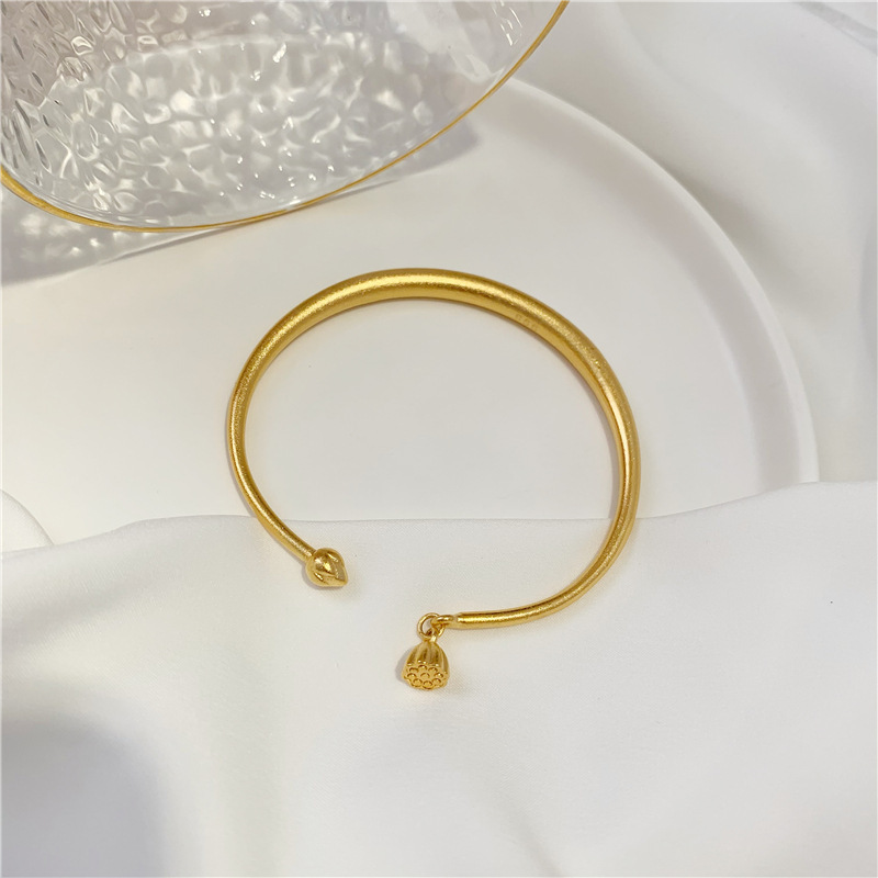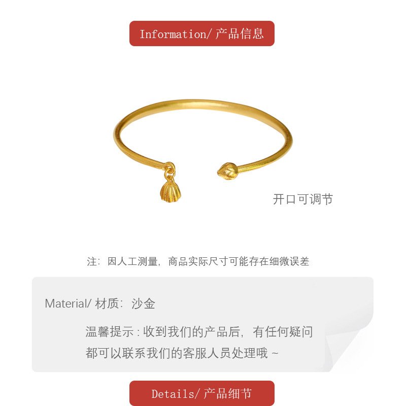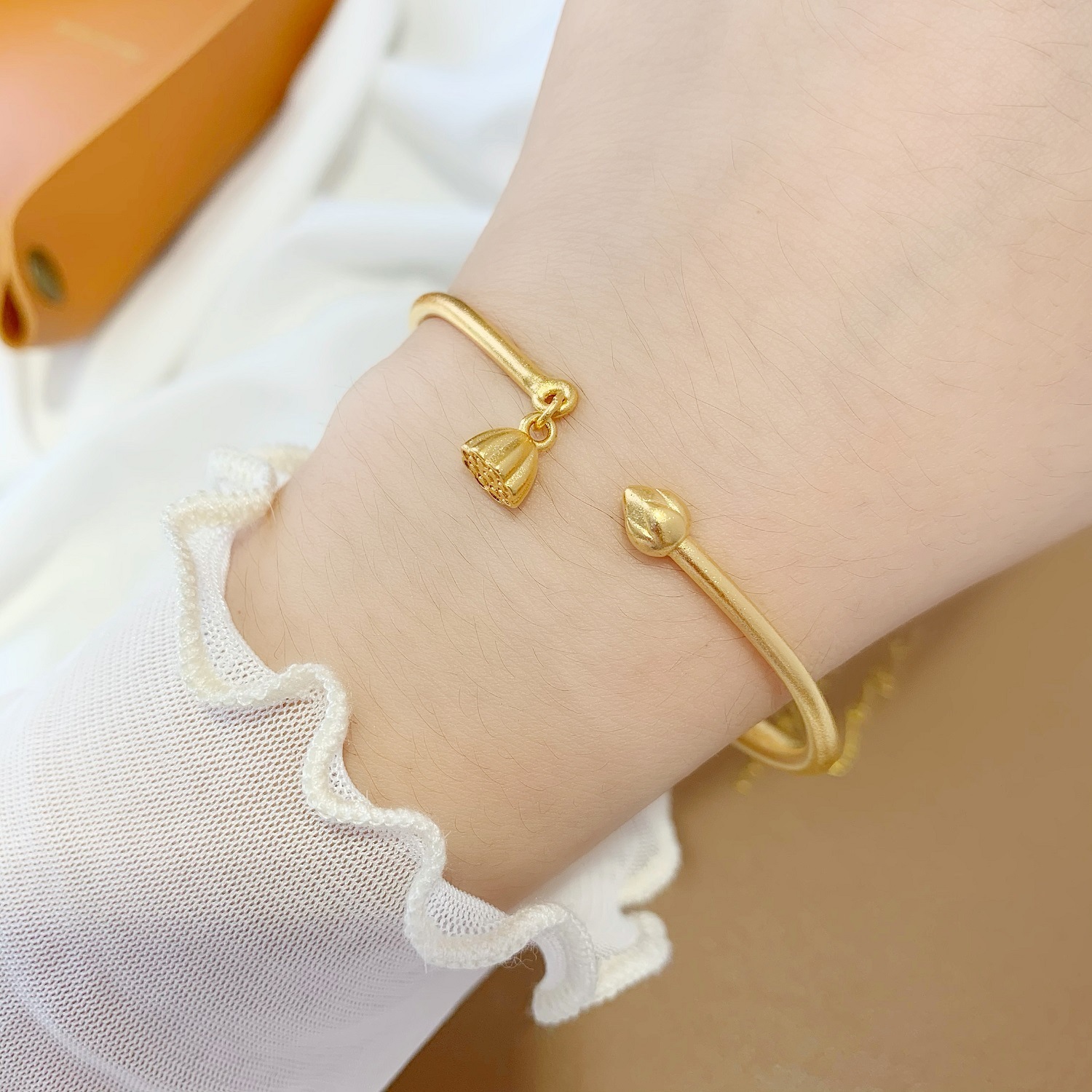 两世欢莲蓬莲子吊坠沙金手环手链首饰黄铜镀金开口手镯女久不掉色