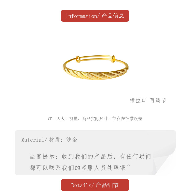 沙金首饰仿黄金手镯女可调节久不掉色手链磨砂流星雨时尚手环镯子