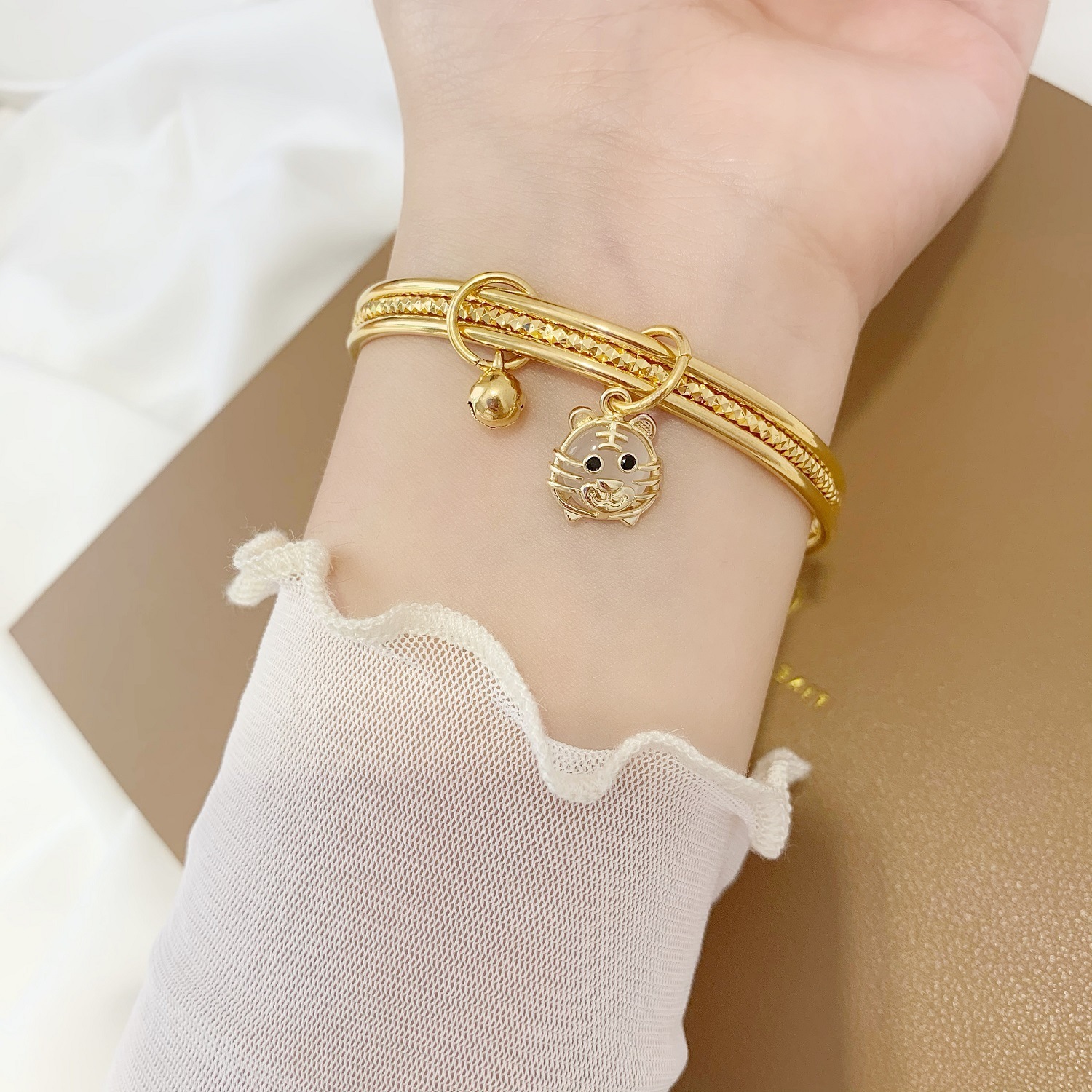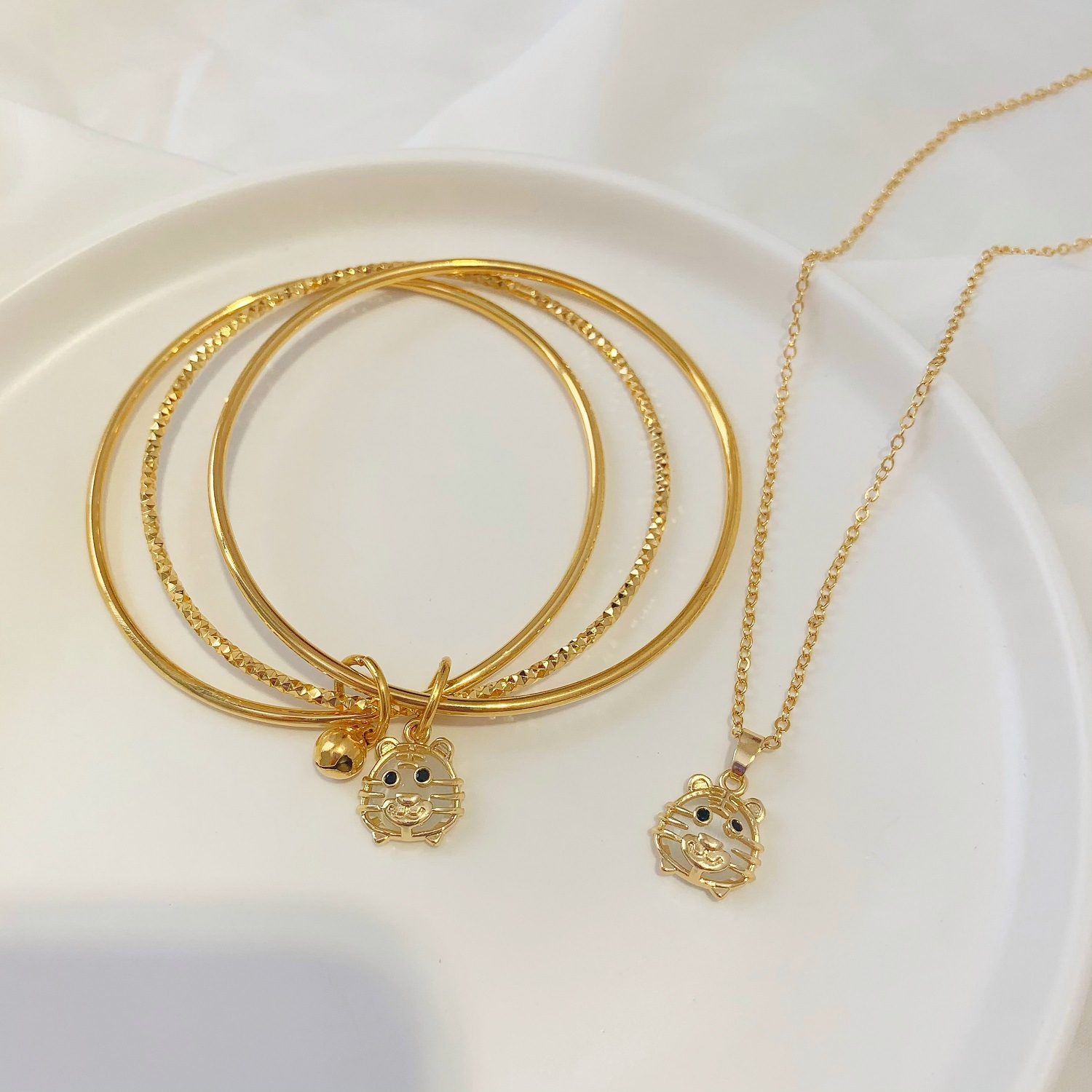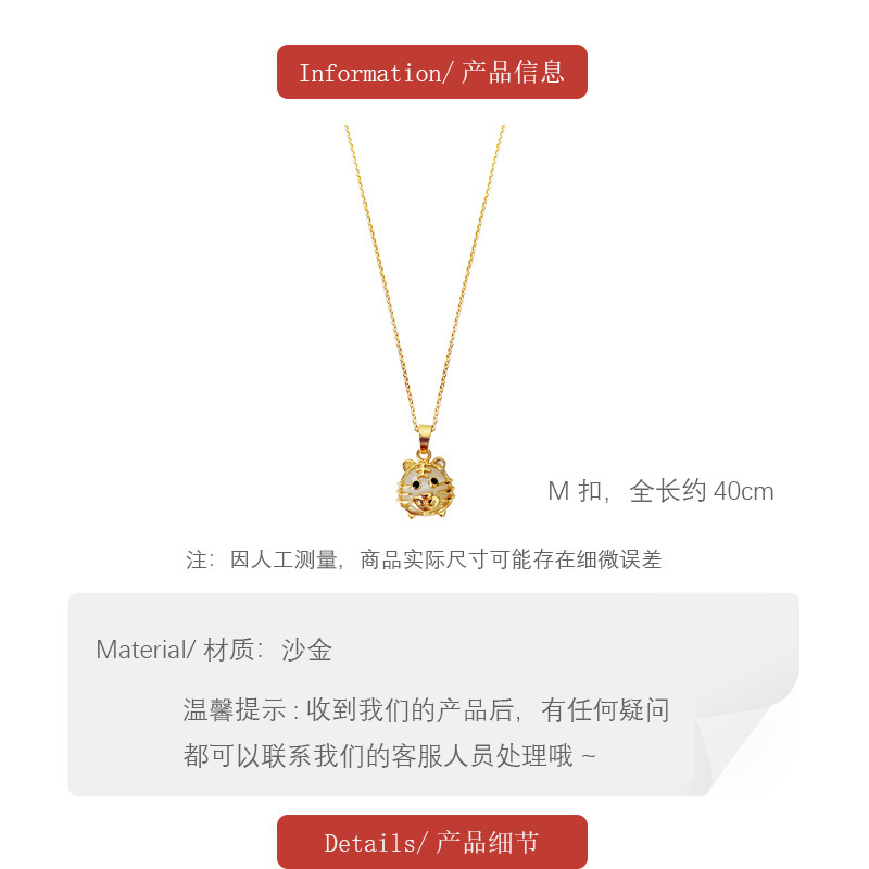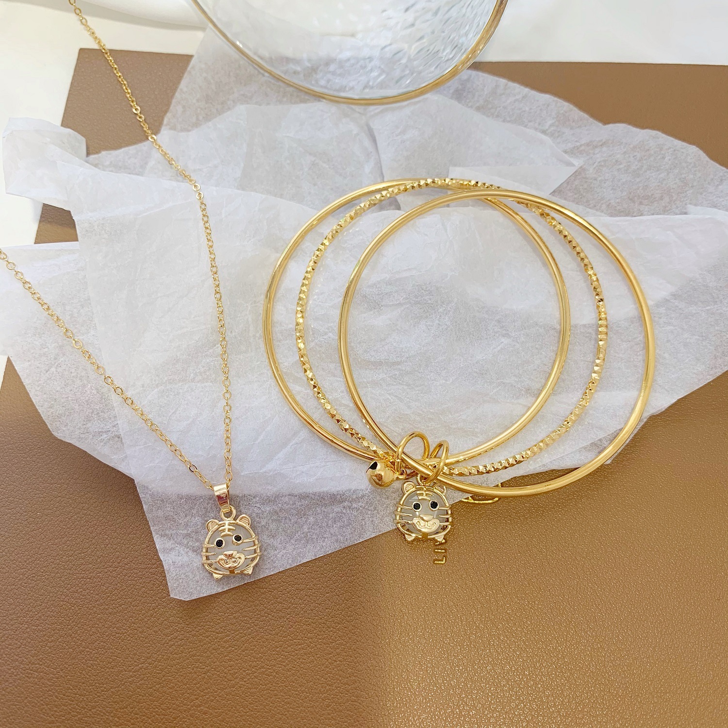 tiger pendant imitation 18k yellow gold inlaid with jade bracelet clavicle chain placer gold jewelry necklace bracelet female no color fading