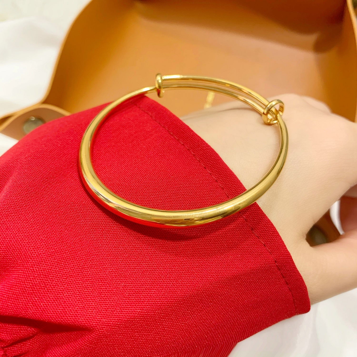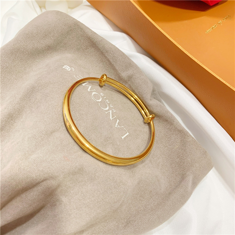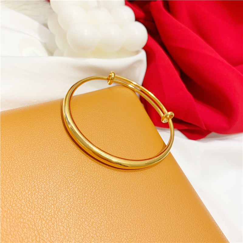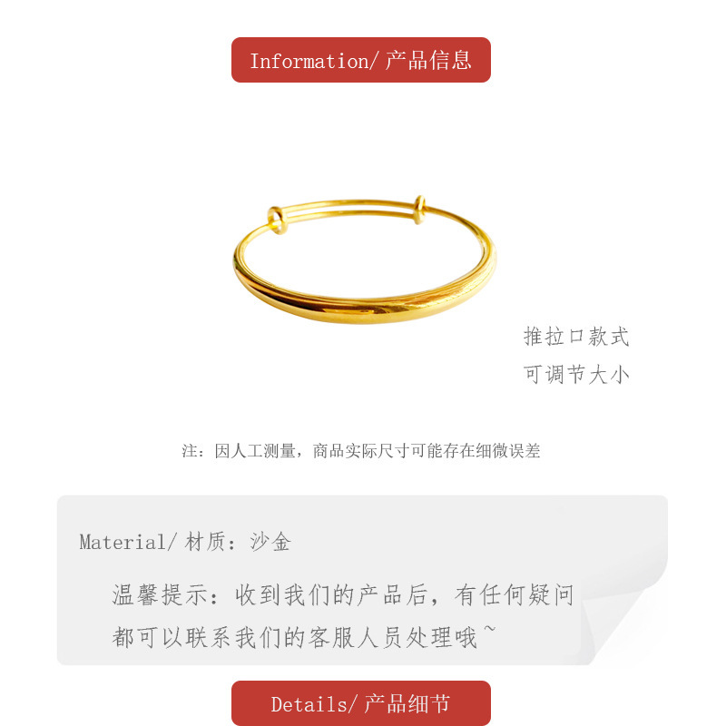 沙金久不掉色光面推拉手镯女可调节 气质镀24k真金仿黄金手环手饰