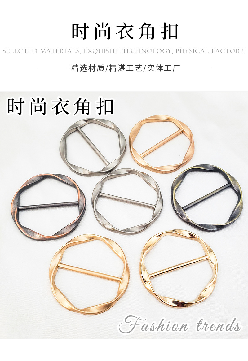 金属衣角扣打结扣衬衫T恤收腰日字扣三档扣腰带调节扣圆形丝巾扣