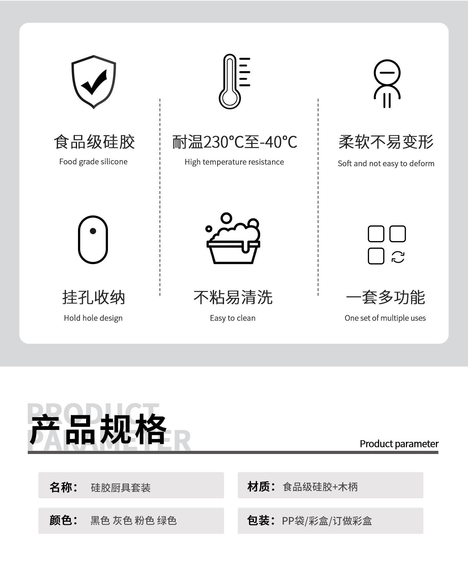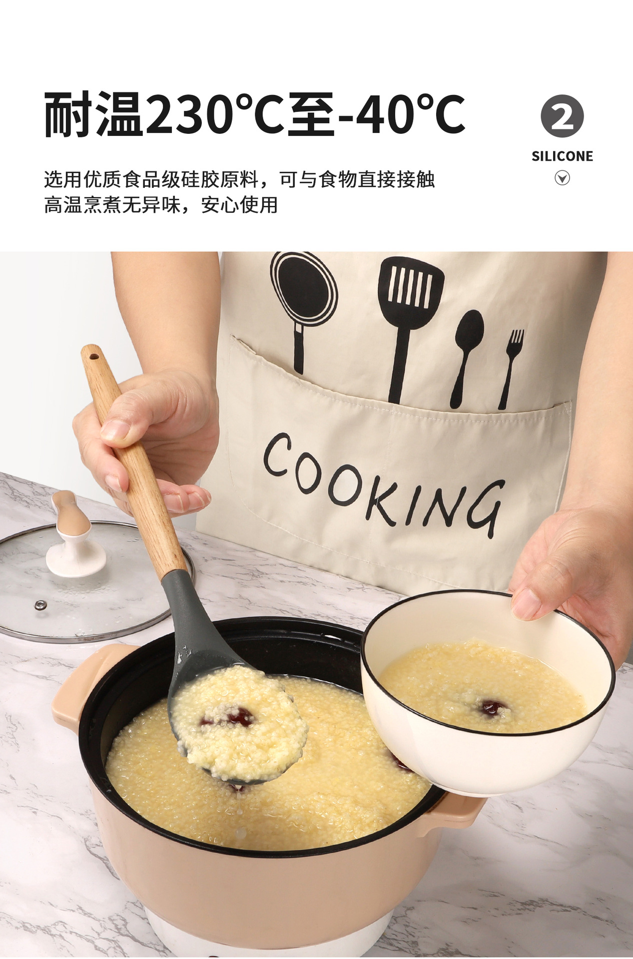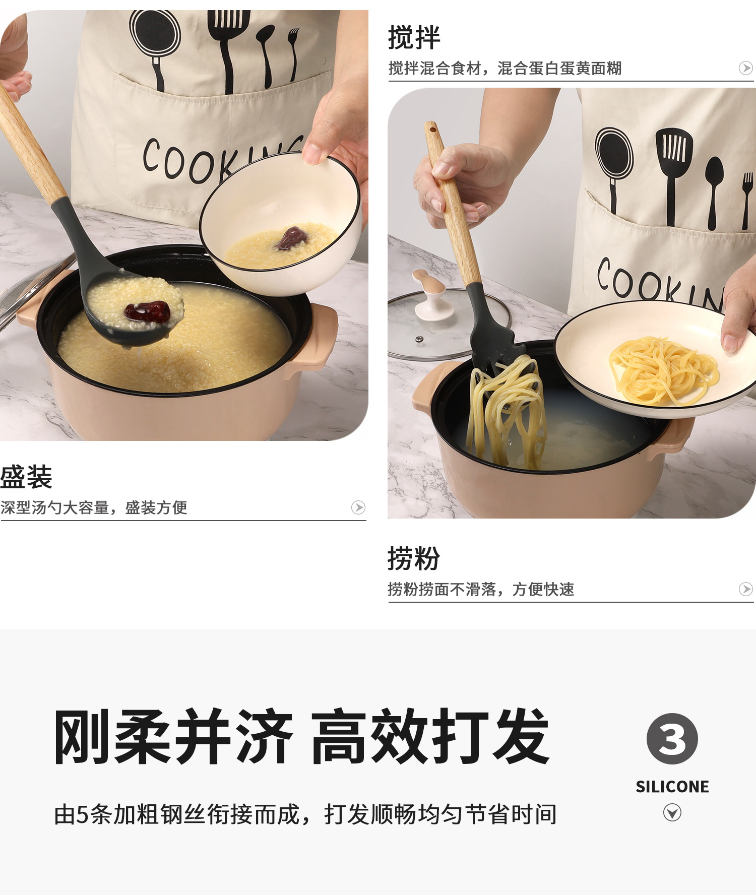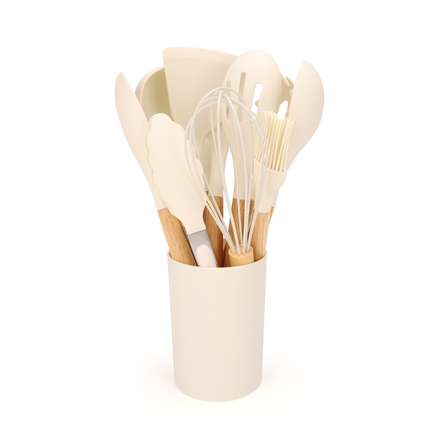 出口烹饪不粘锅收纳桶装木柄硅胶厨具轻木柄12件套不粘锅铲勺套装