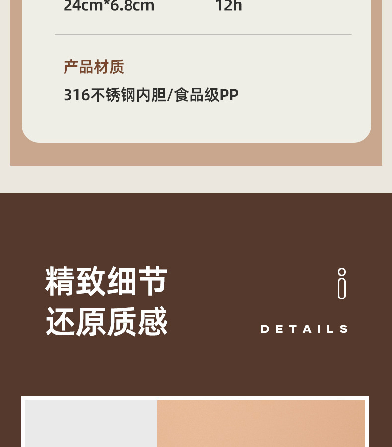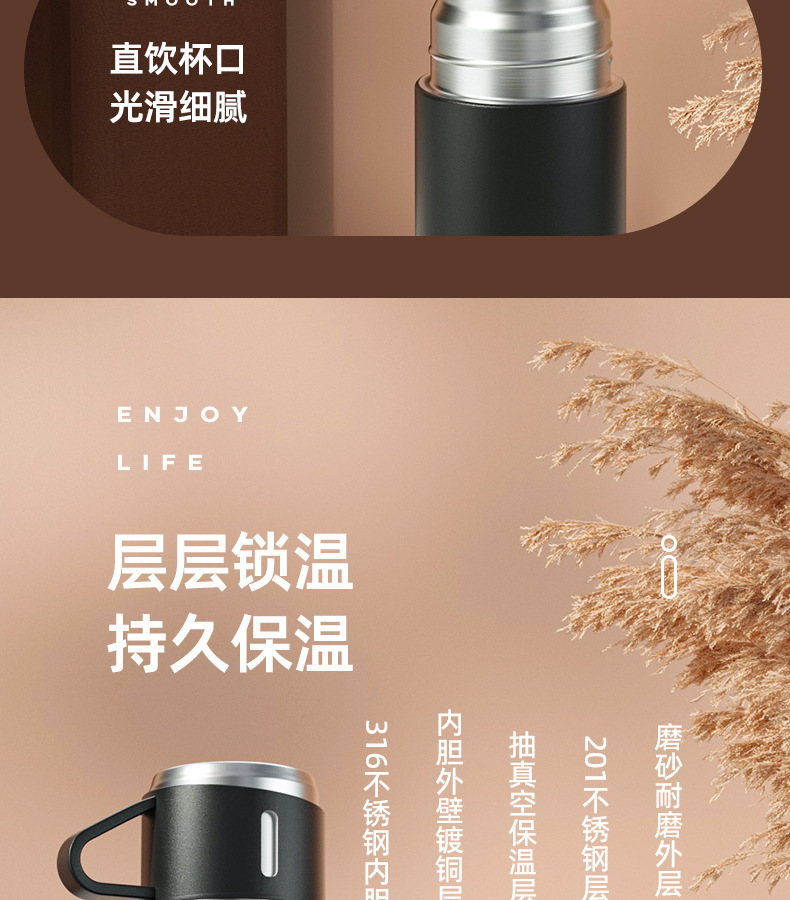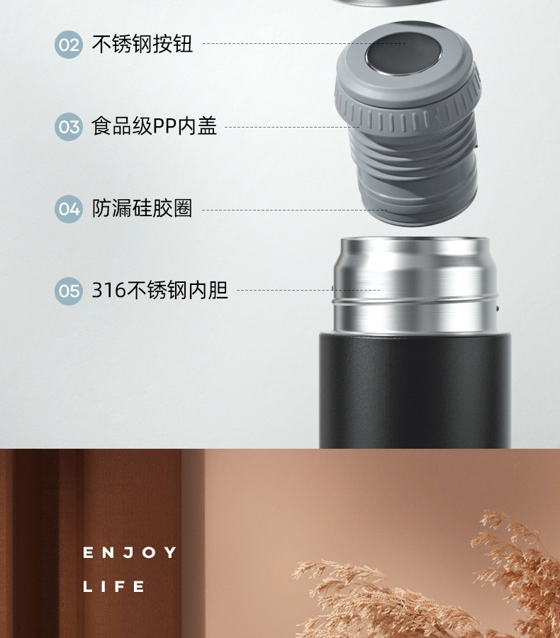 品材质:316不锈钢内胆+食品级PP盖+硅胶圈