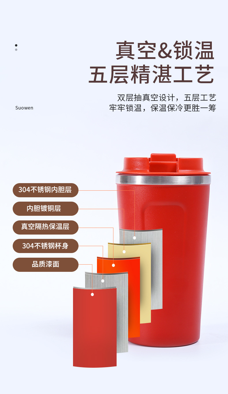 新款304不锈钢二代咖啡杯男女时尚便携式商务办公车载保温杯定制