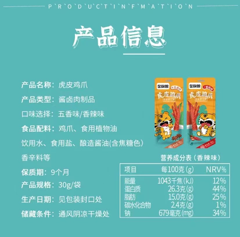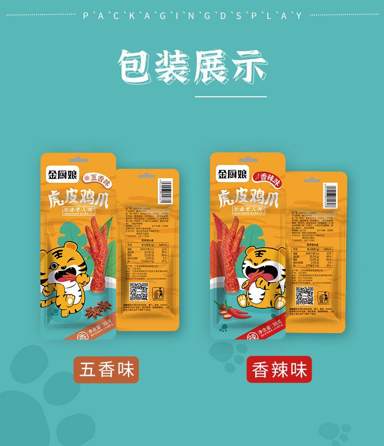金厨娘鸡爪虎皮凤爪30g即食卤味网红零食 五香香辣鸡肉零食批发