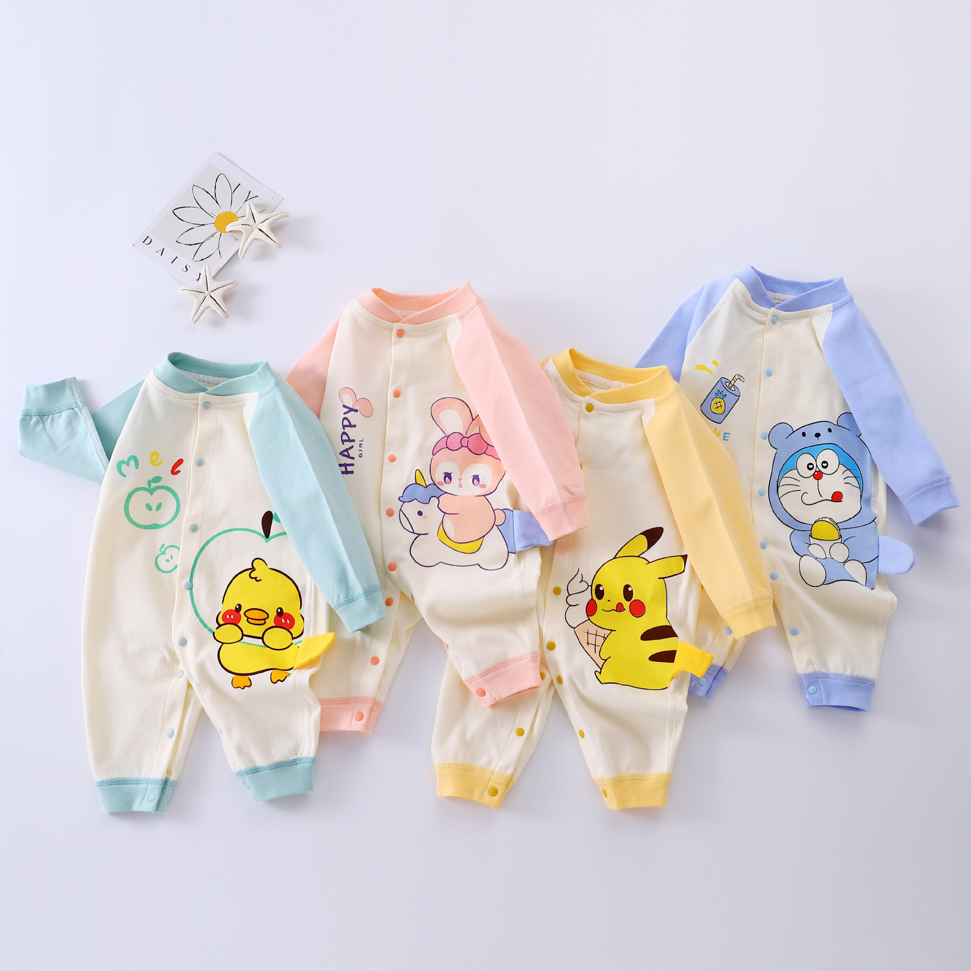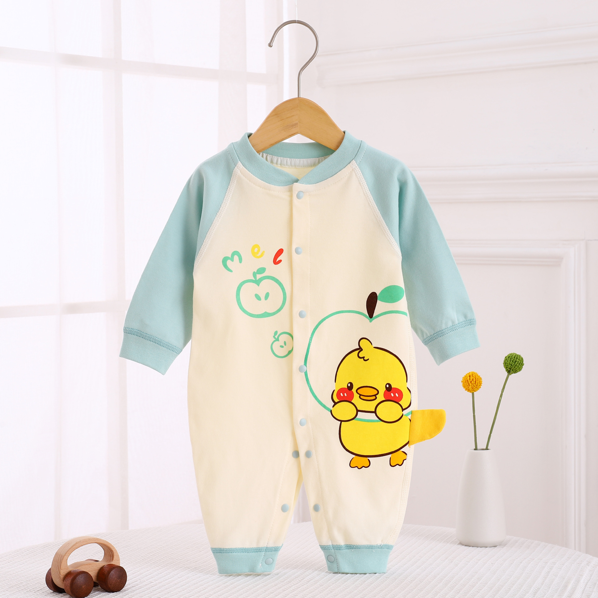 婴儿连体衣棉质长袖哈衣春秋季宝宝秋衣舒适爬服新生儿睡衣春秋装