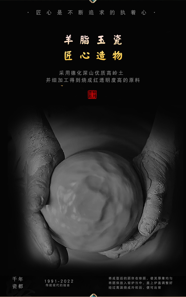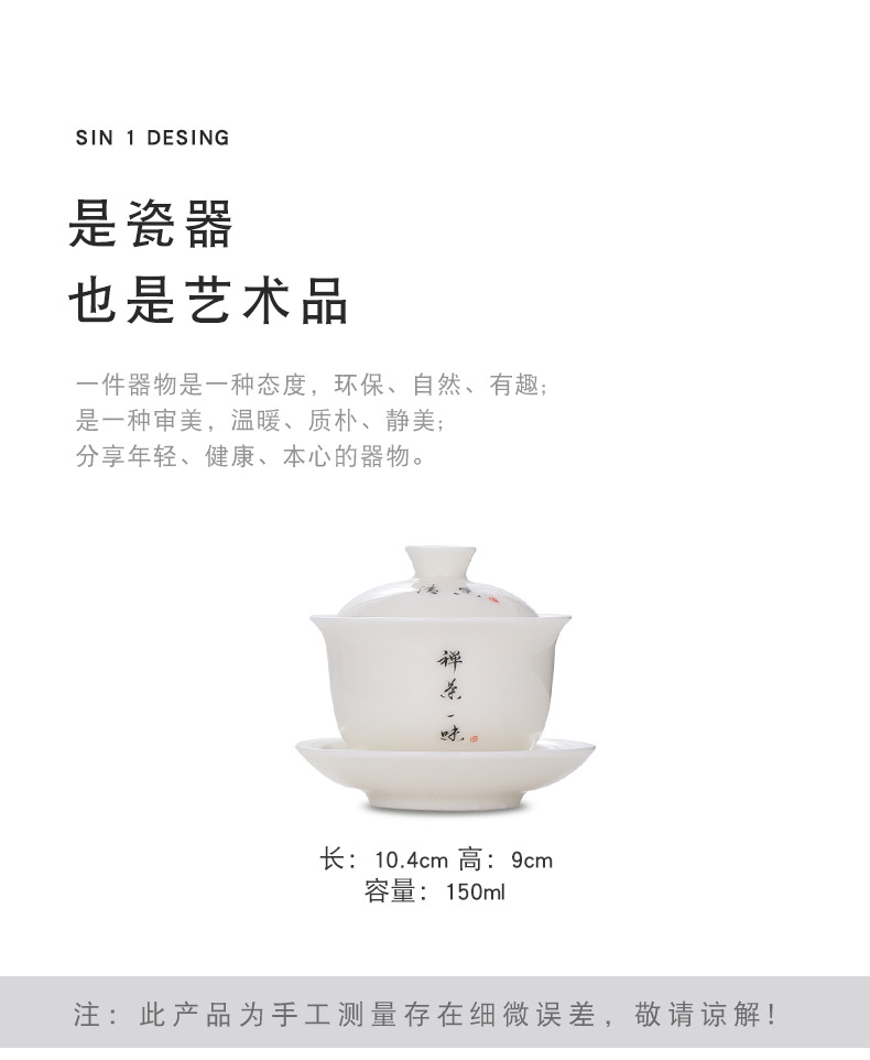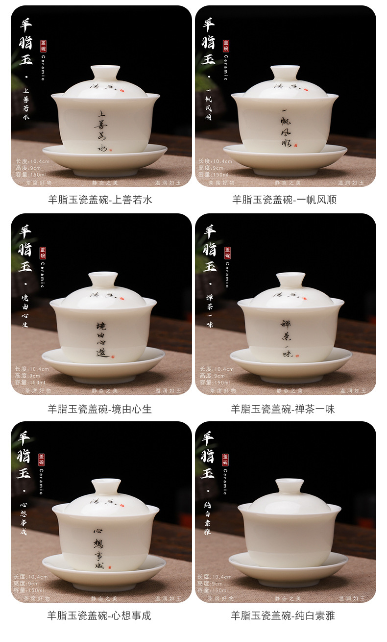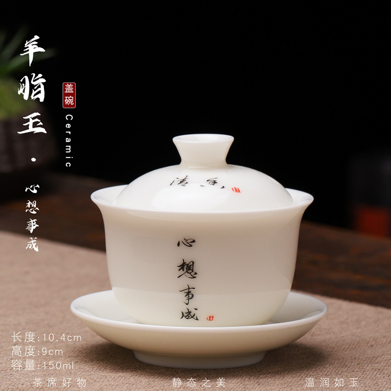 厚釉羊脂玉功夫三才盖碗茶具高端写字防烫家用客厅单个泡茶碗白瓷