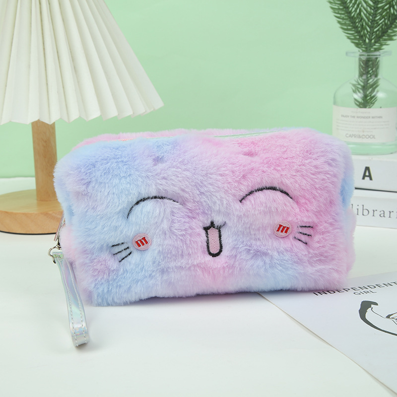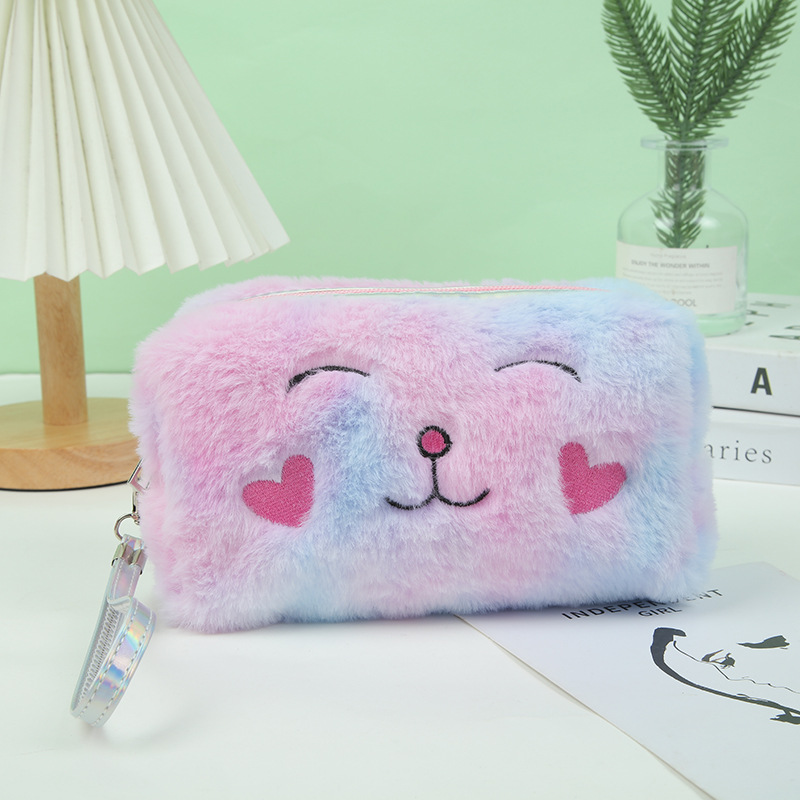 毛绒刺绣收纳包化妆包可爱柔软收纳袋笔袋学生收纳袋文具袋大容量