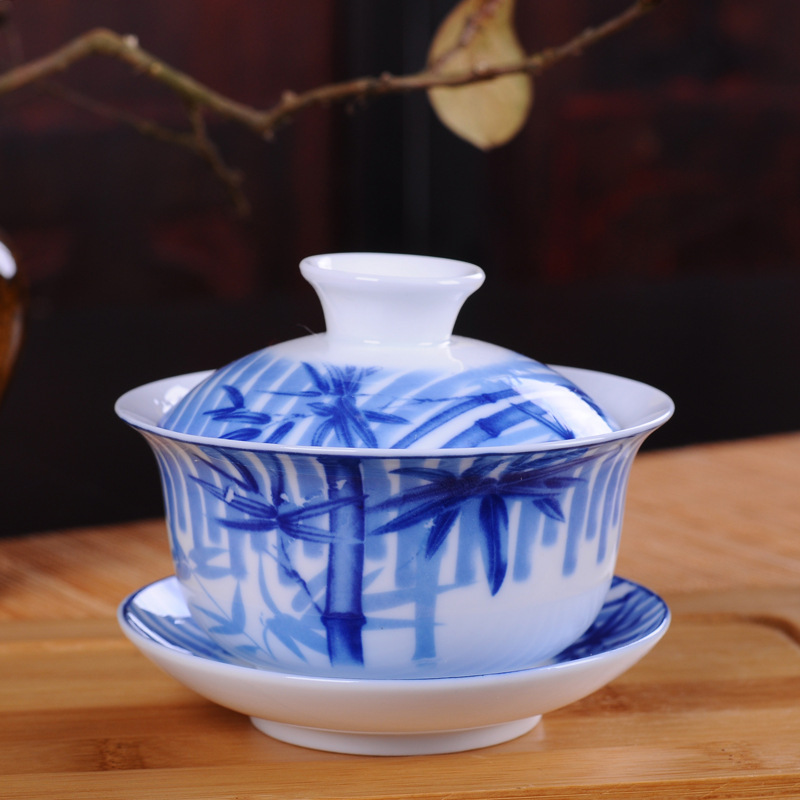 高白青花陶瓷盖碗茶杯创意家用泡茶碗3.8寸功夫茶具三才盖碗批发