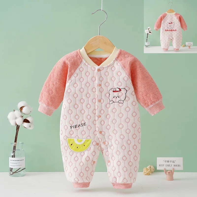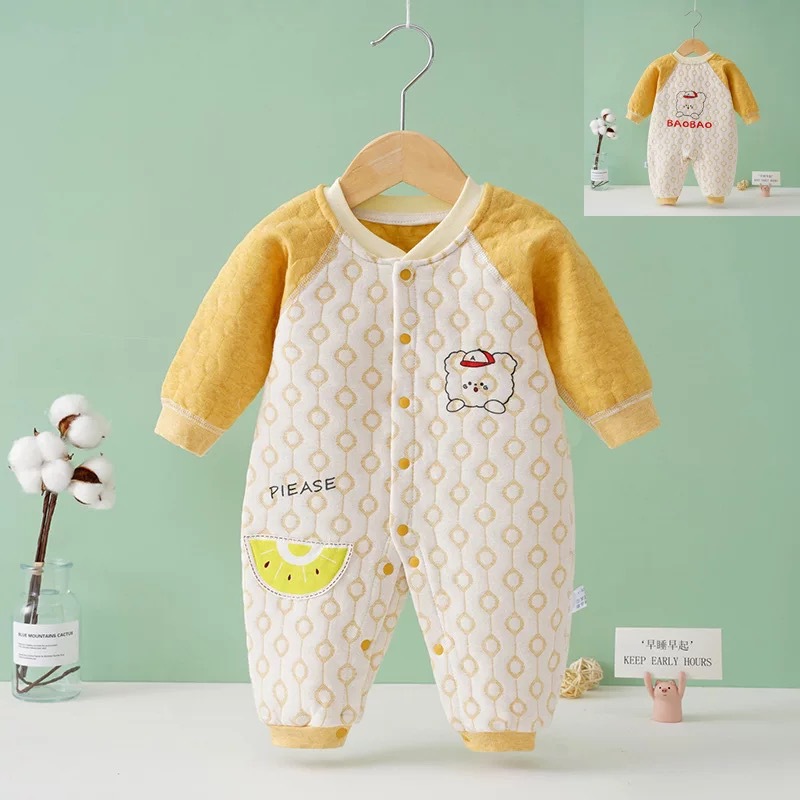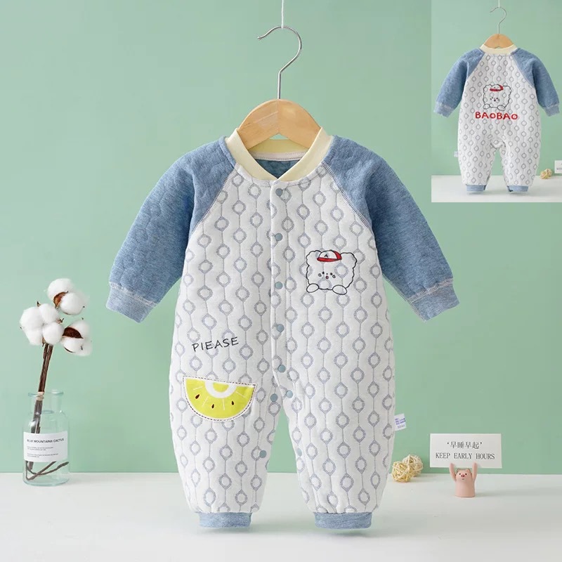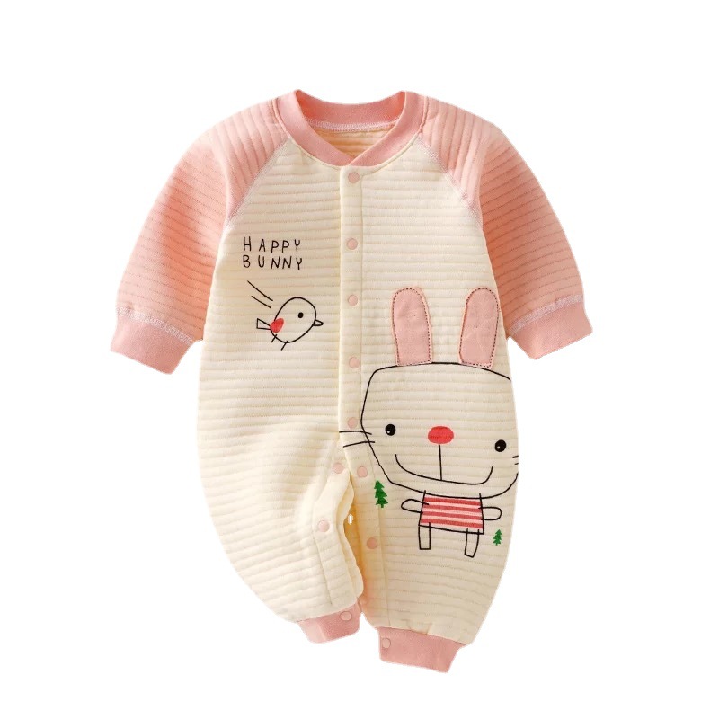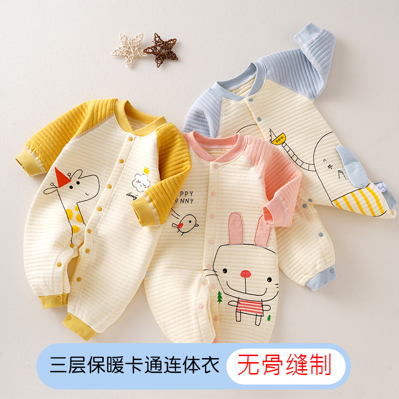 婴儿连体衣秋冬款三层保暖新生儿爬爬衣无骨工艺宝宝加厚哈哈衣