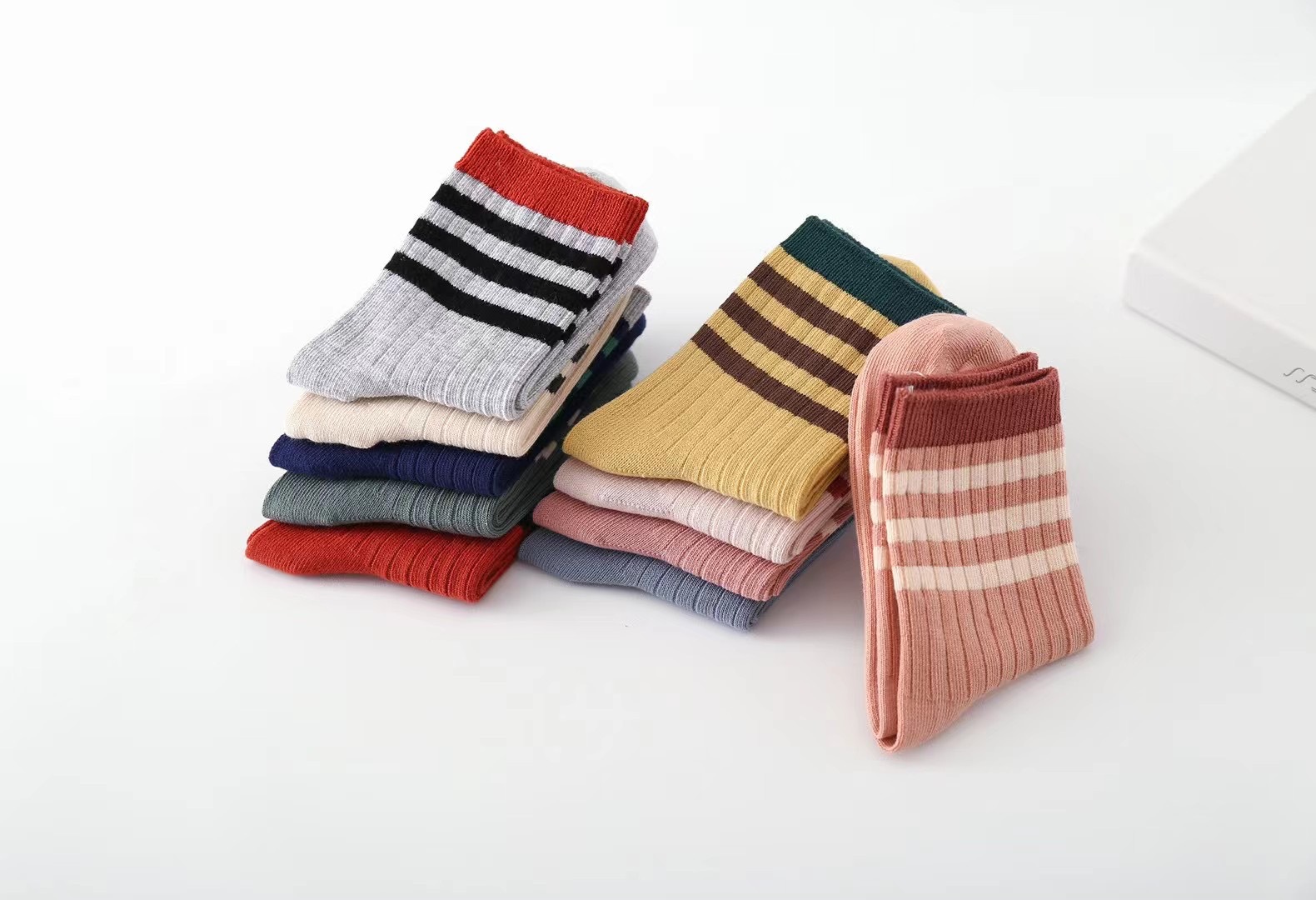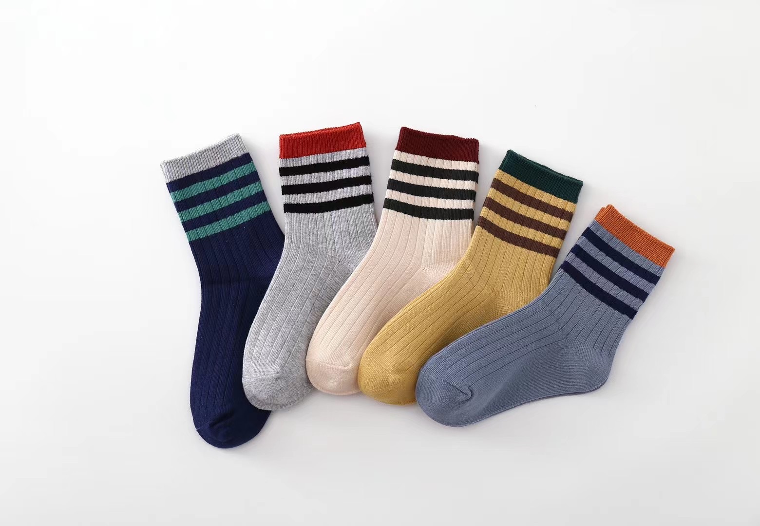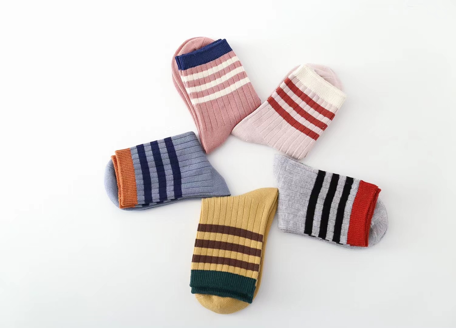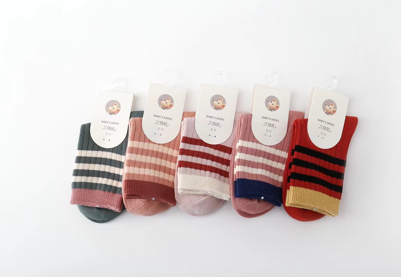 六指鼠双针儿童袜子秋冬季男童女童学生袜条纹百搭中大童中筒棉袜
