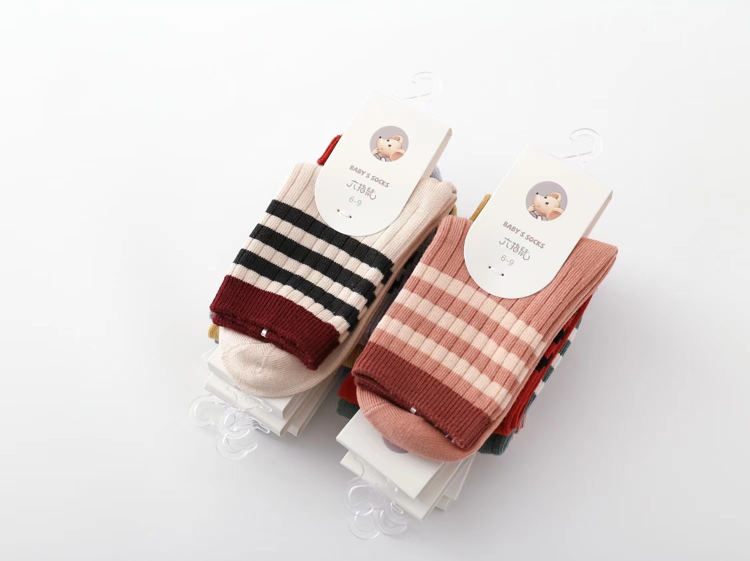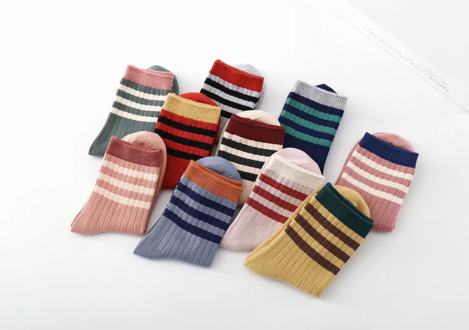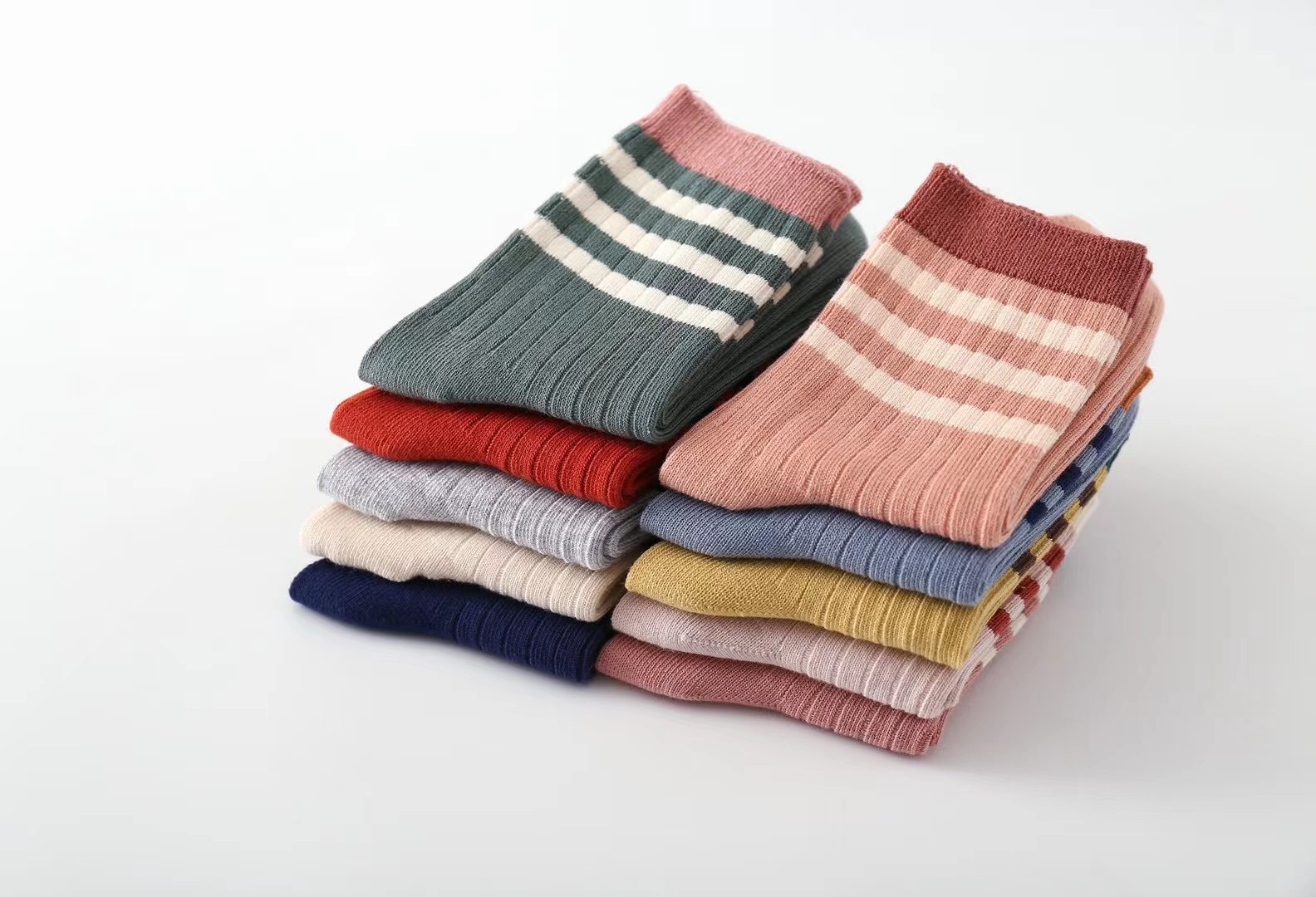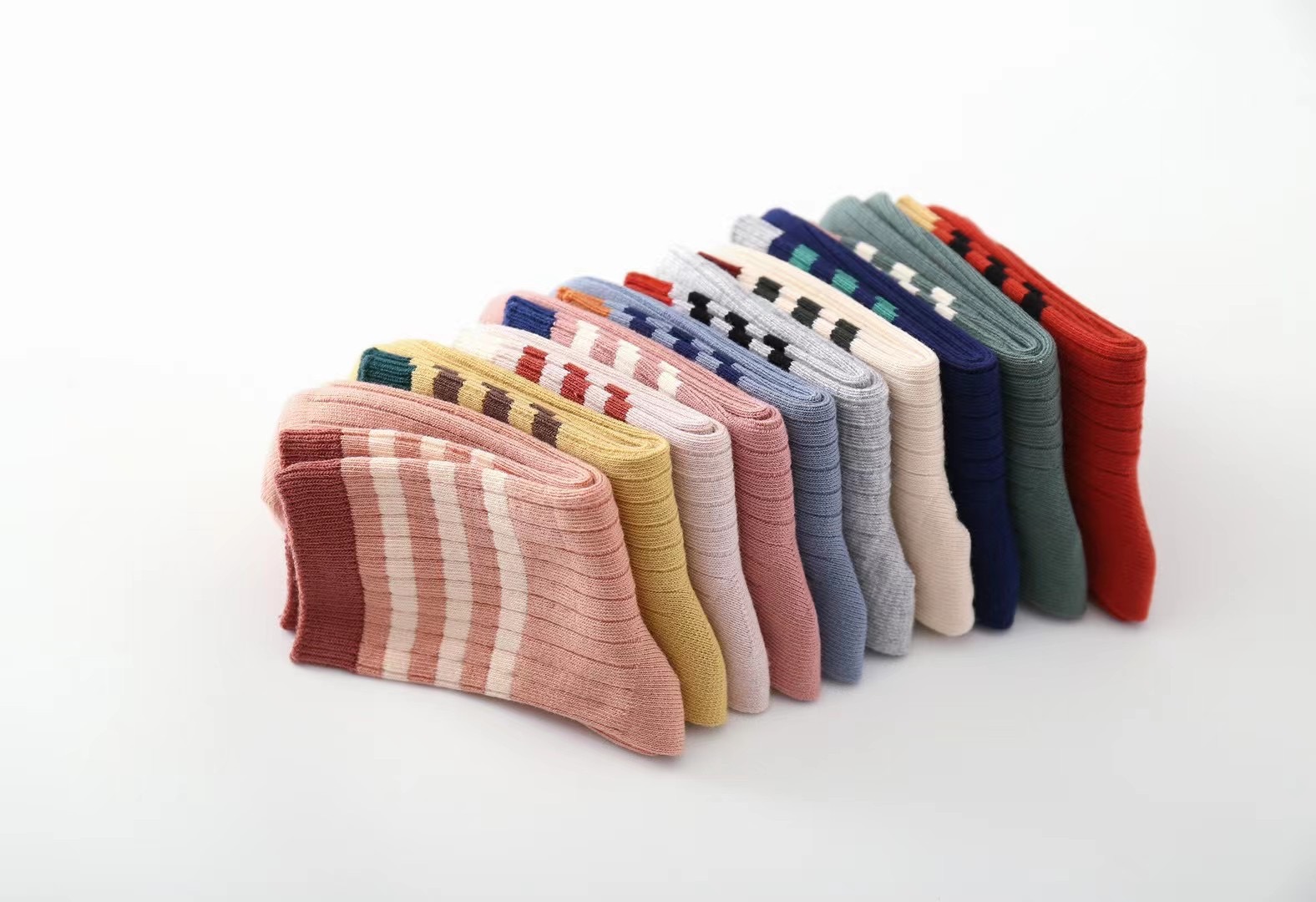 六指鼠双针儿童袜子秋冬季男童女童学生袜条纹百搭中大童中筒棉袜