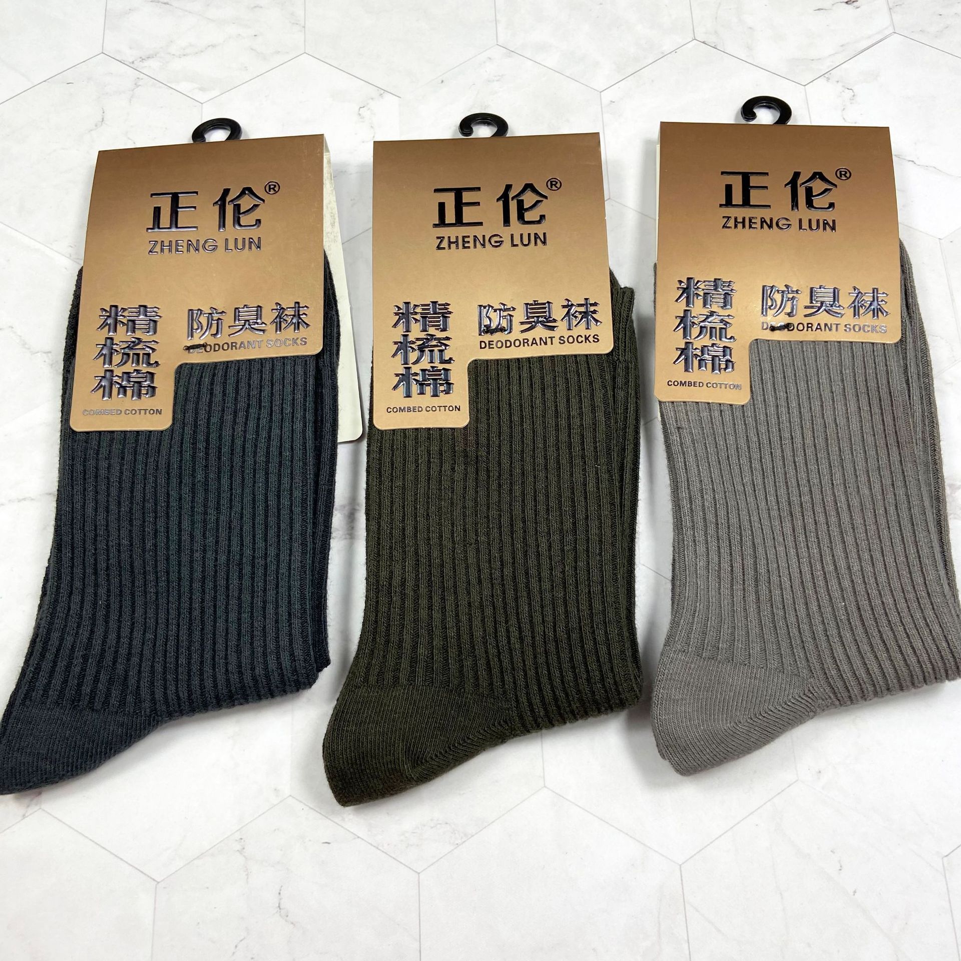 正伦双针袜子男士中筒休闲袜中筒秋冬吸汗防臭纯色加厚商务袜批发