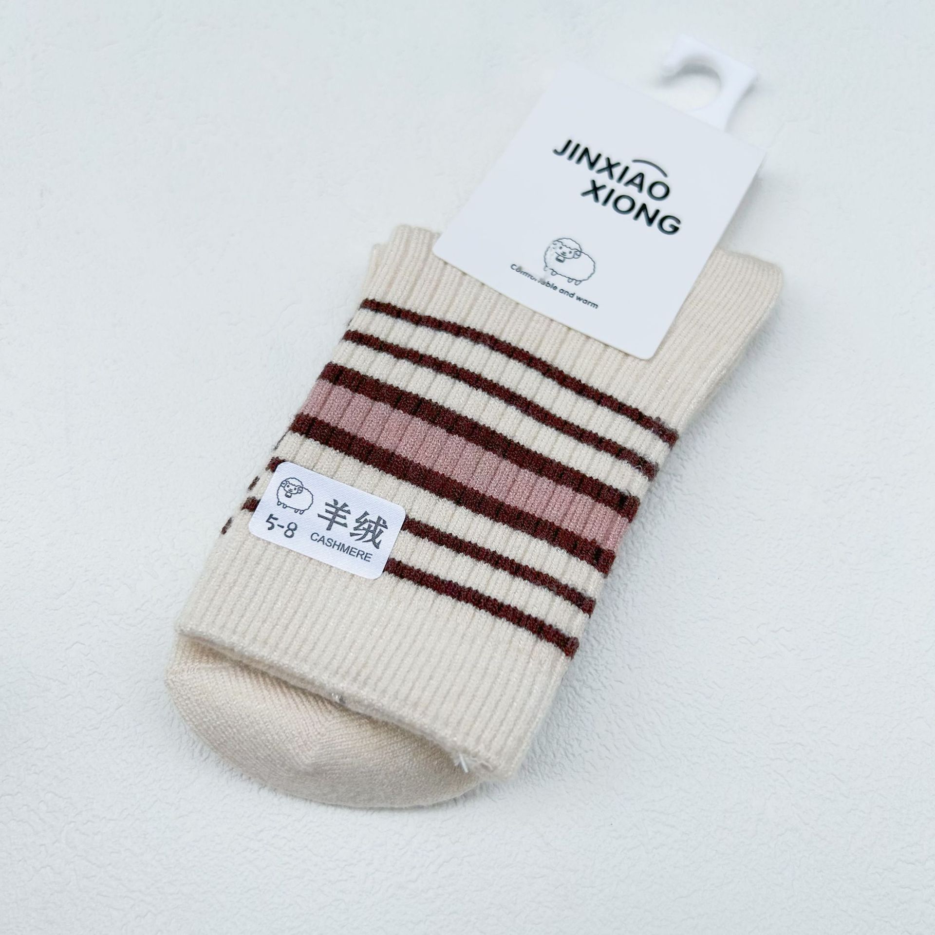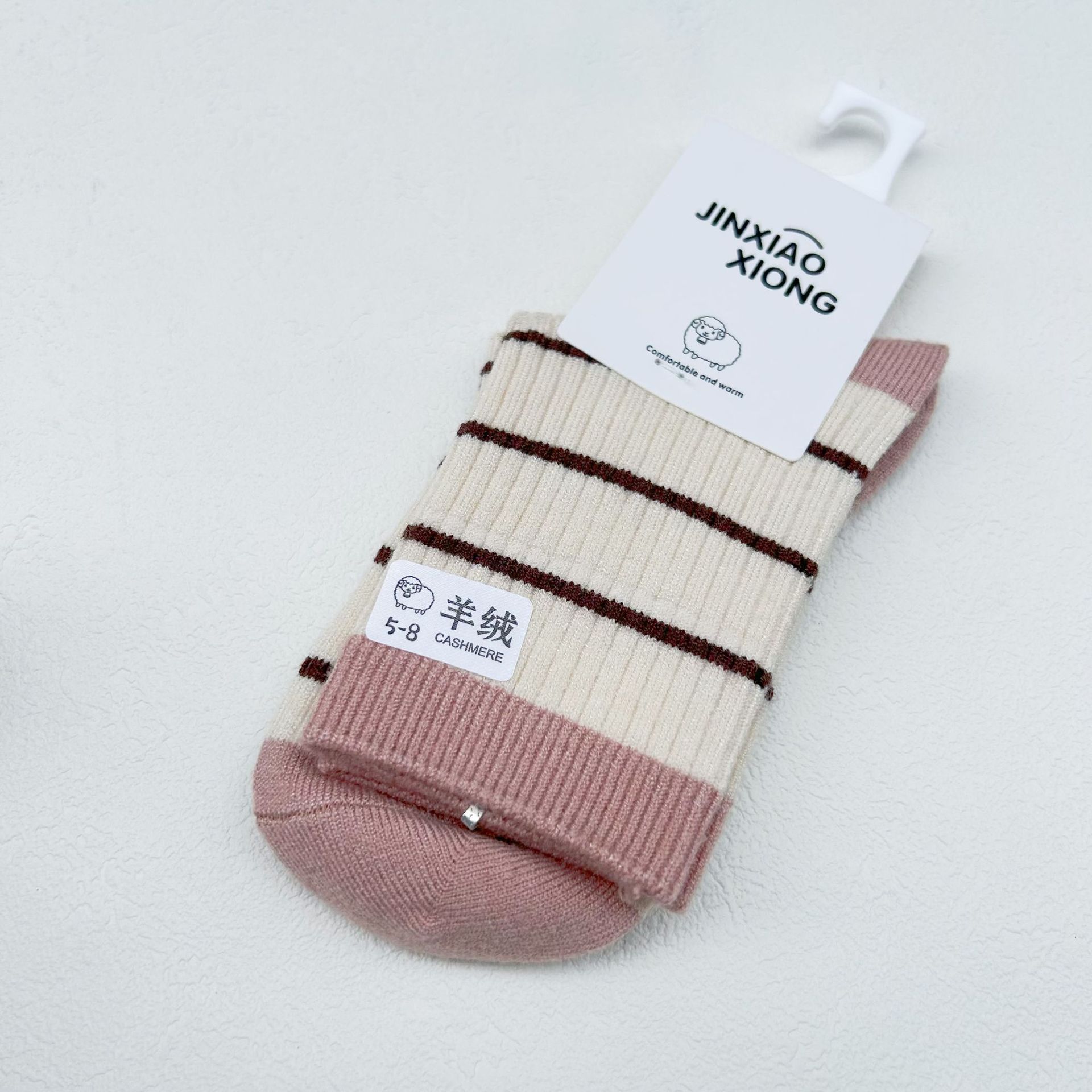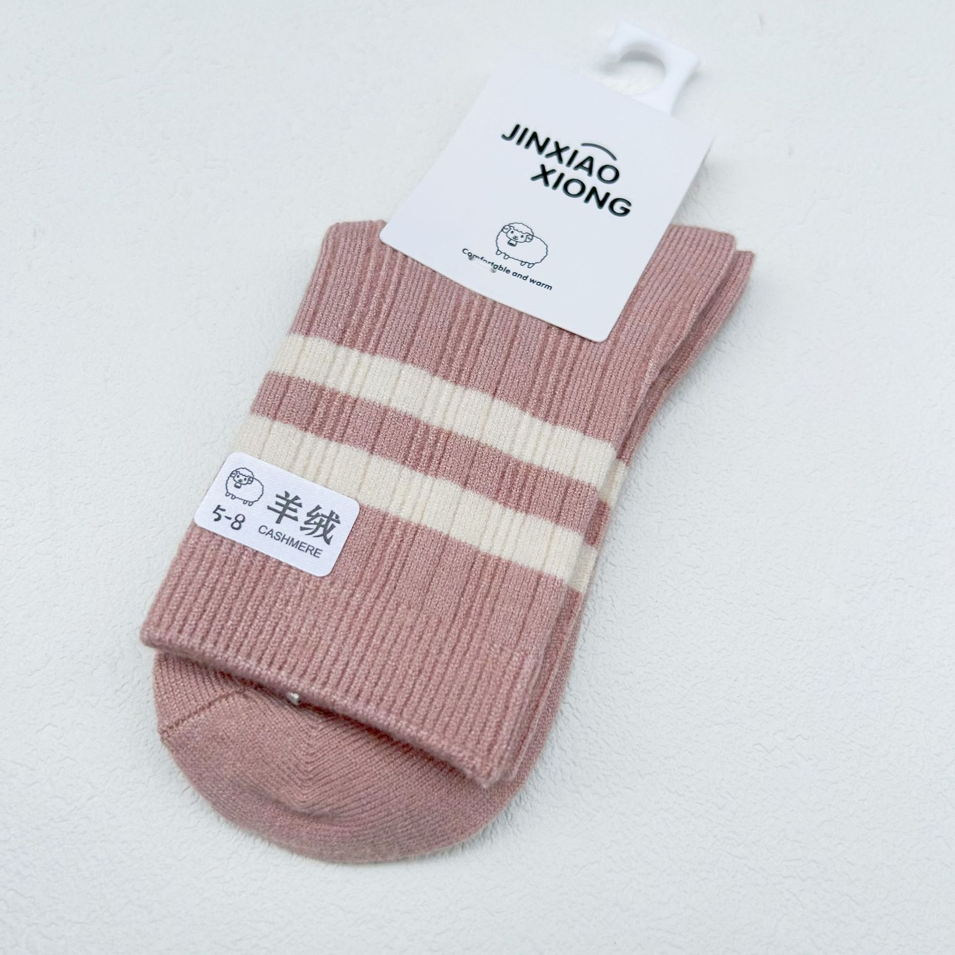 金小熊羊毛袜子秋冬中筒袜粉色系学院风条纹儿童学生袜冬天羊绒袜