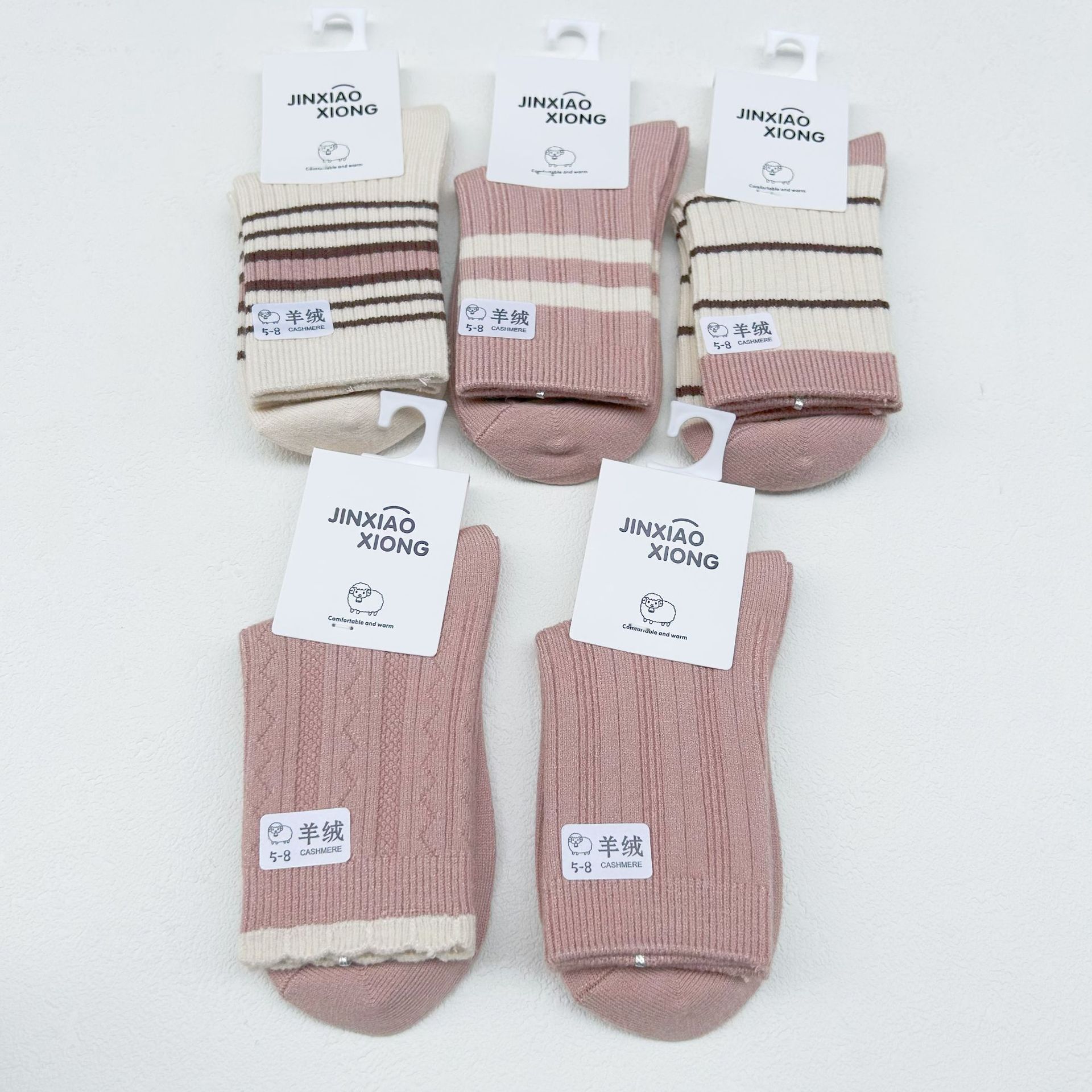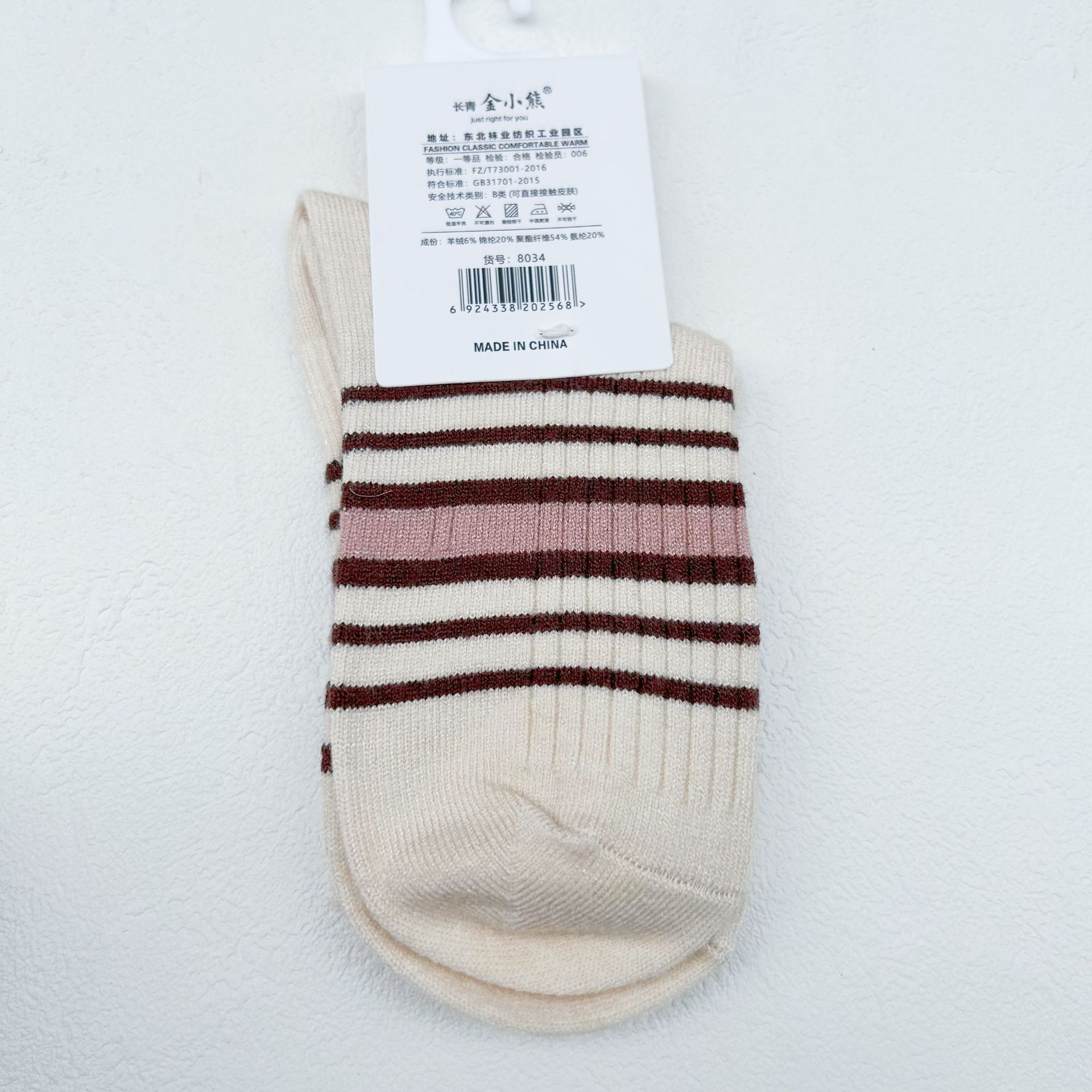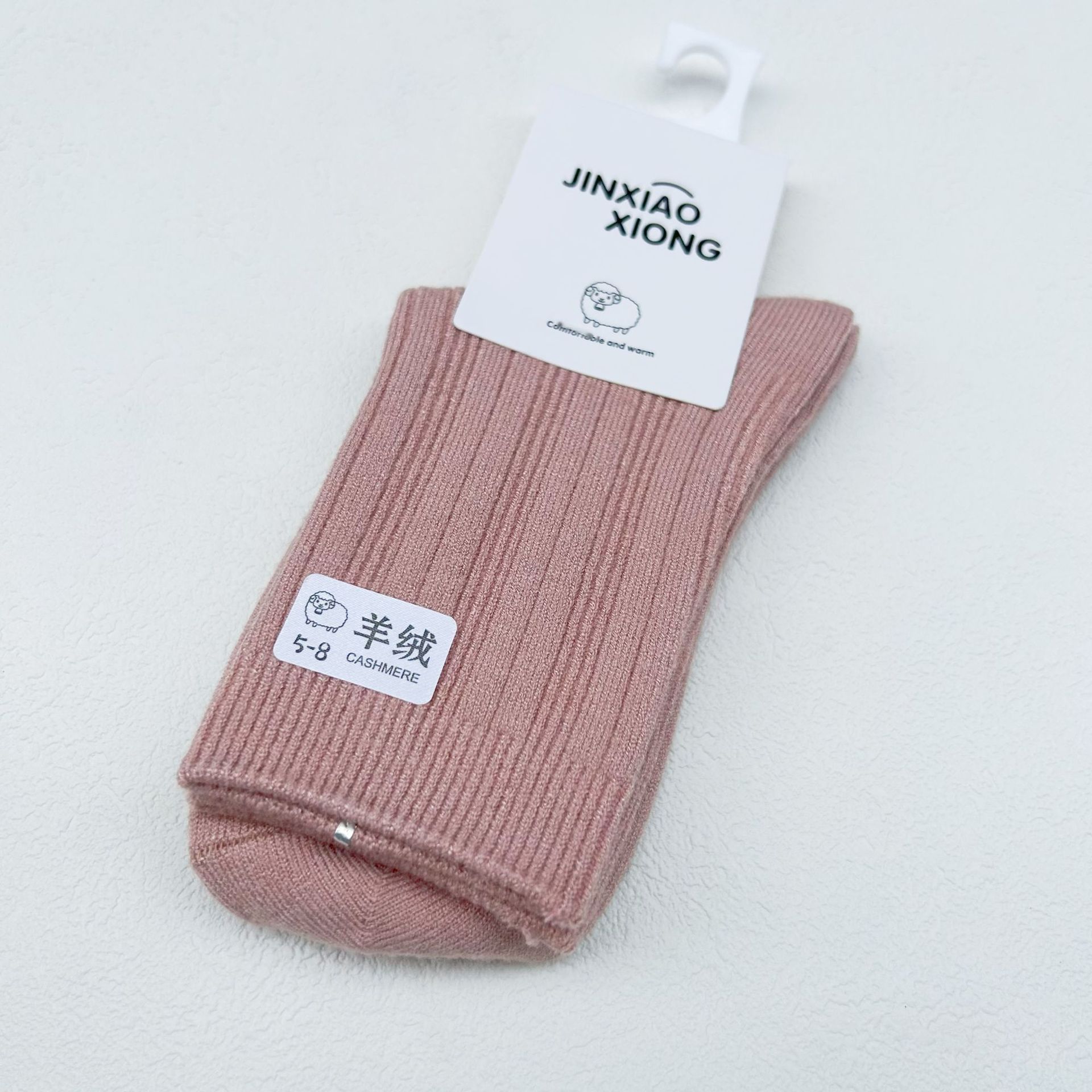 金小熊羊毛袜子秋冬中筒袜粉色系学院风条纹儿童学生袜冬天羊绒袜