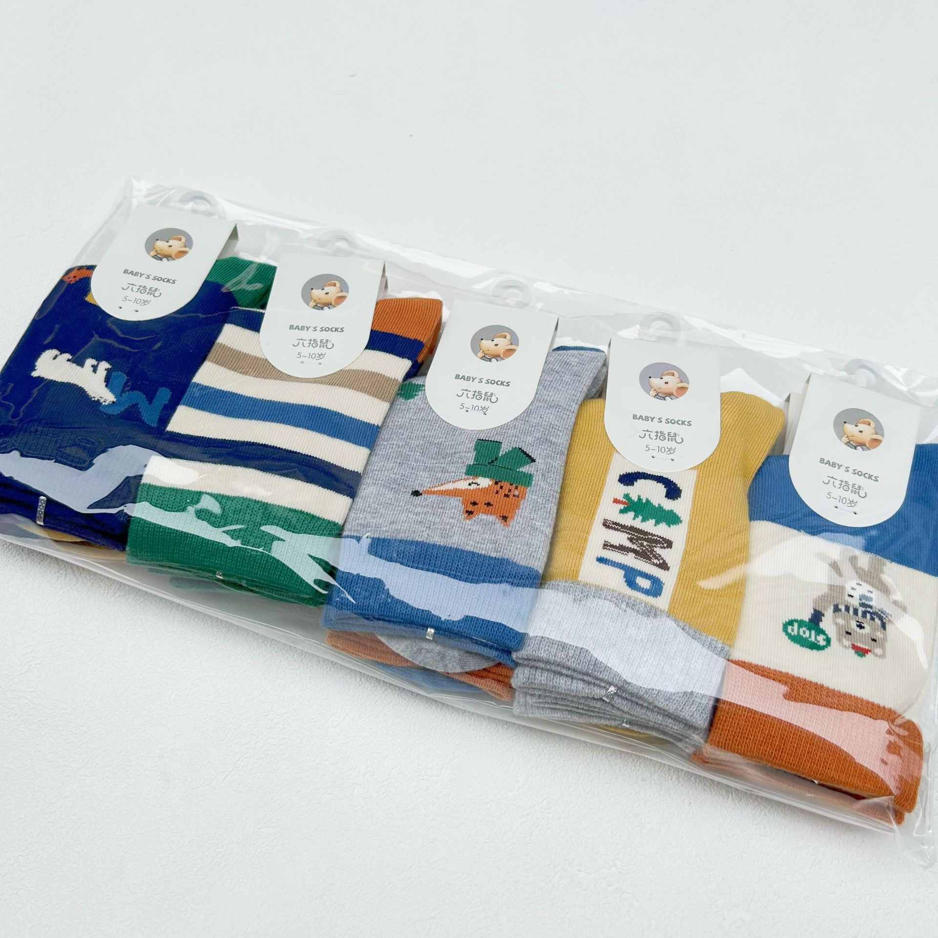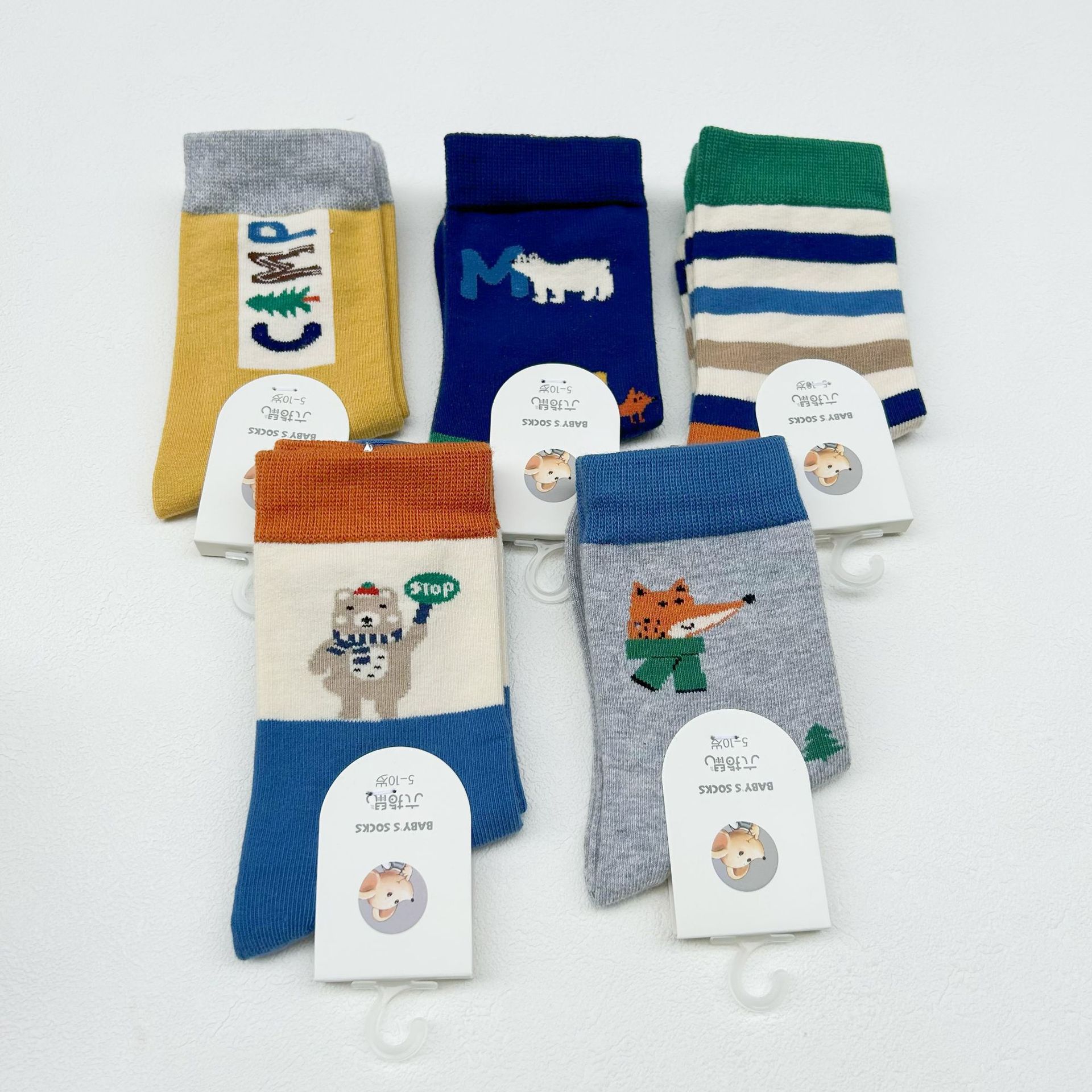 六指鼠2023新款男童袜子秋冬加厚卡通学生男潮流无骨长筒棉袜批发