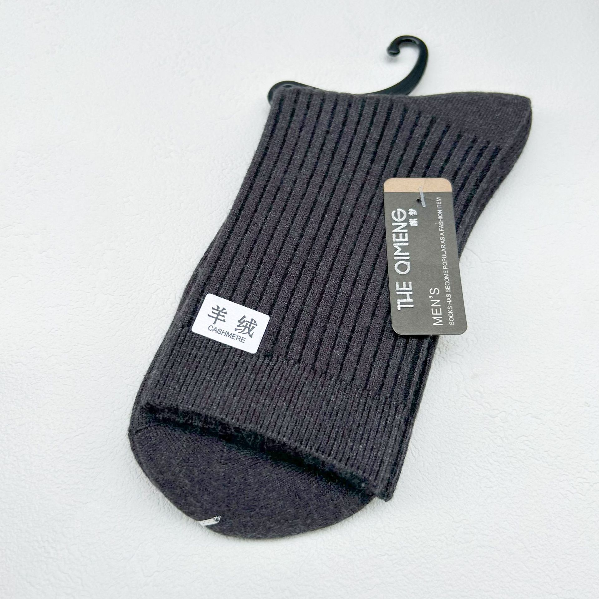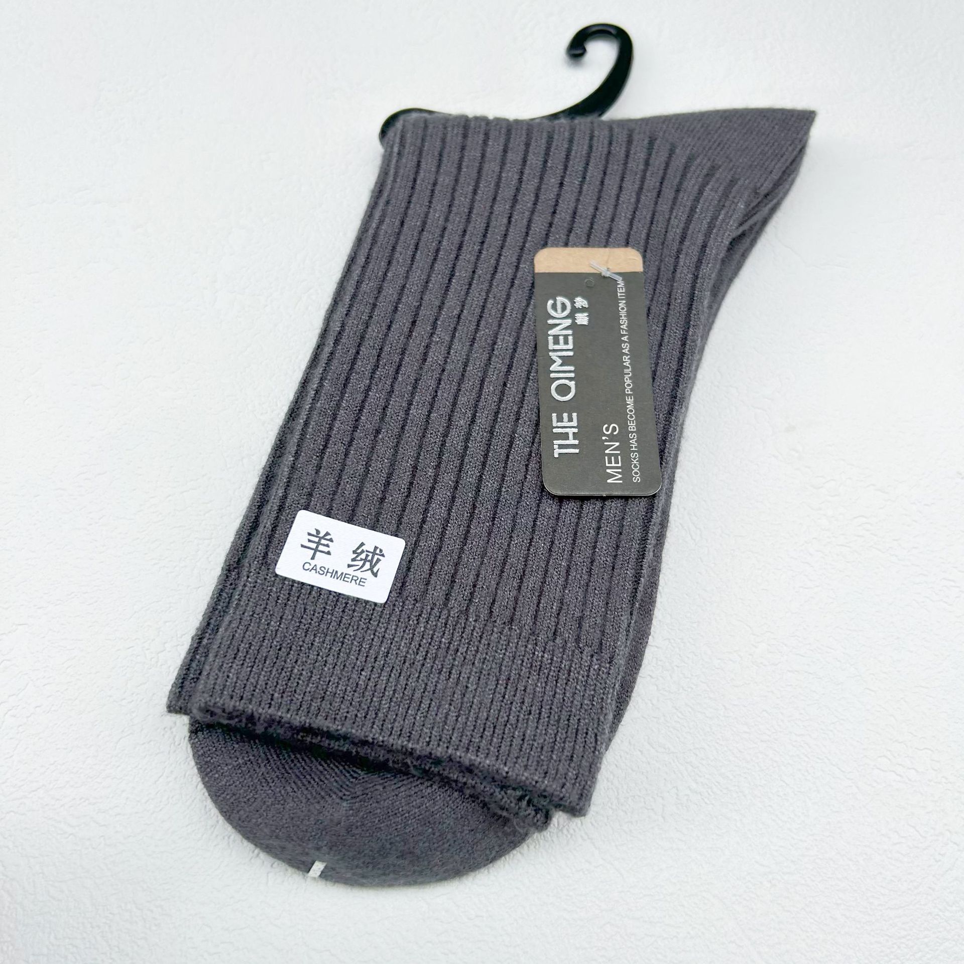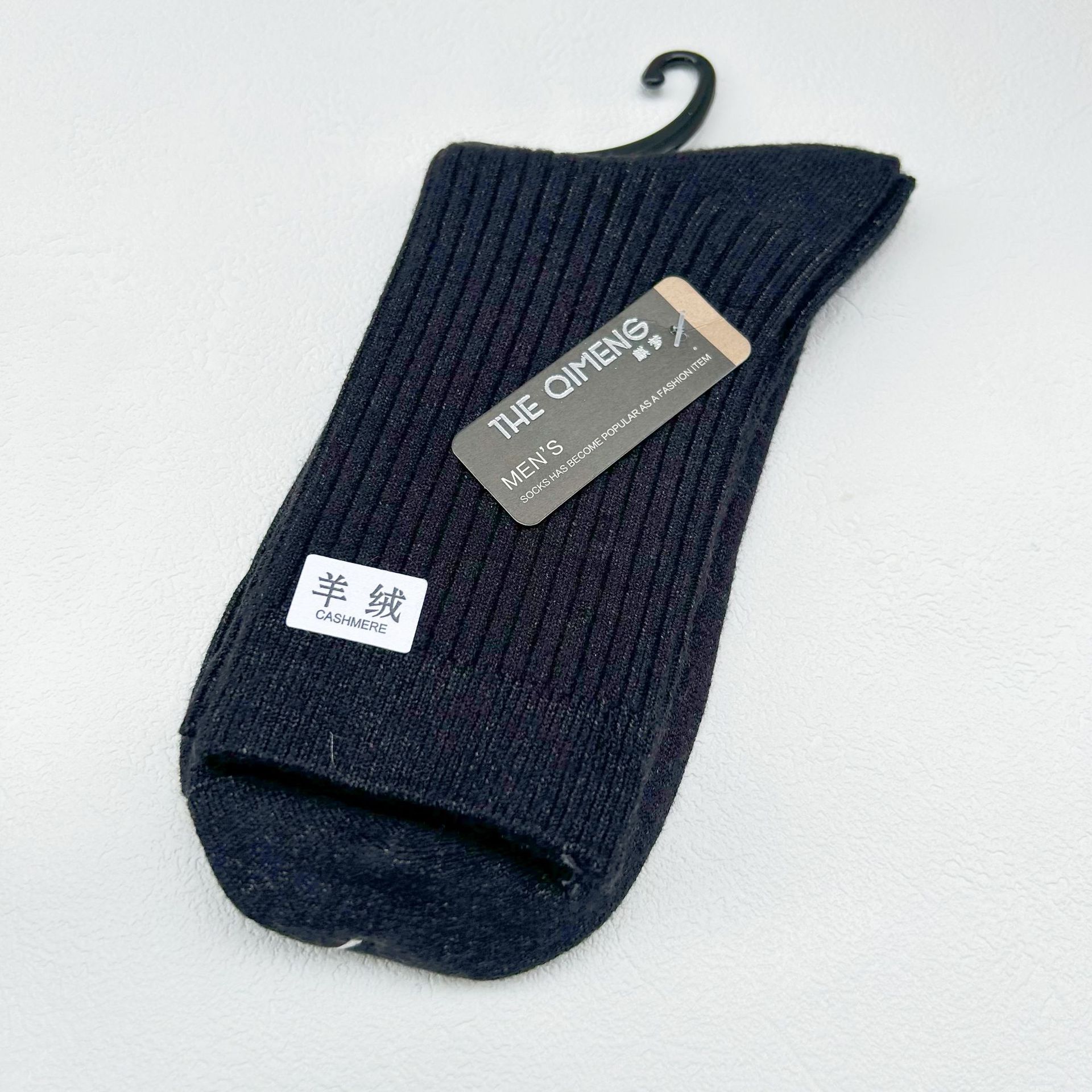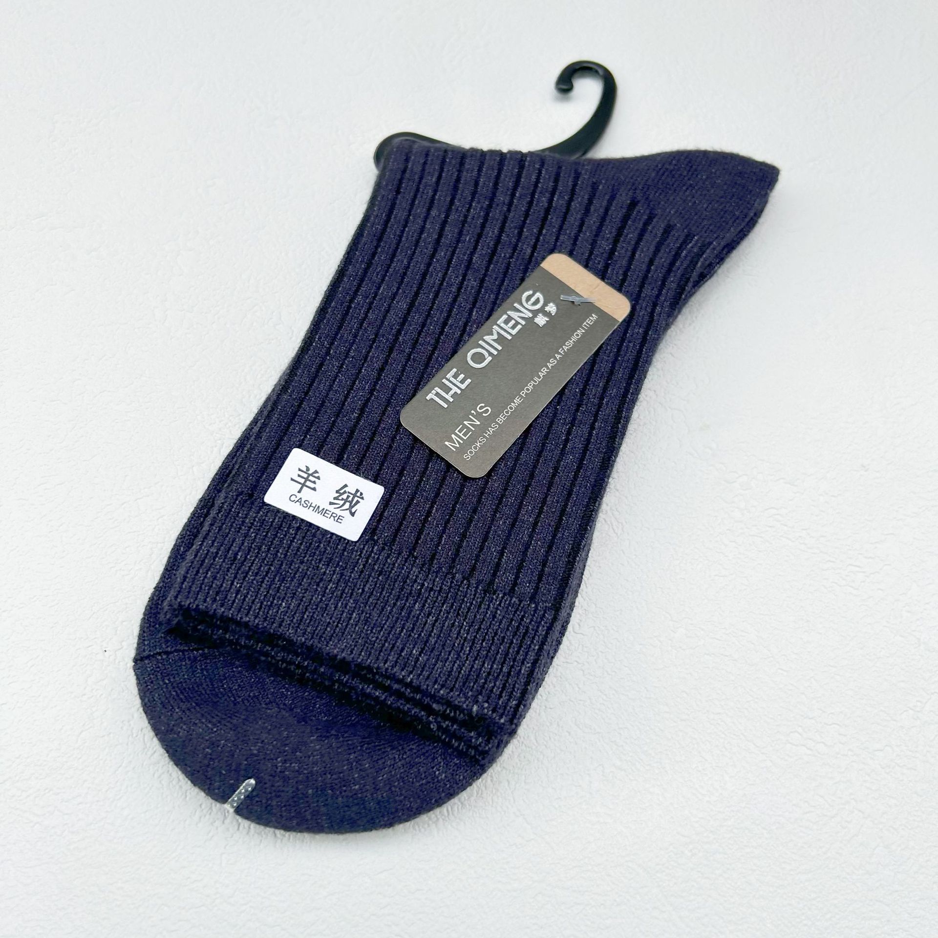 麒梦男士羊毛袜子男双针中筒袜纯色保暖长袜商务绅士黑色长筒袜男