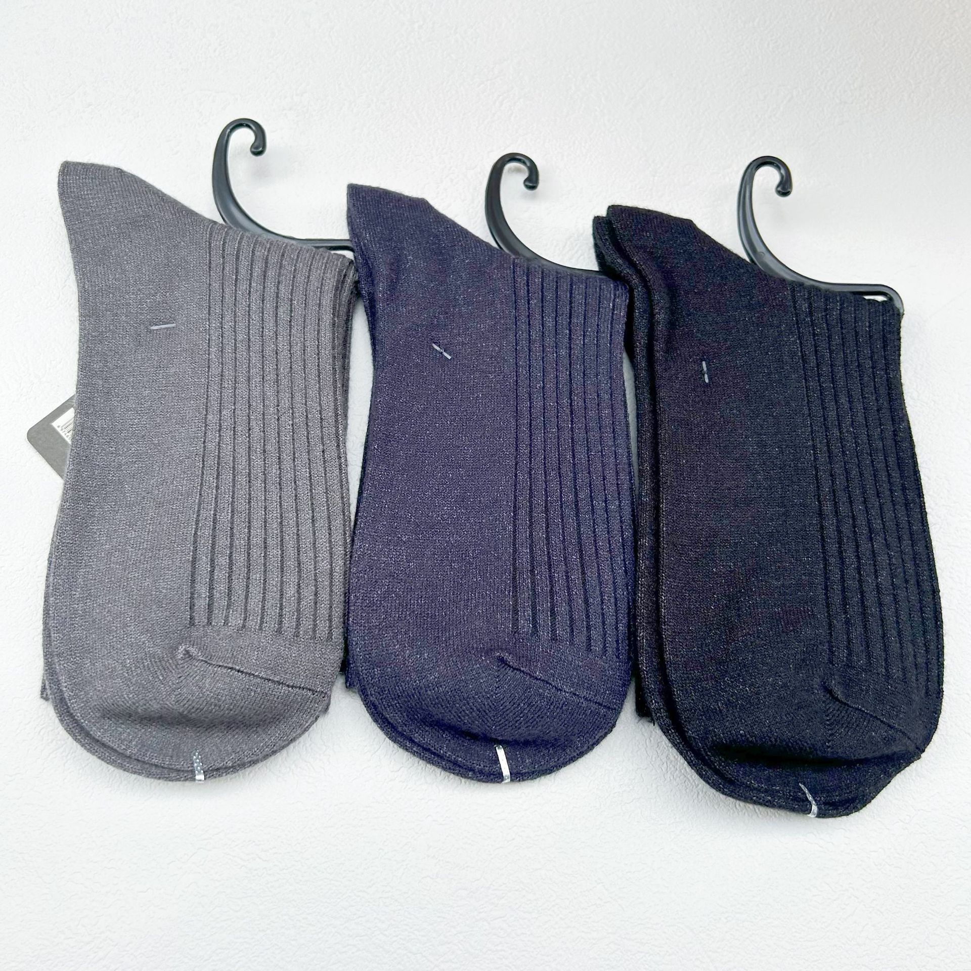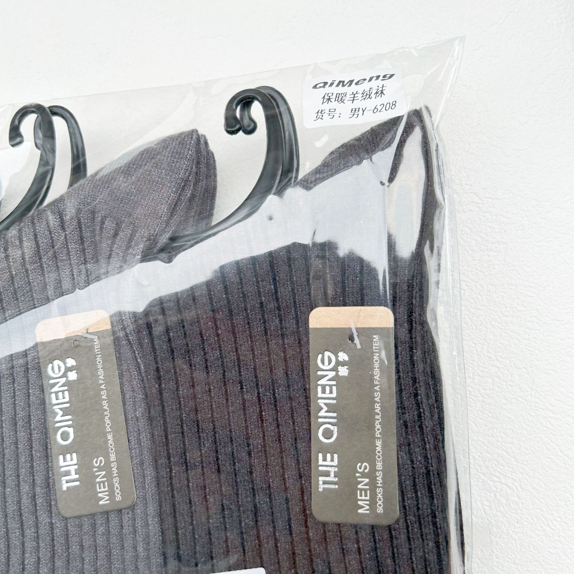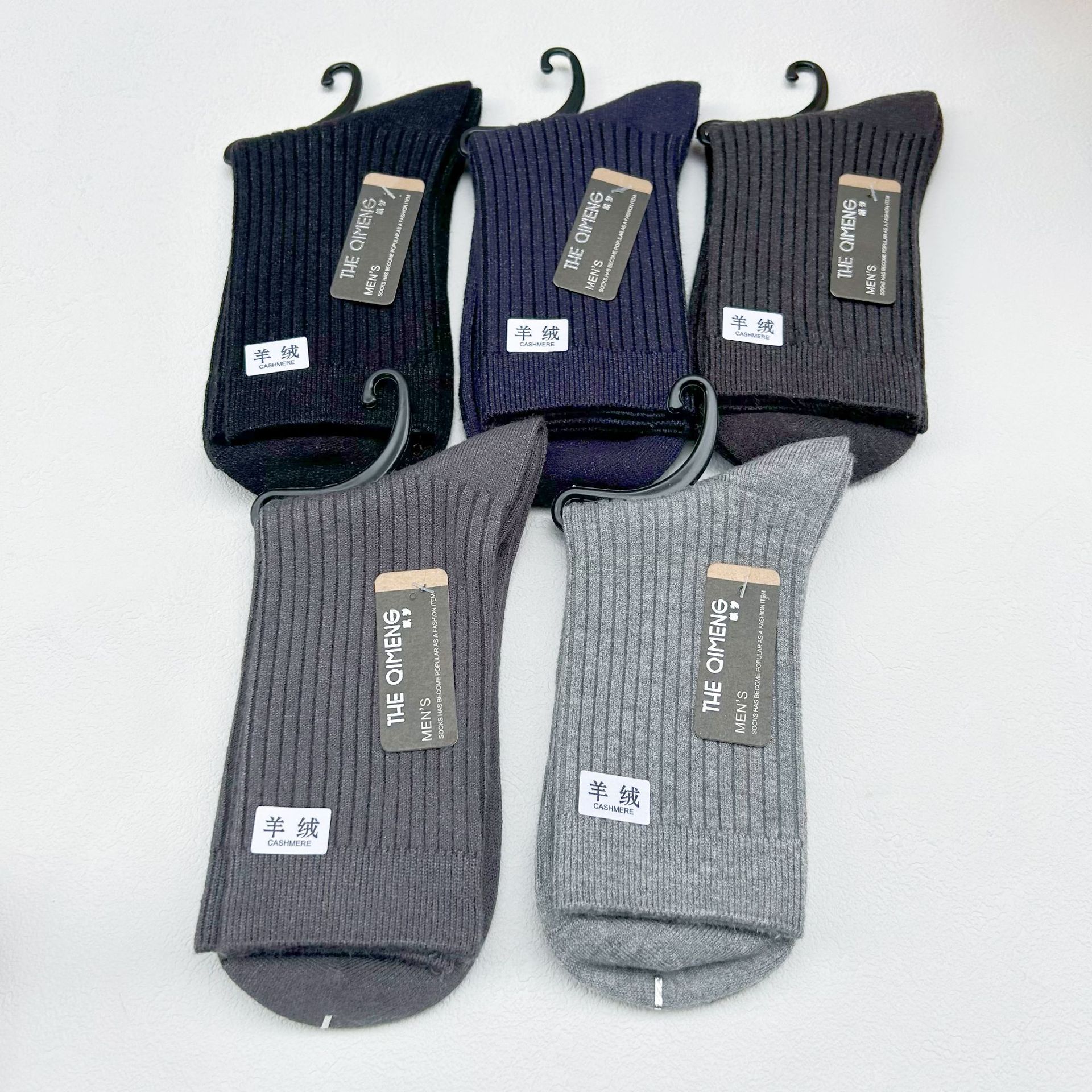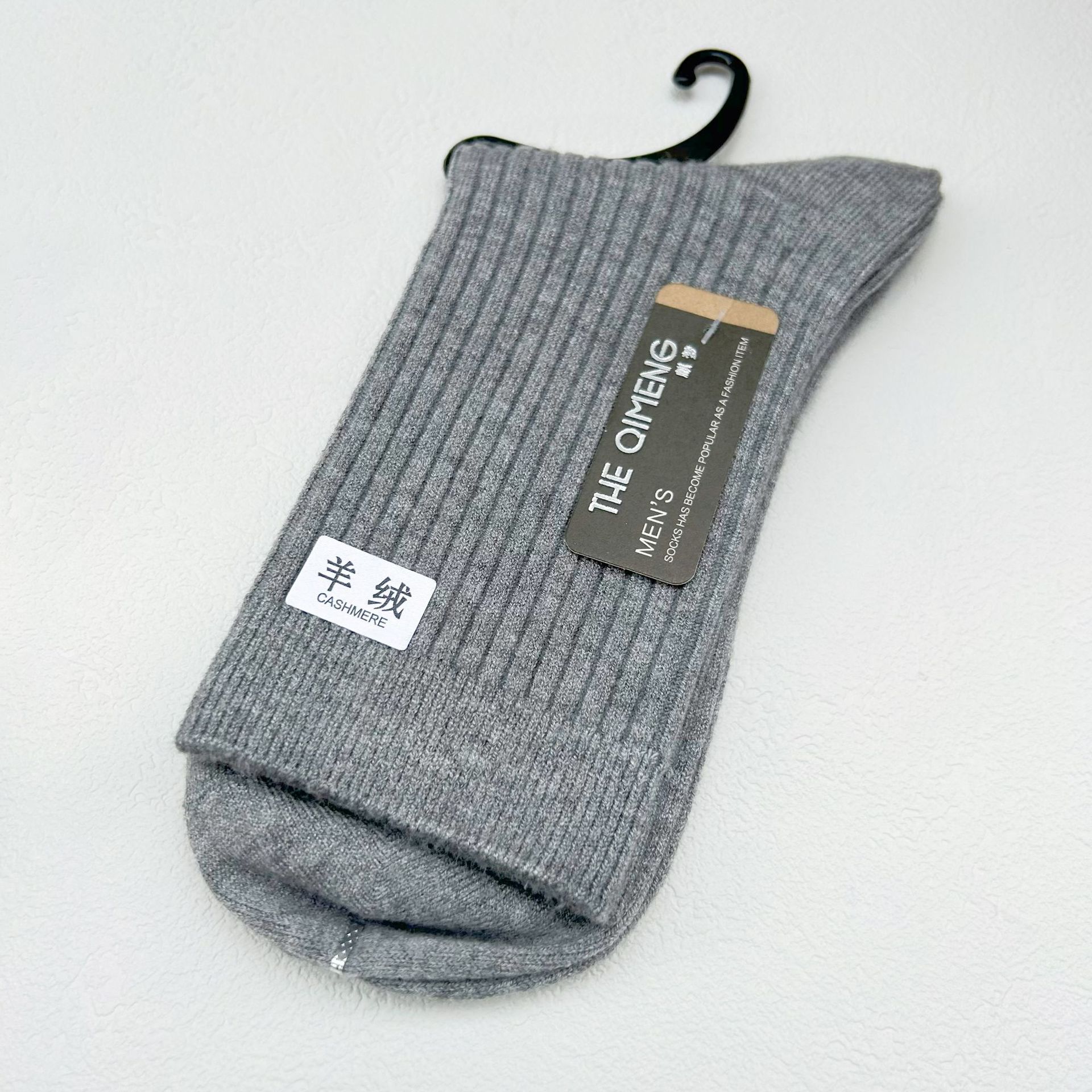 麒梦男士羊毛袜子男双针中筒袜纯色保暖长袜商务绅士黑色长筒袜男