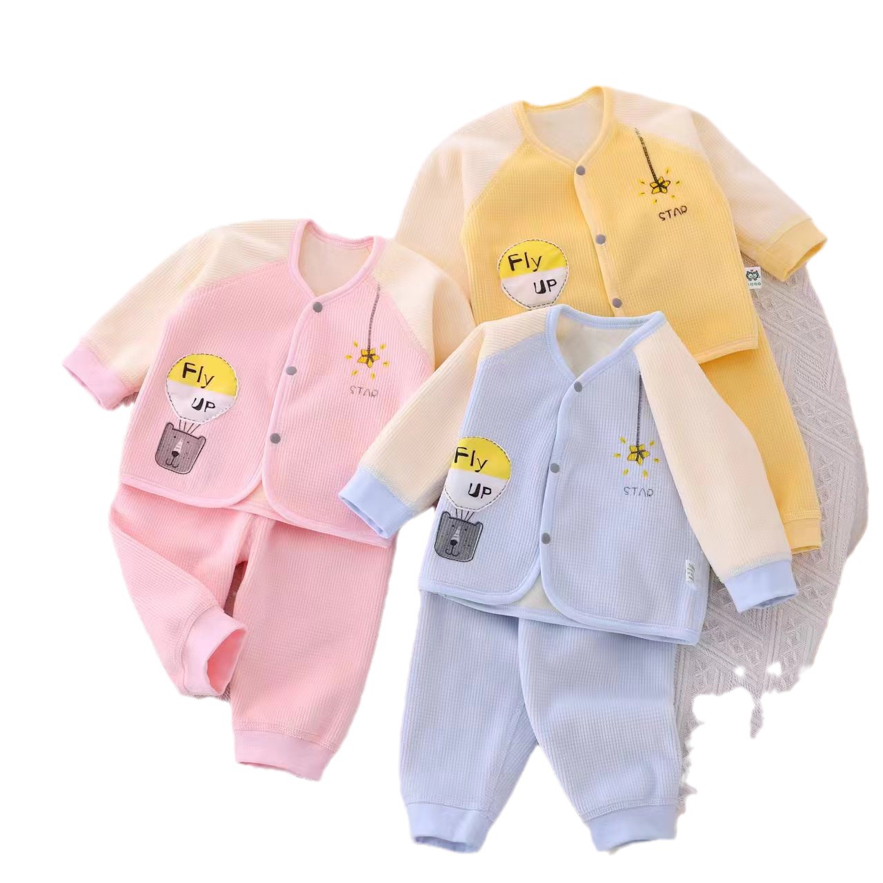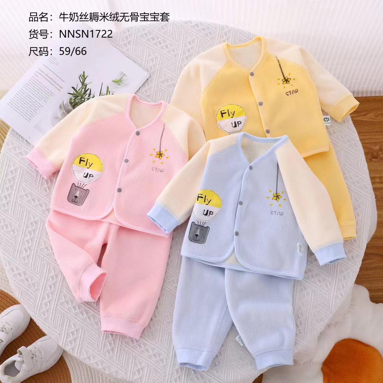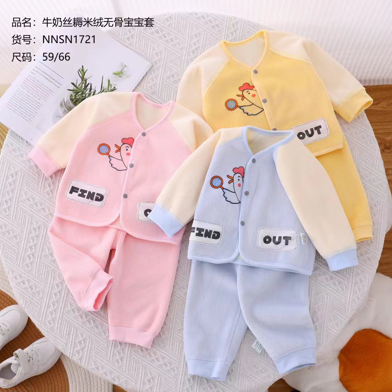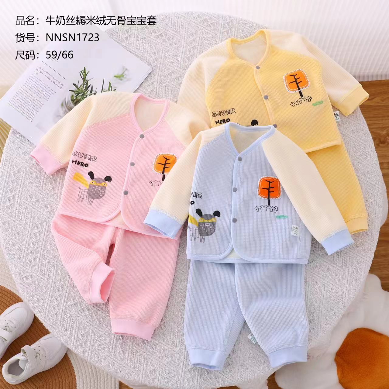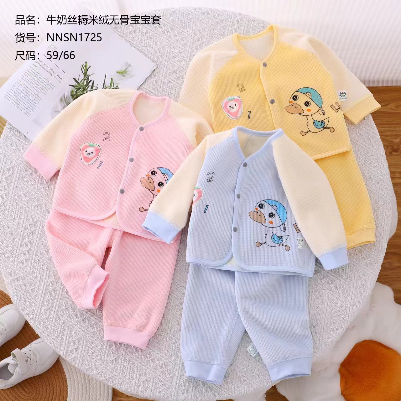 春秋新生婴儿衣服牛奶丝糯米绒无骨宝宝套儿童男女卡通两件套装