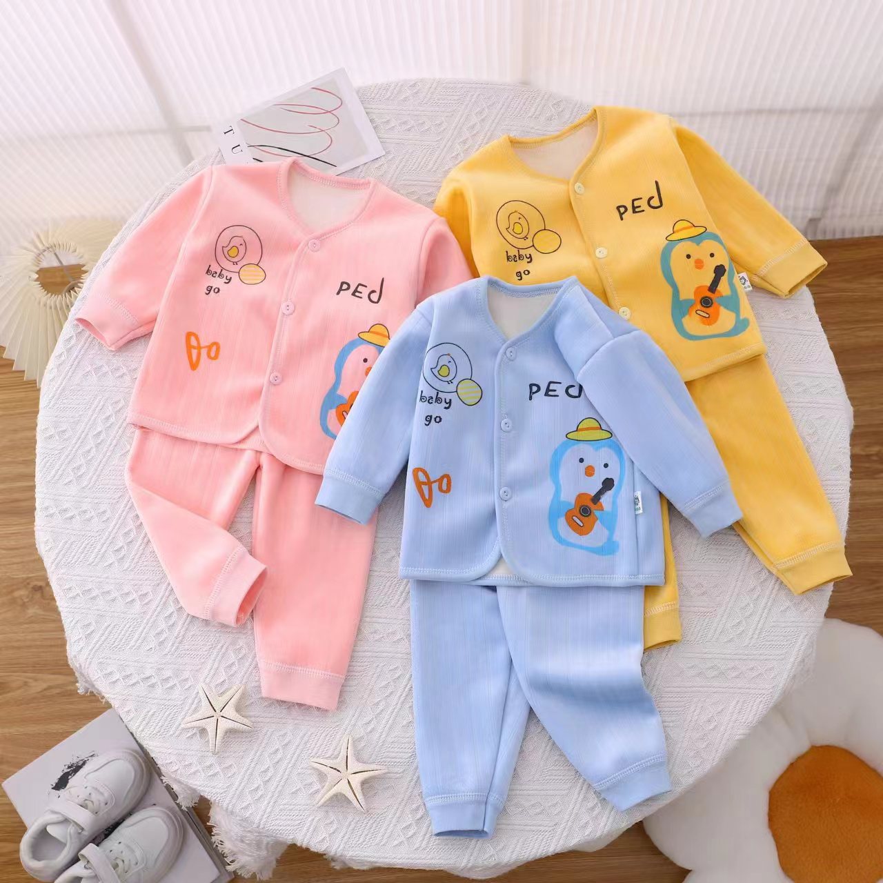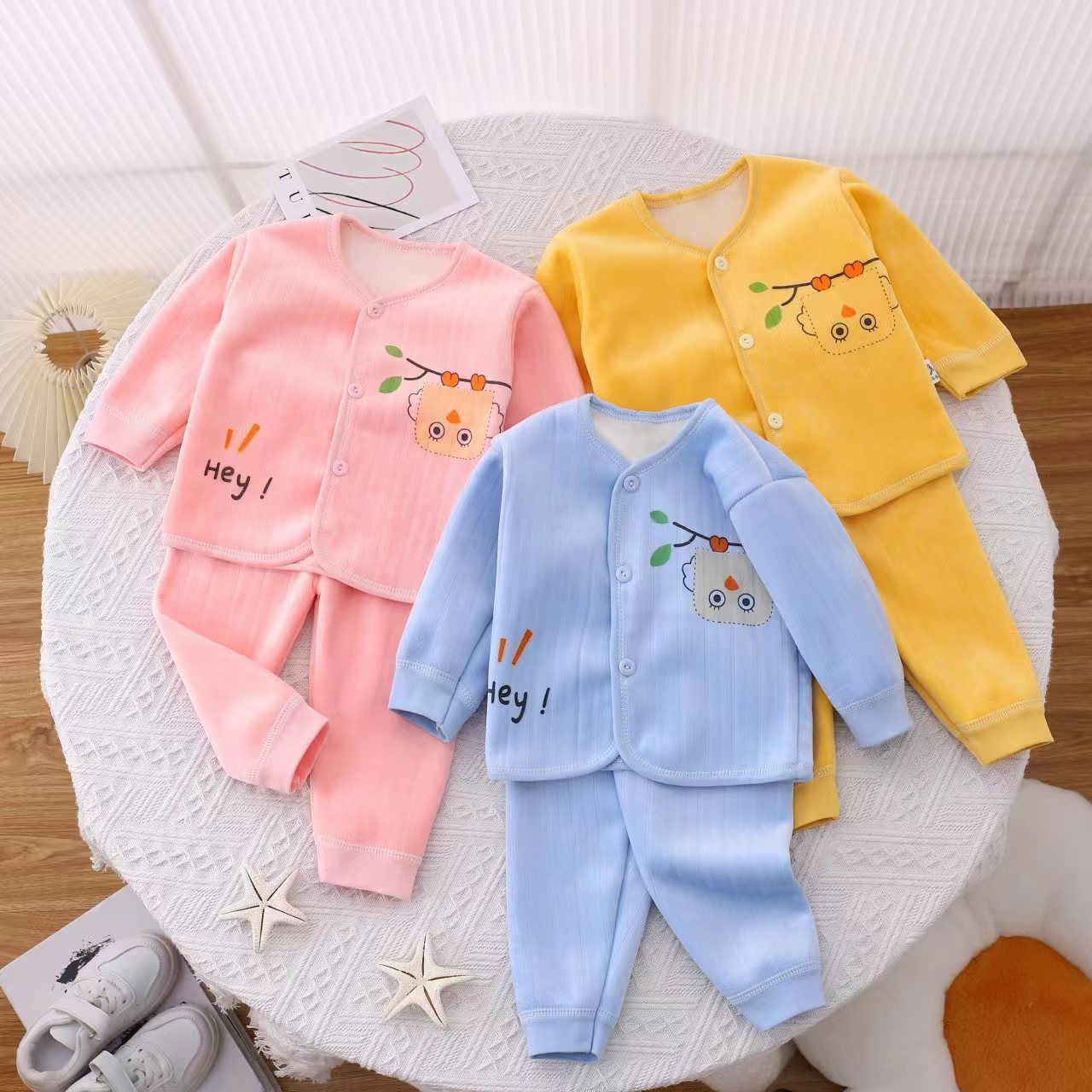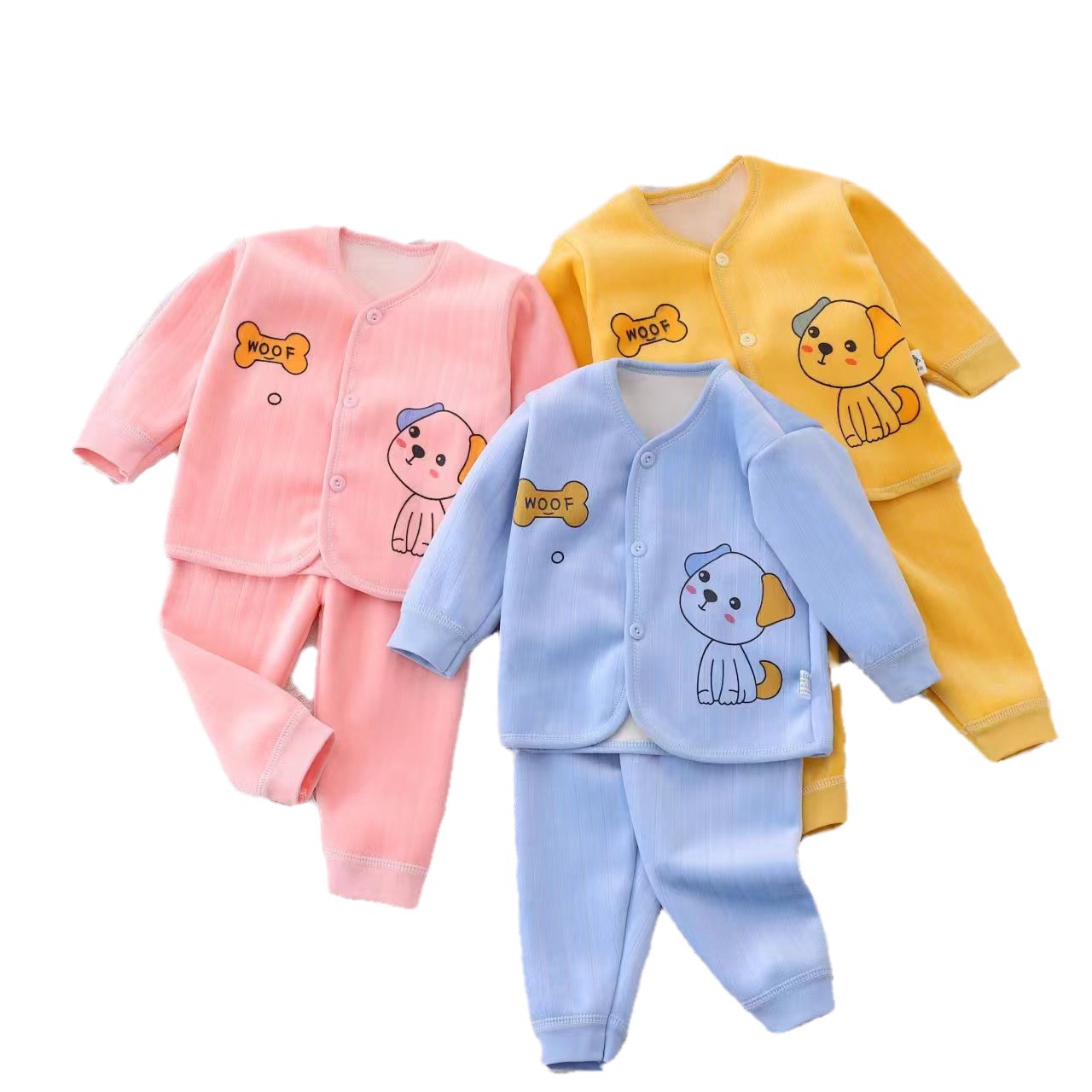 新款婴幼儿雪芙蓉加绒圆领两件套舒适保暖男女宝宝套装婴儿衣服
