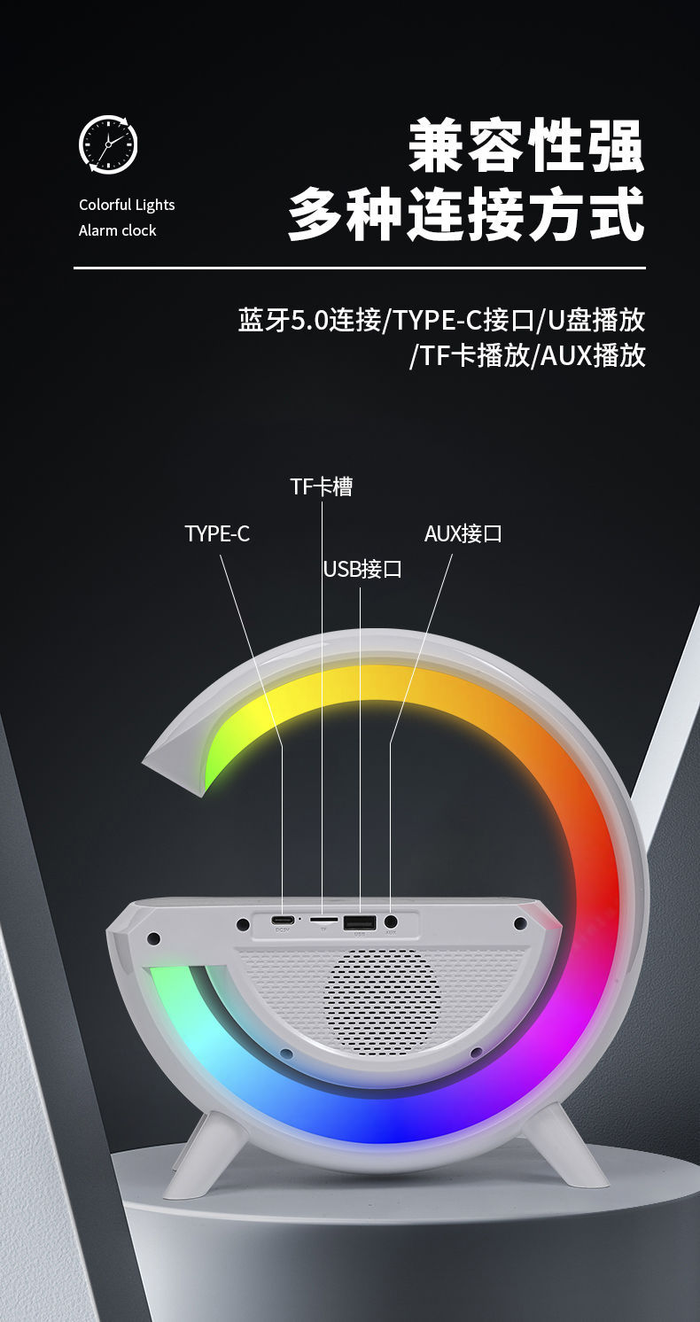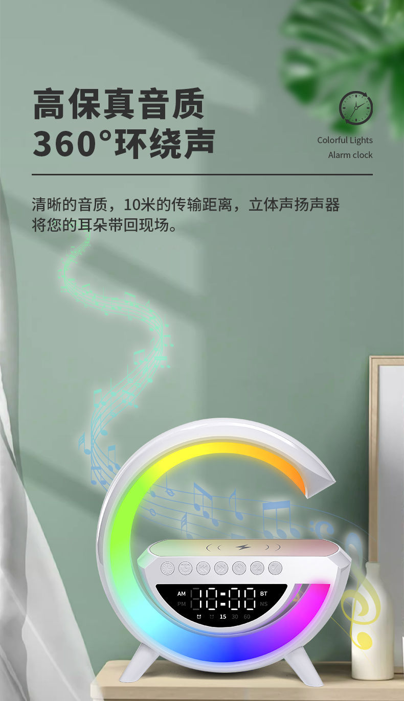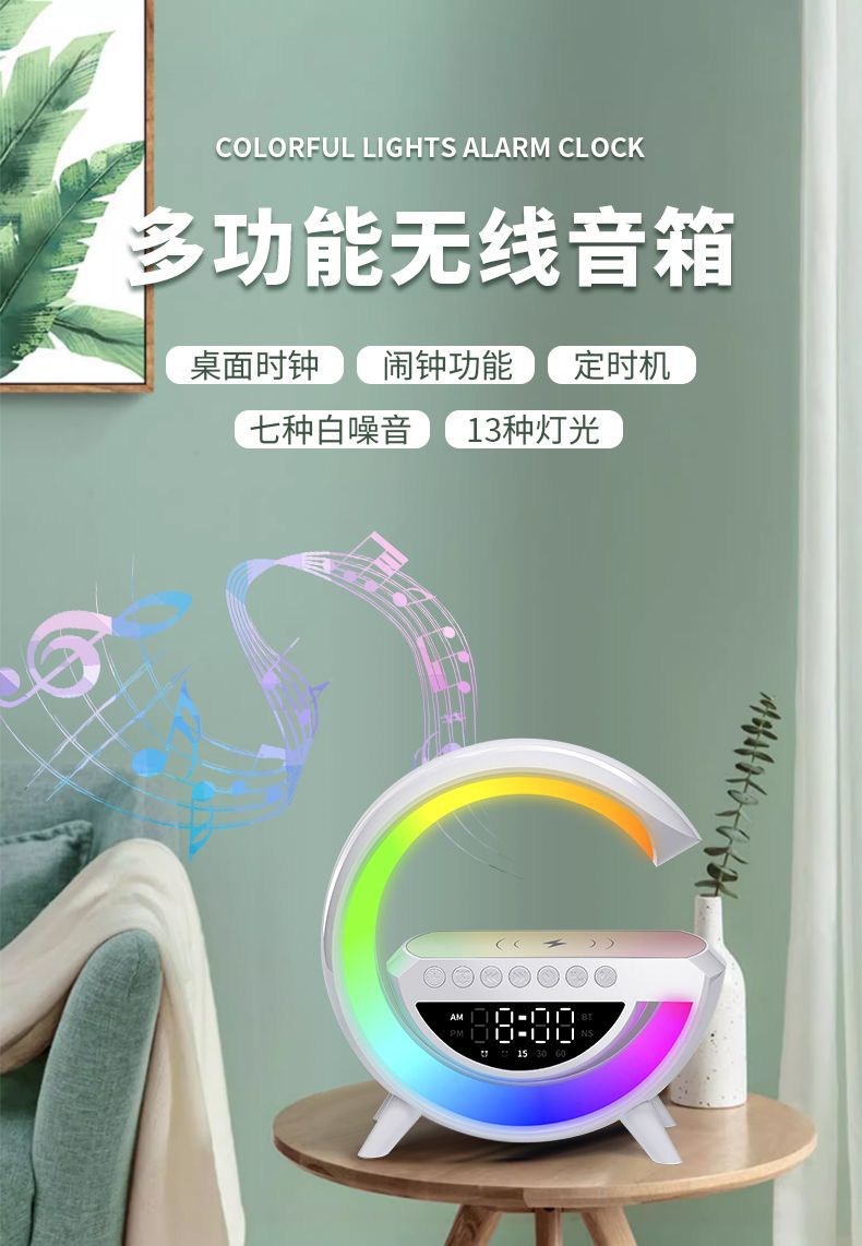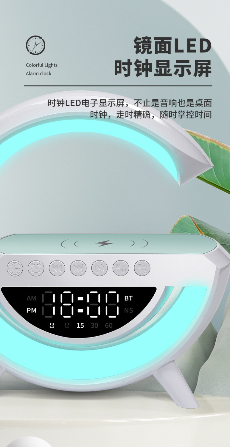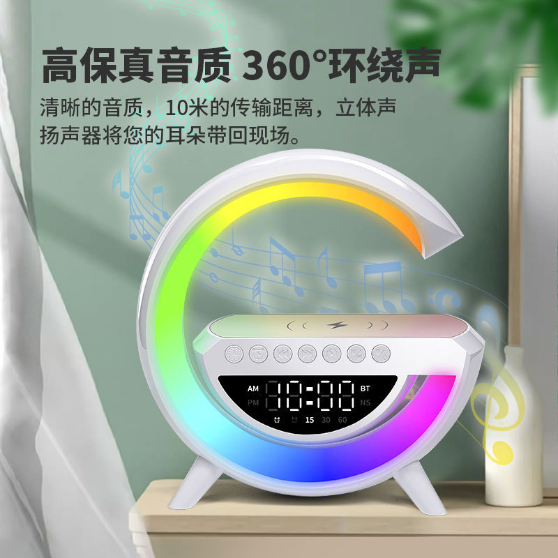 大G蓝牙音响无线充电三合一时钟智能高颜值氛围灯礼物多功能闹钟