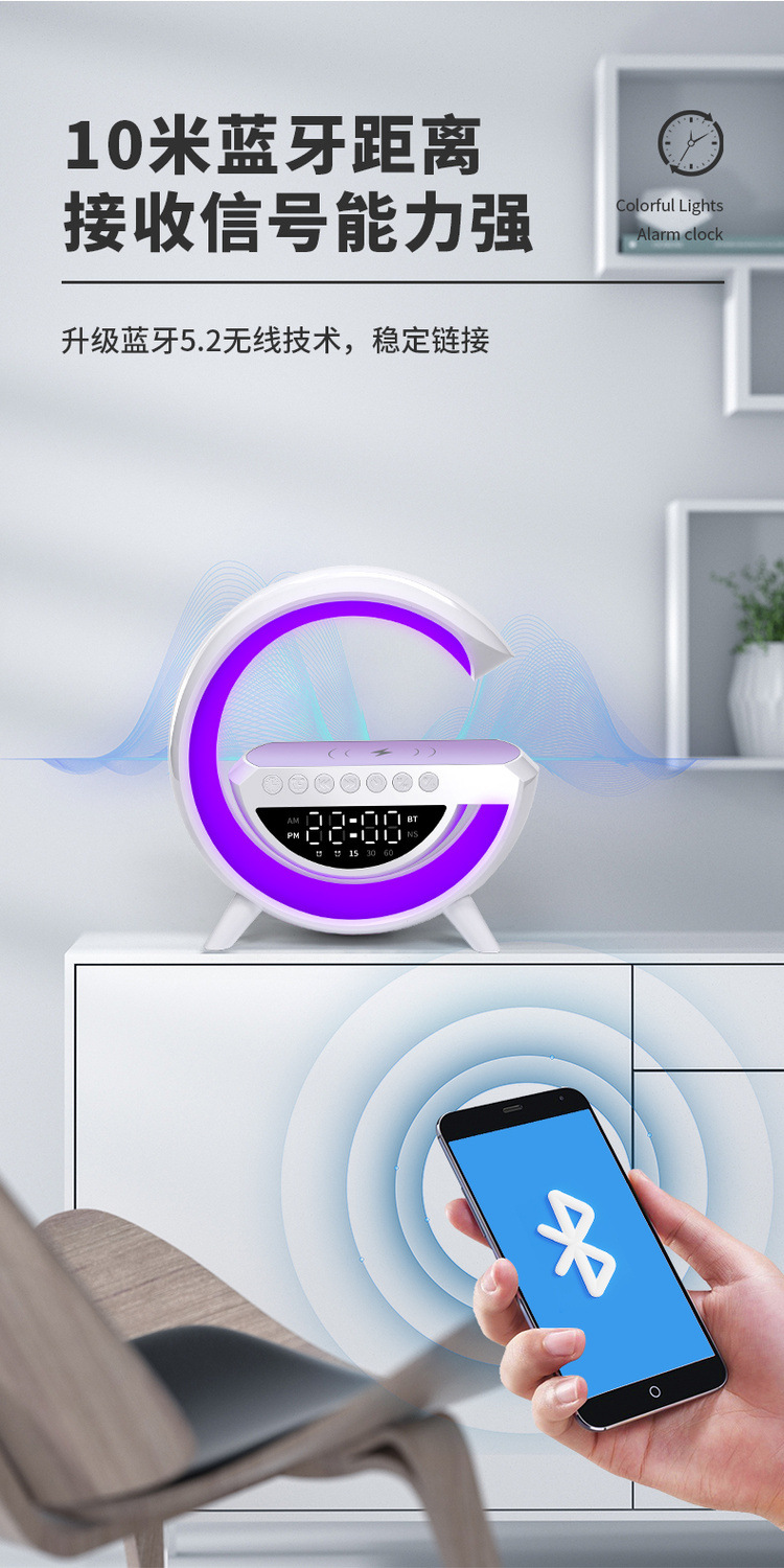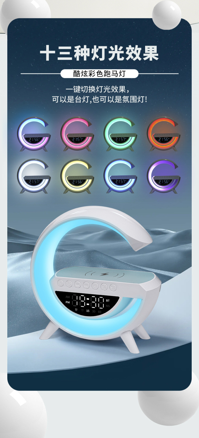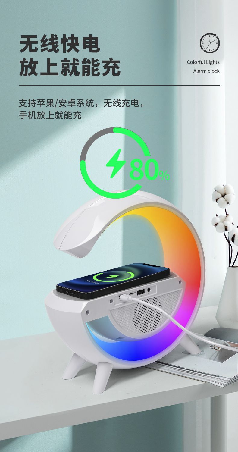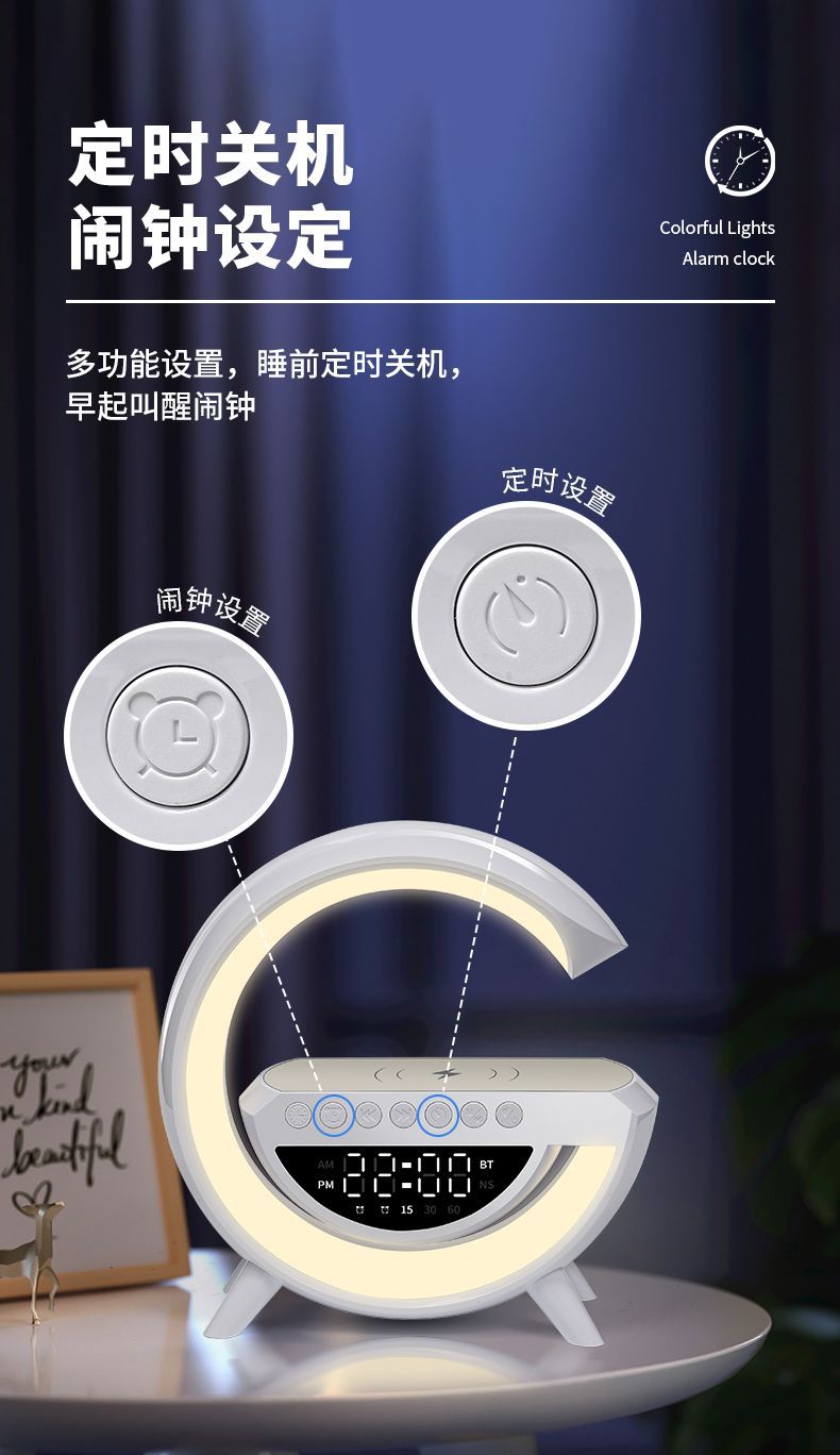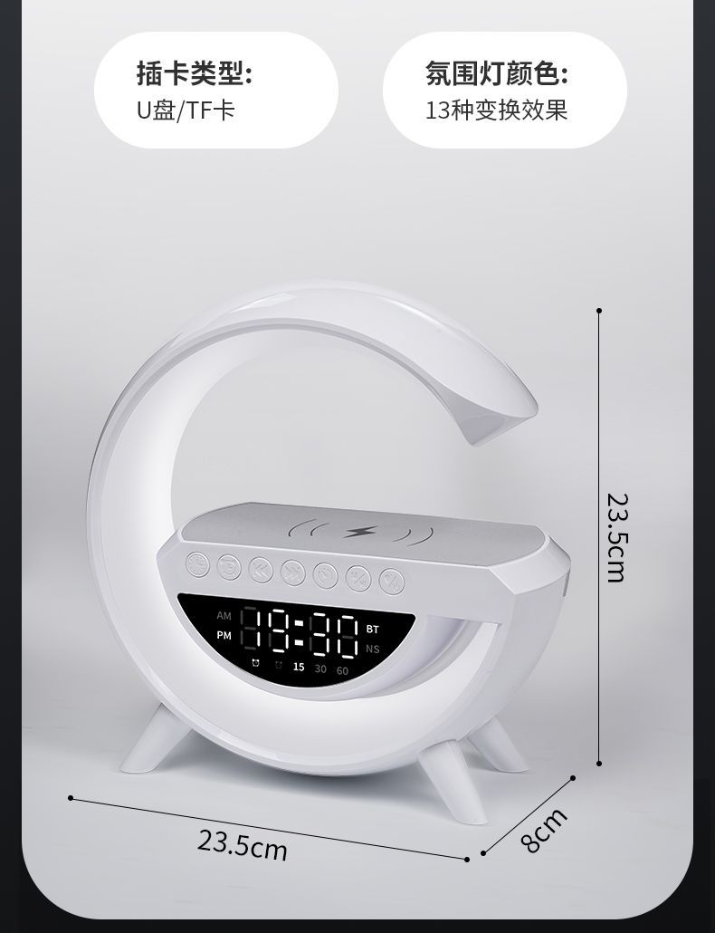 大G蓝牙音响无线充电三合一时钟智能高颜值氛围灯礼物多功能闹钟