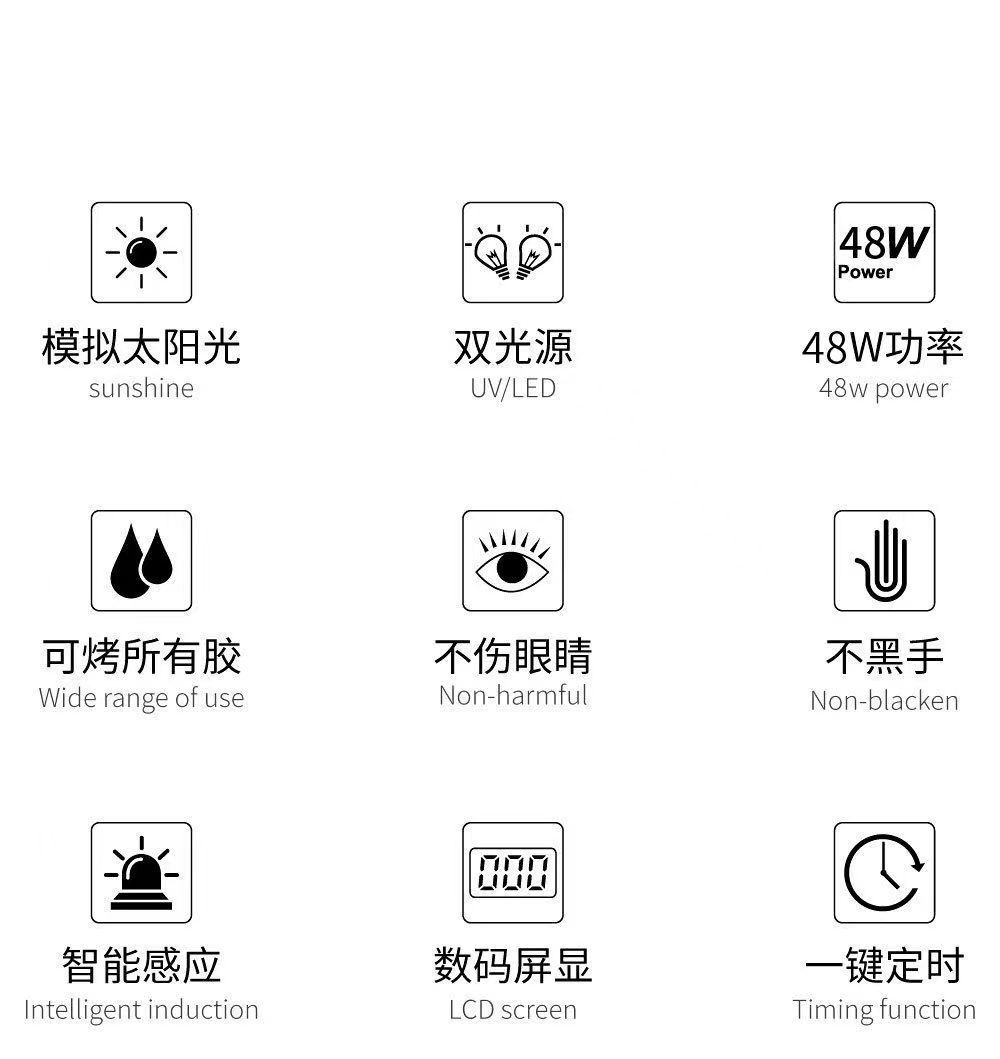 SUN-1SPro美甲光疗机48W双光源甲油胶烤灯UV/LED不黑手感应美甲灯