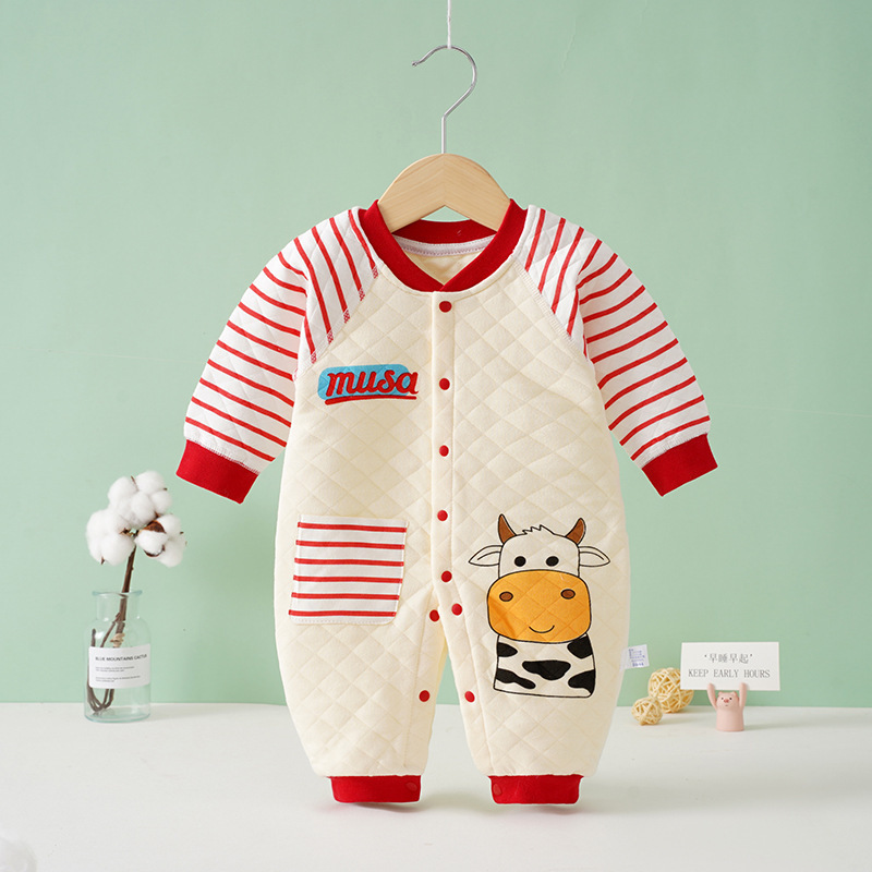 新生婴儿衣服冬装春秋宝宝加厚连体衣夹棉保暖哈衣宝宝秋冬季爬服
