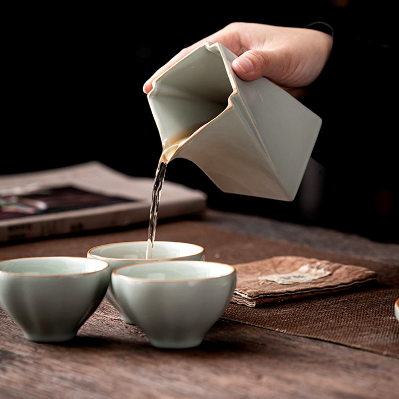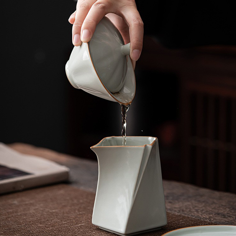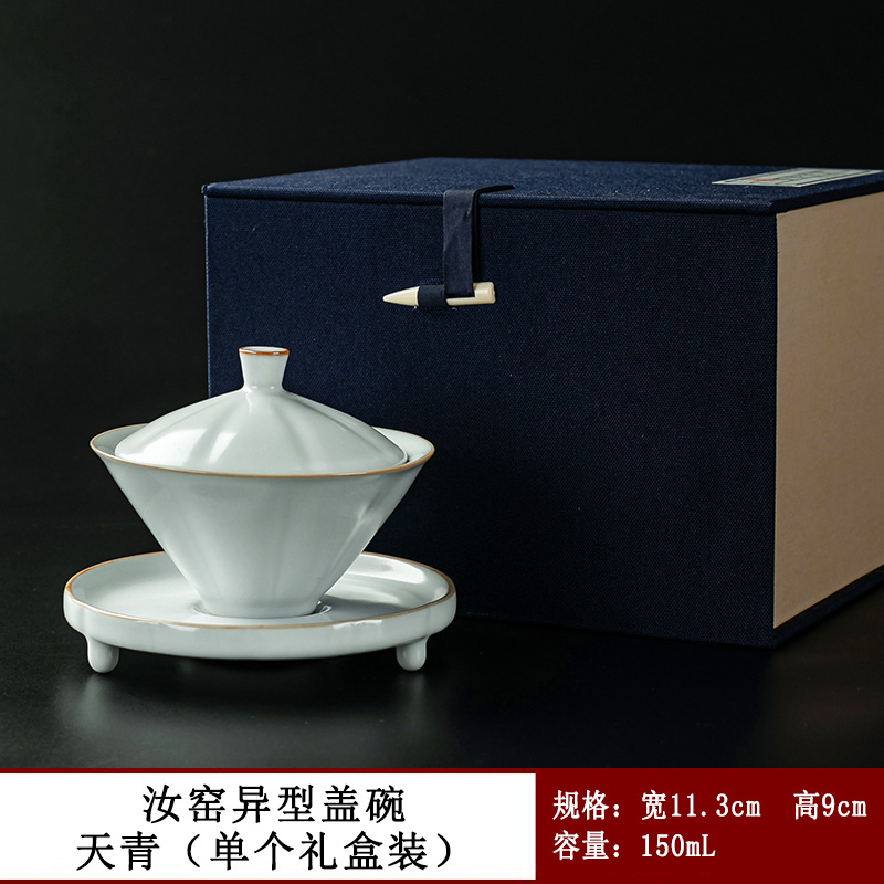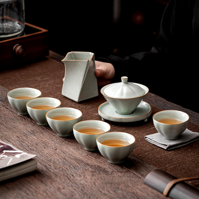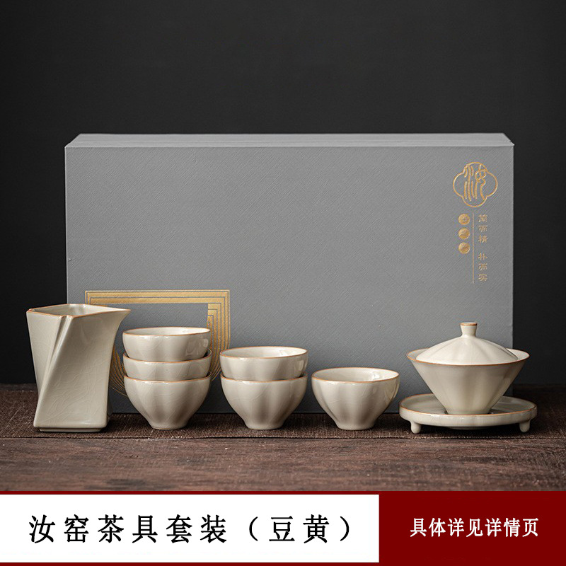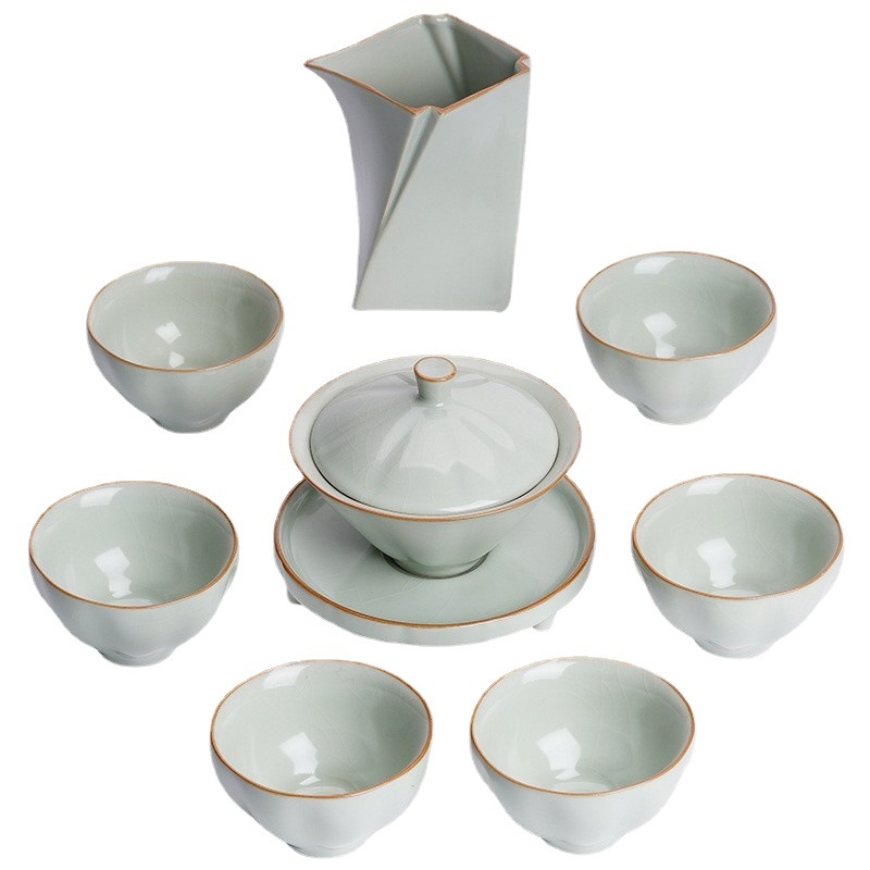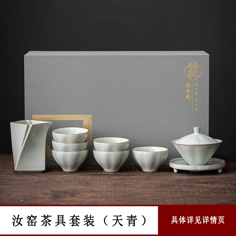 汝瓷茶具套装开片简约大气盖碗套组家用送礼茶杯泡茶套装厂家直销