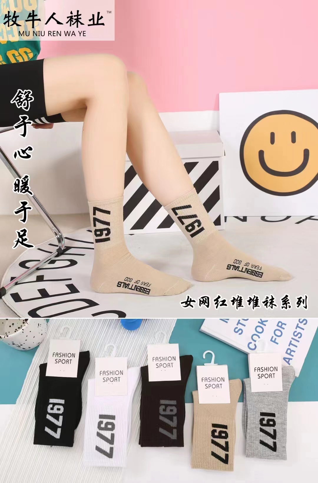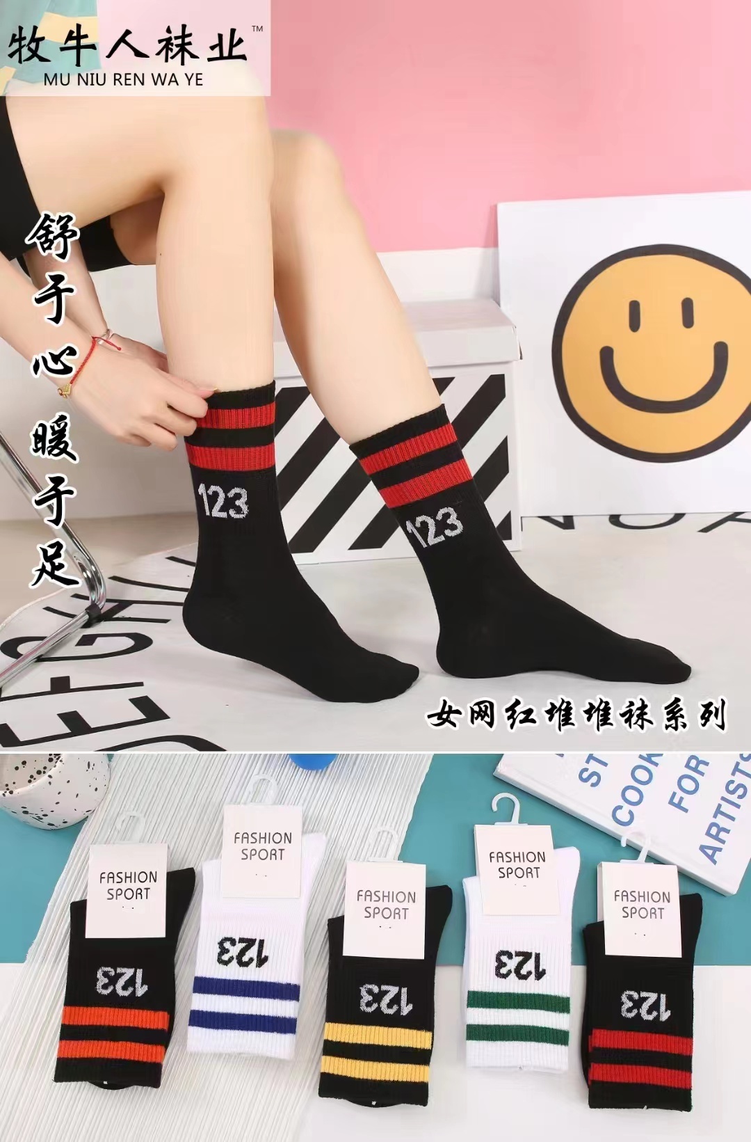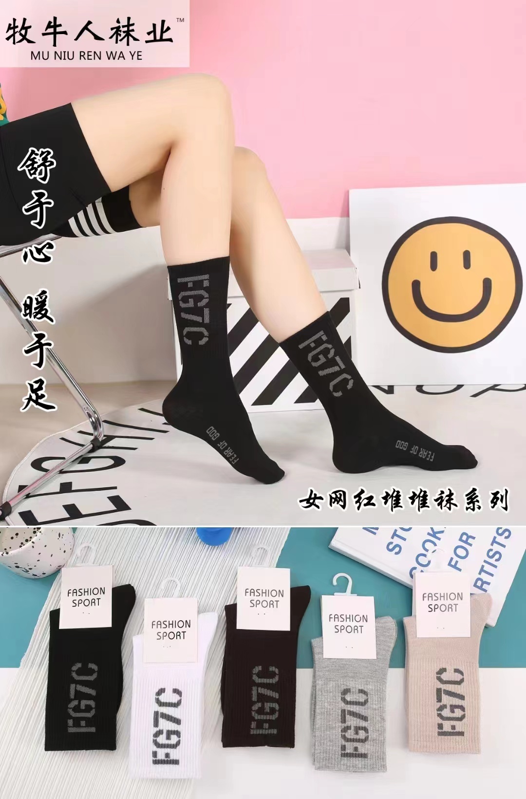 袜子女士秋冬防臭女袜中筒袜韩版长筒袜日系堆堆袜春秋长袜女批发