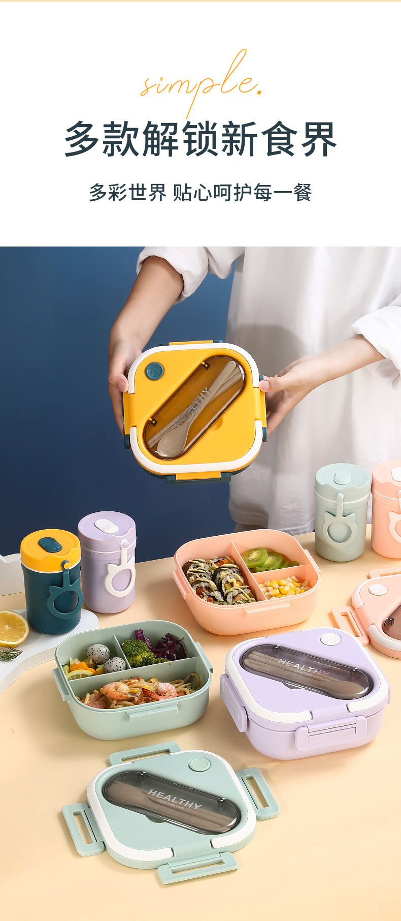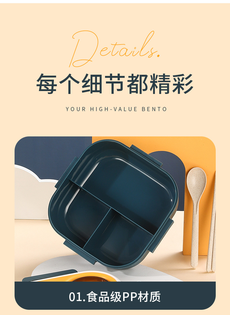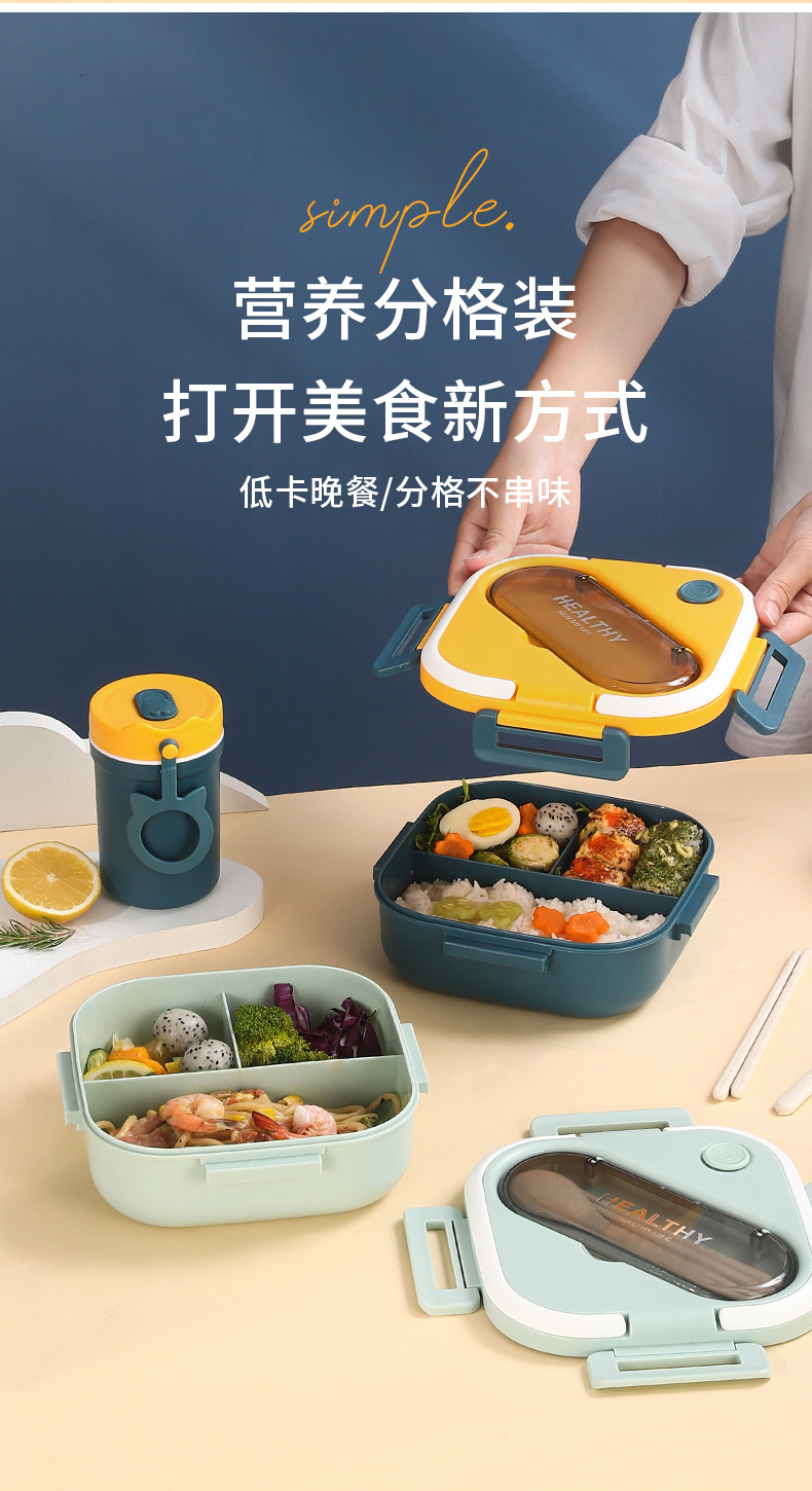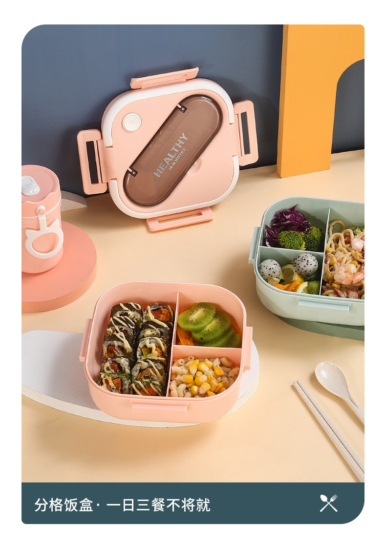 亚马逊饭盒上班族便当盒学生午餐饭盒密封分格水果盒可微波炉制定