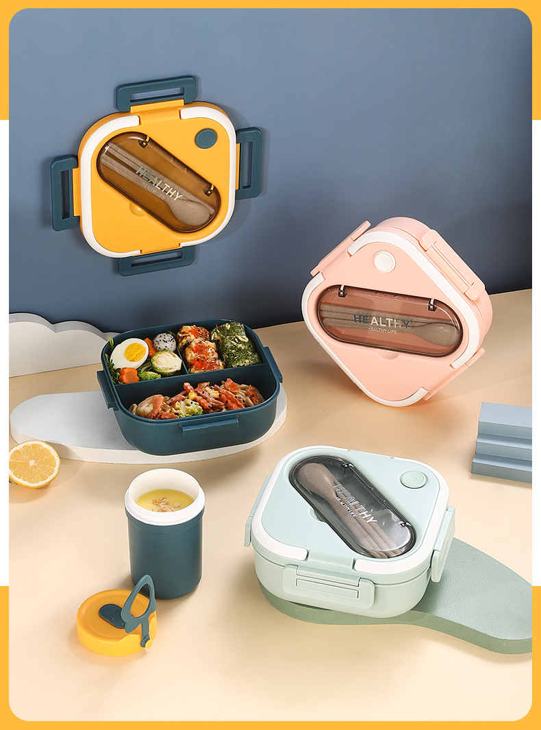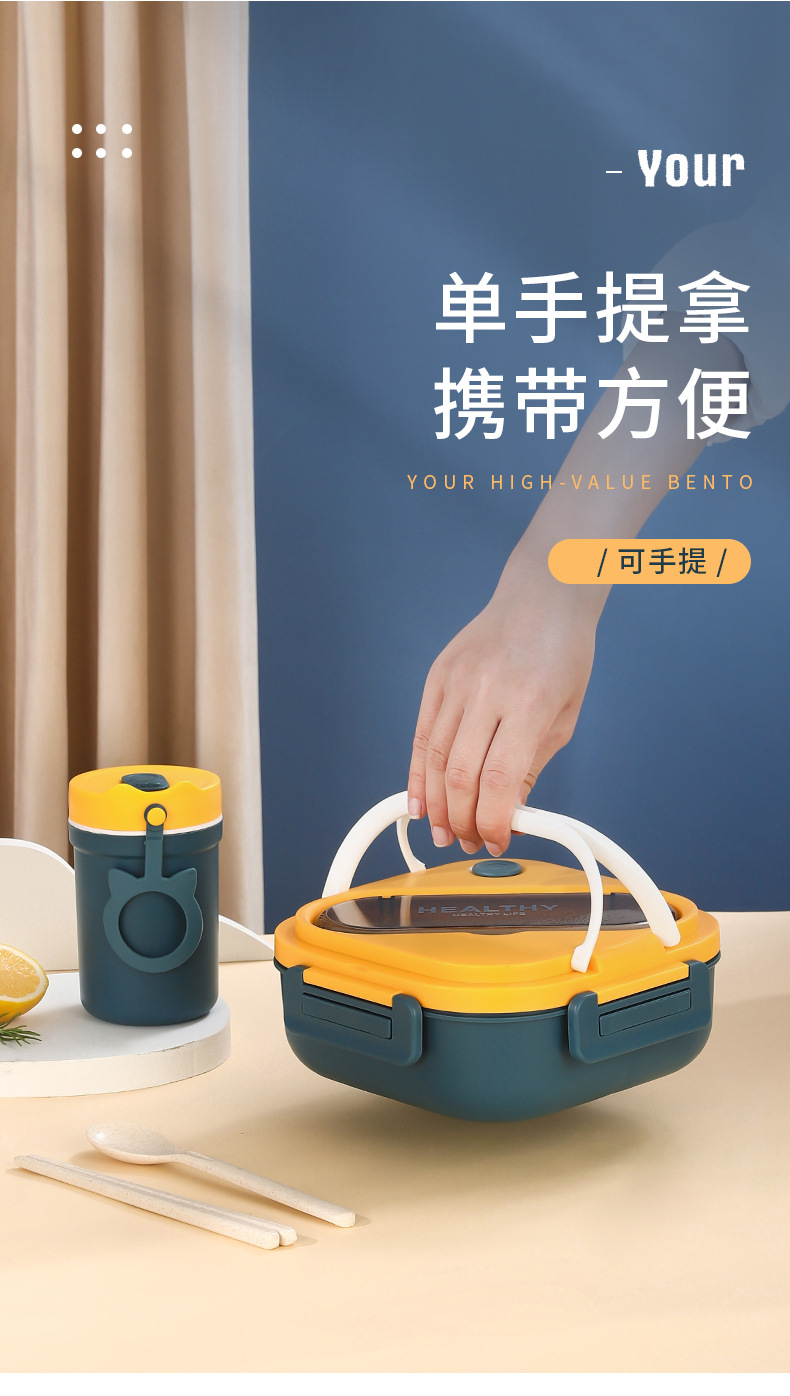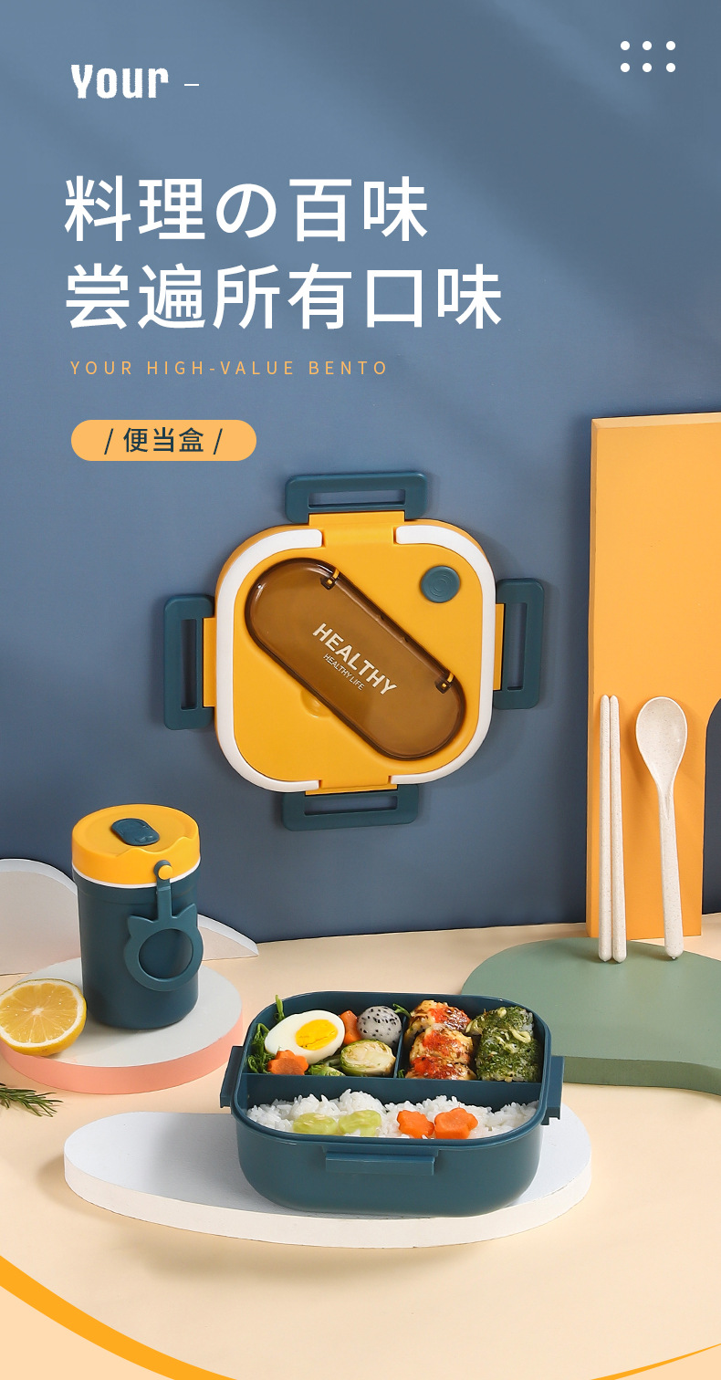 亚马逊饭盒上班族便当盒学生午餐饭盒密封分格水果盒可微波炉制定